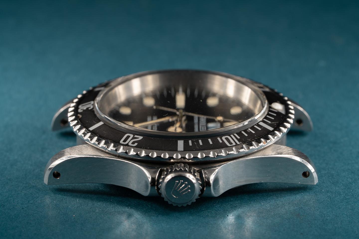 The recently polished case is excellent and features sharp and prominent bevels. The black