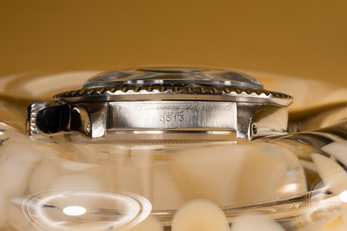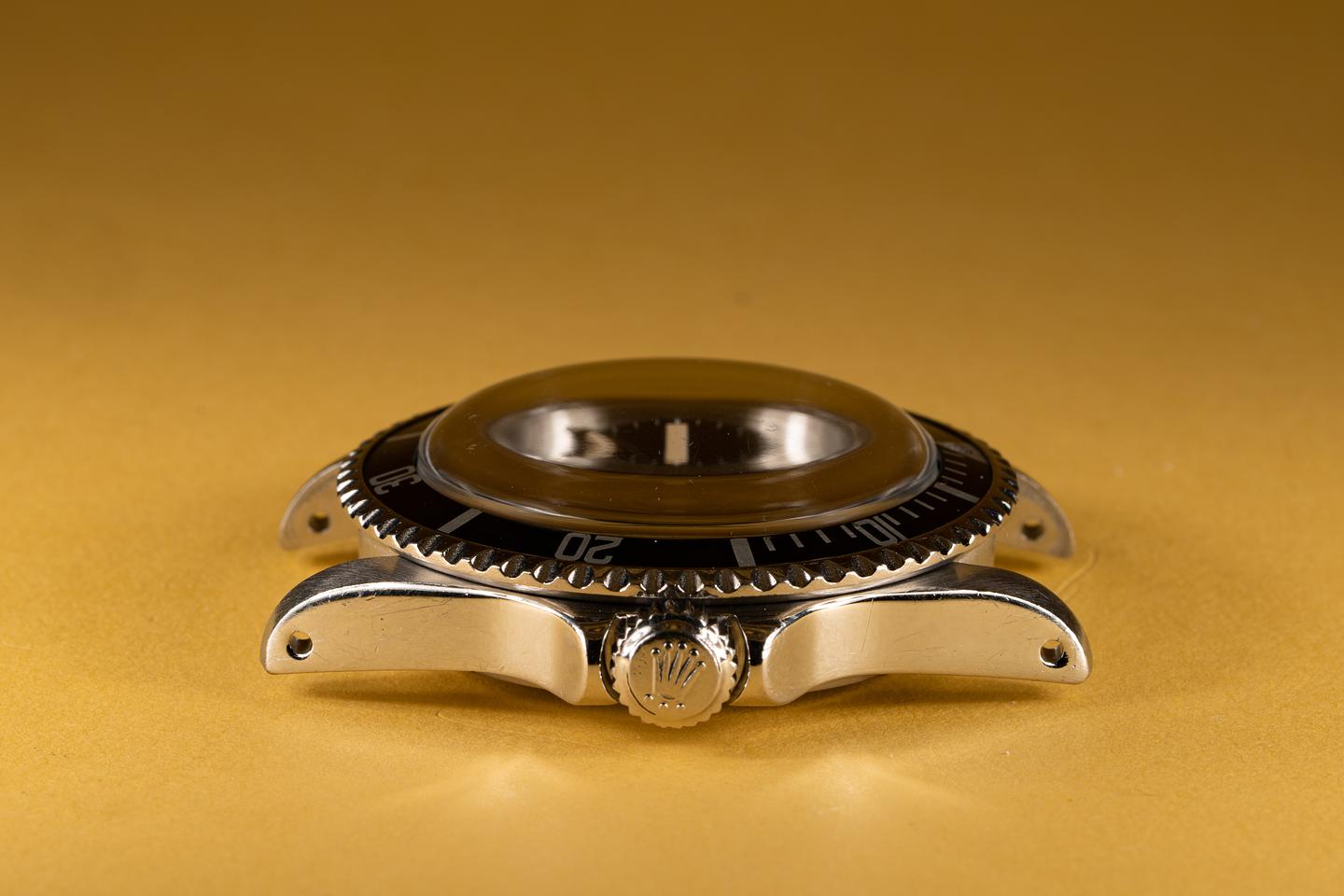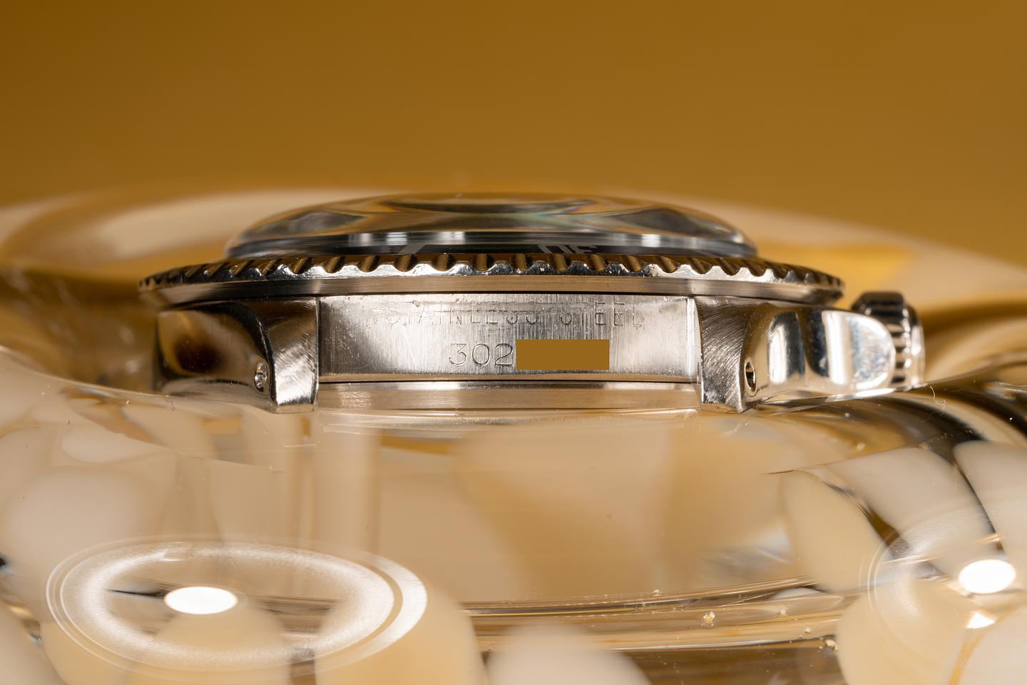 Case: Very good case that has previously been polished and shows light wear from use. The fat font bezel insert is excellent condition and has aged to a dark grey hue.