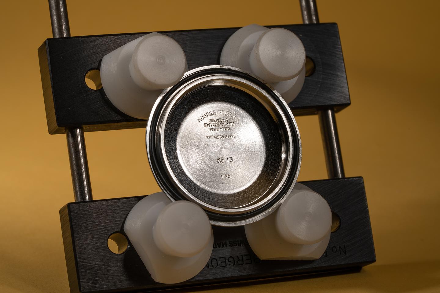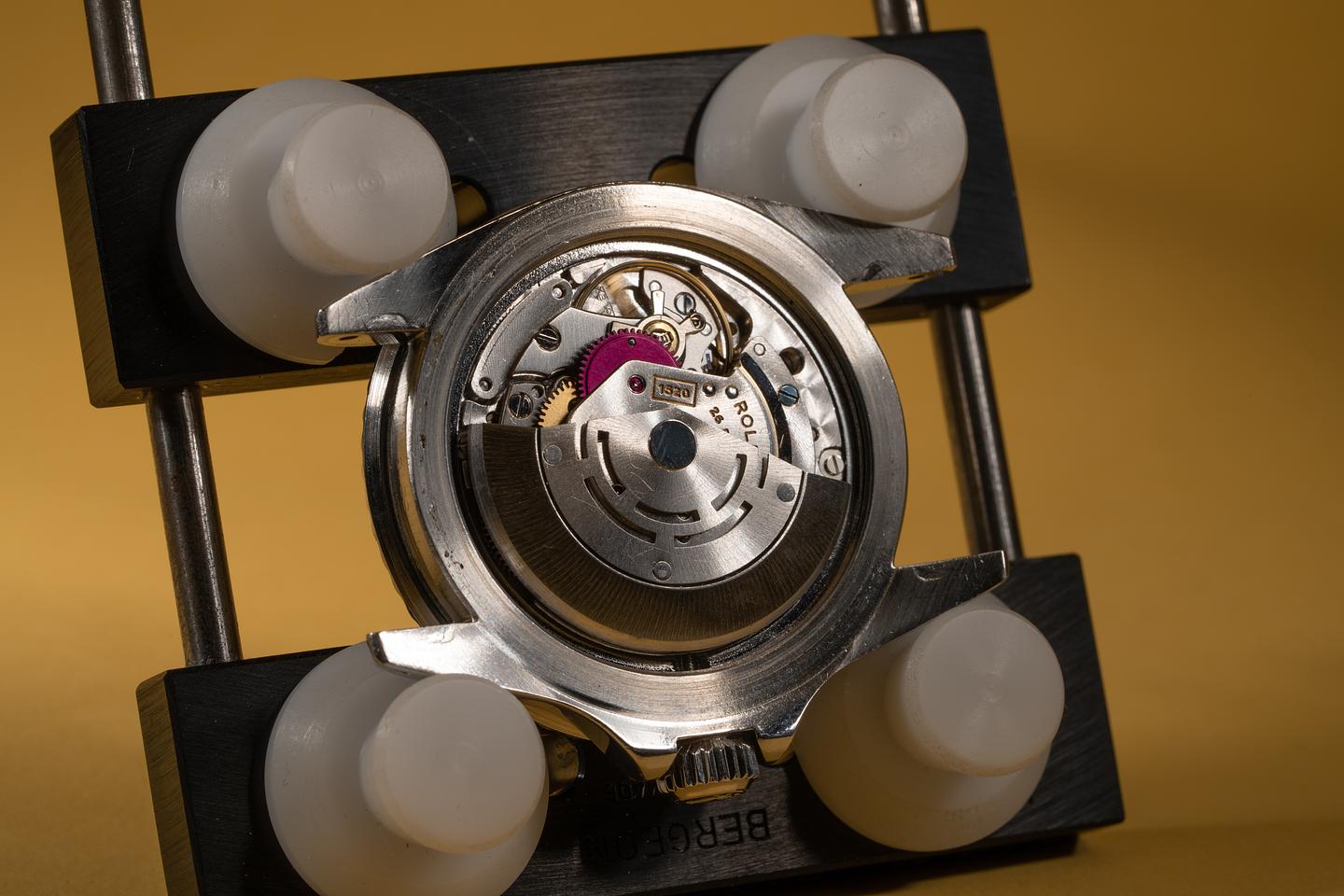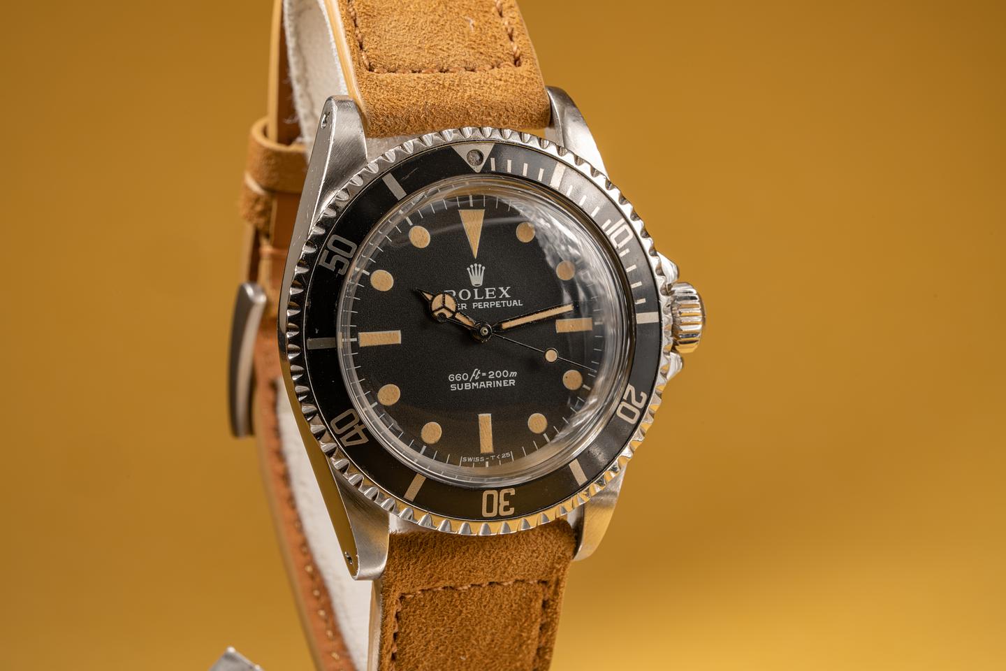 Case: Very good case that has previously been polished and shows light wear from use. The fat font bezel insert is excellent condition and has aged to a dark grey hue.