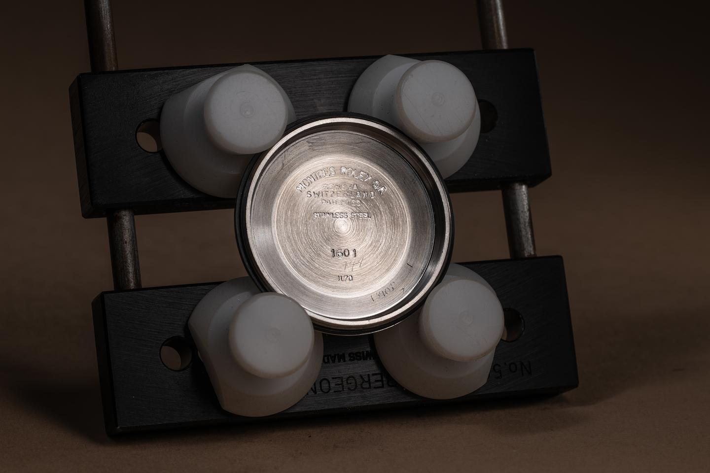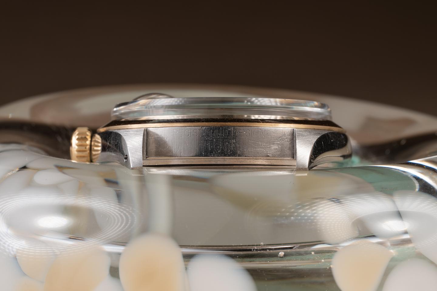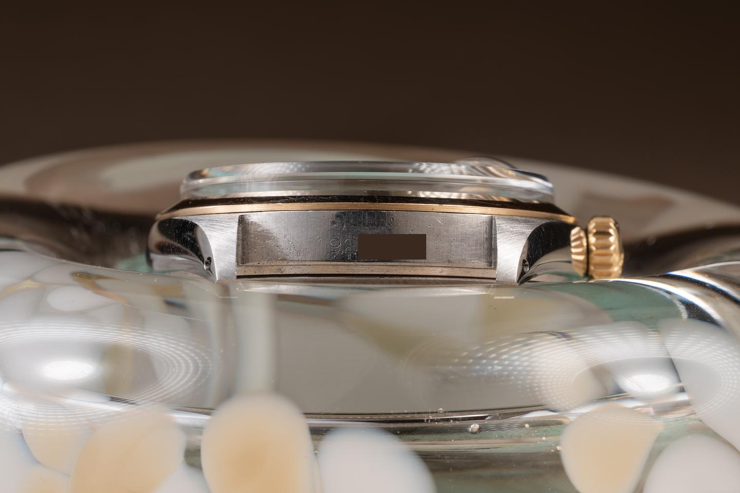Case: The sharp 36mm case is excellent, showing only very light wear. The smooth 18K yellow gold case is excellent, showing only light wear from use.