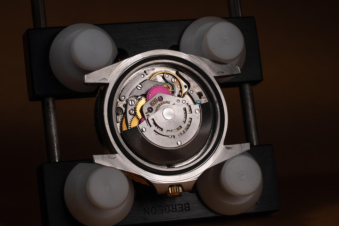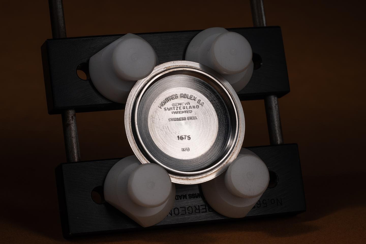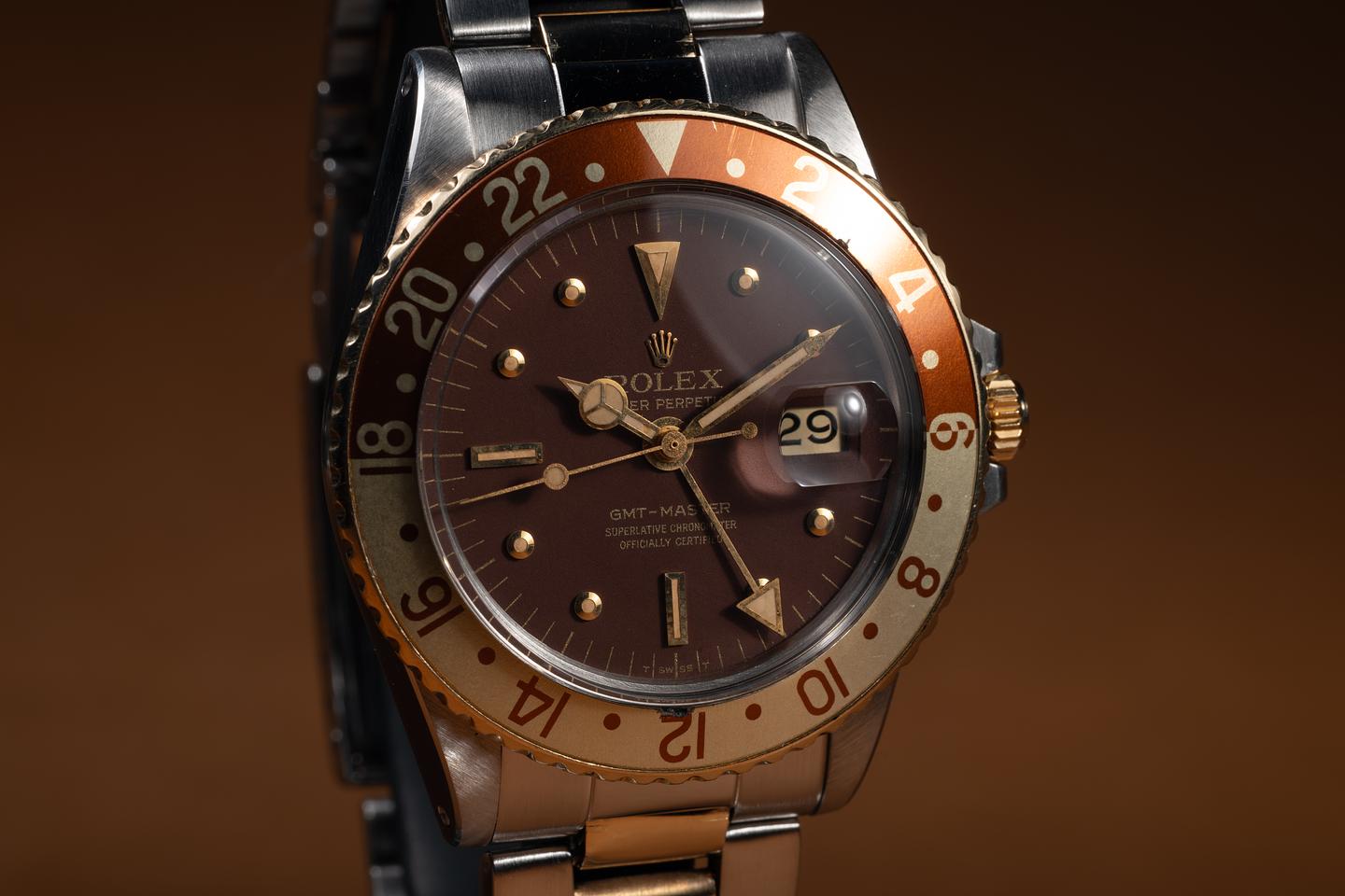 Case: The recently polished case is excellent, showing sharp, prominent bevels and only very light wear. The brown and gold bezel insert is also in excellent condition, showing only very light wear from use.