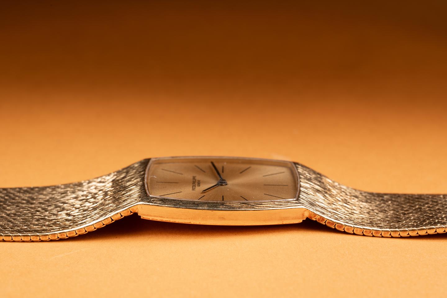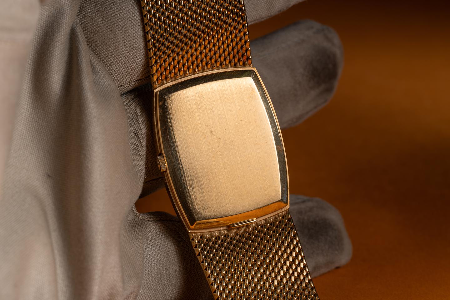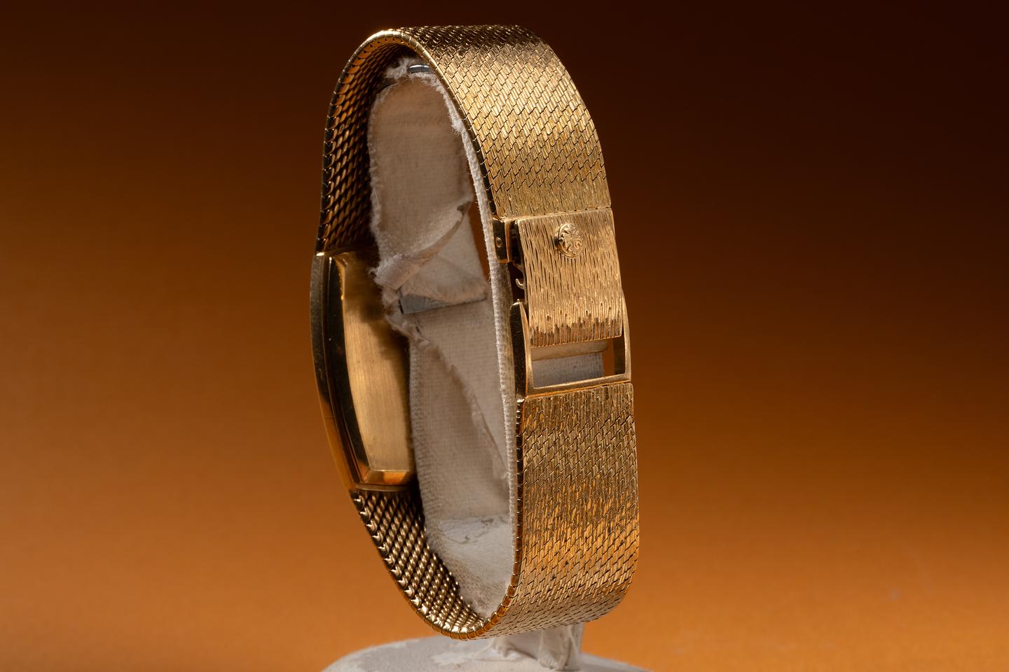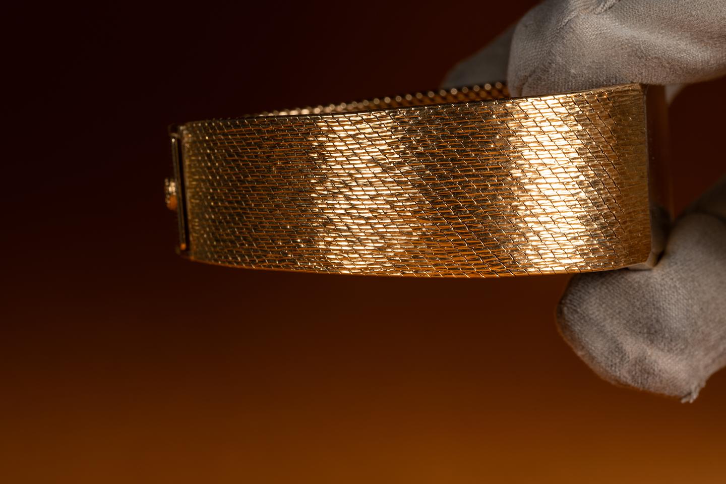 Bracelet: The 18K yellow gold mesh bracelet is excellent showing no perceivable stretch. The bracelet will fit between a 16cm. (6.2") up to a 16.3cm. (6.4") wrist.