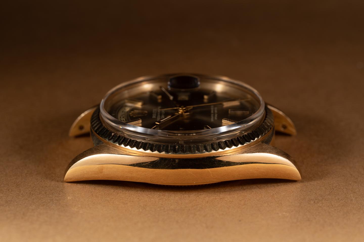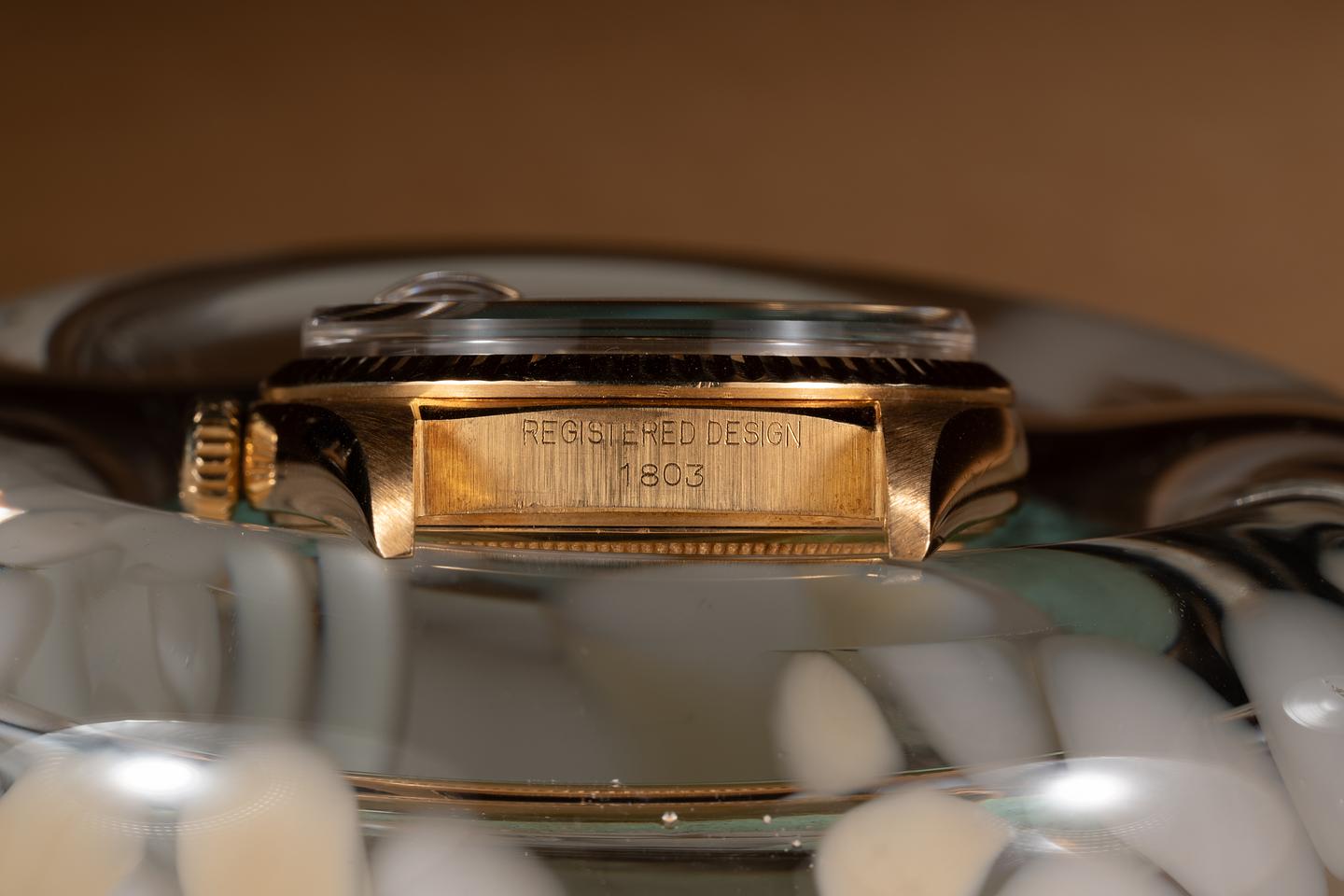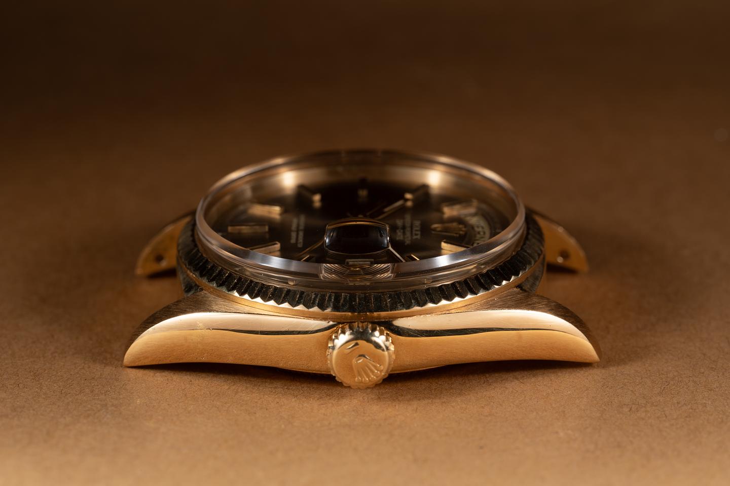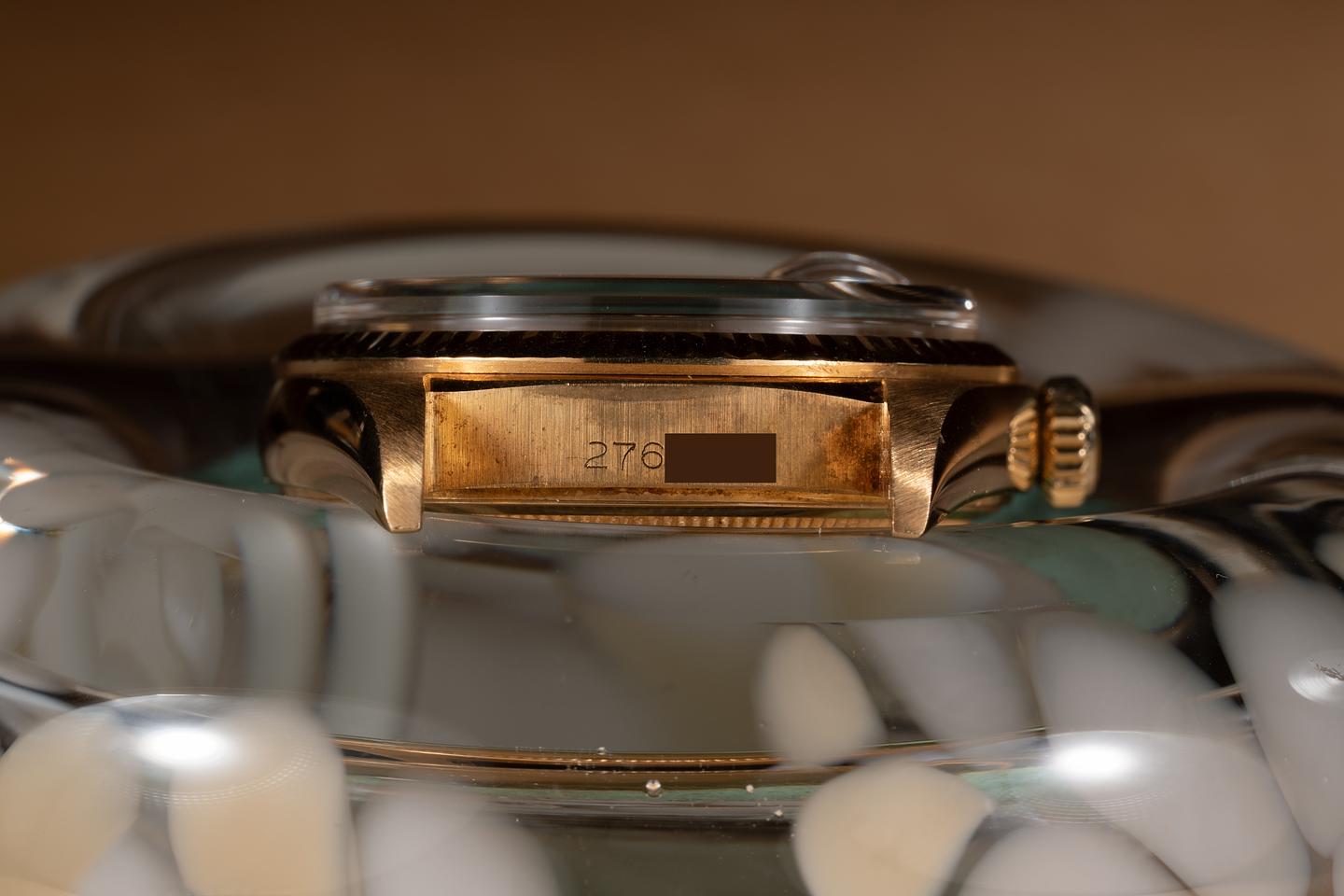 Case: The 18k yellow gold case is excellent showing only light wear from use. The sharp fluted 18k yellow gold bezel is also in excellent condition showing only light wear from use.