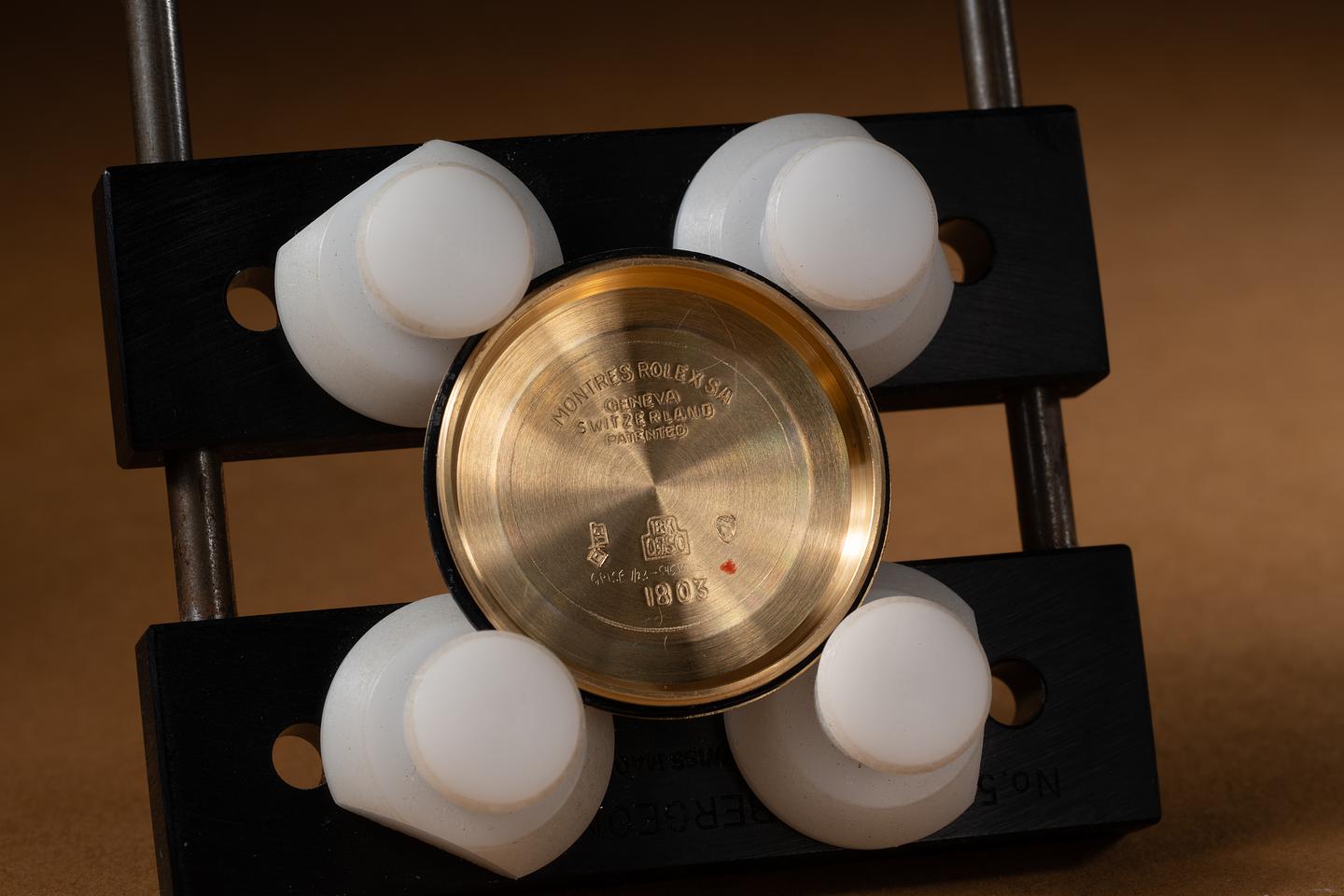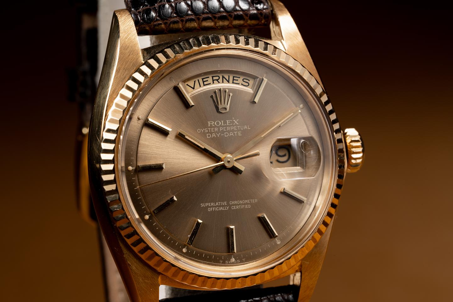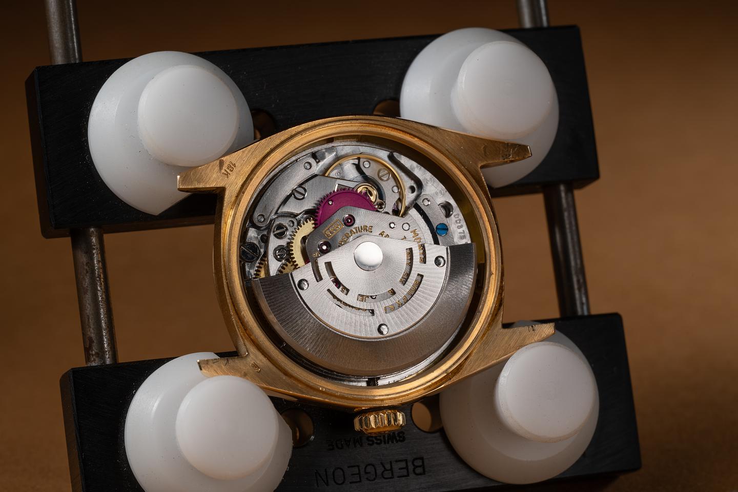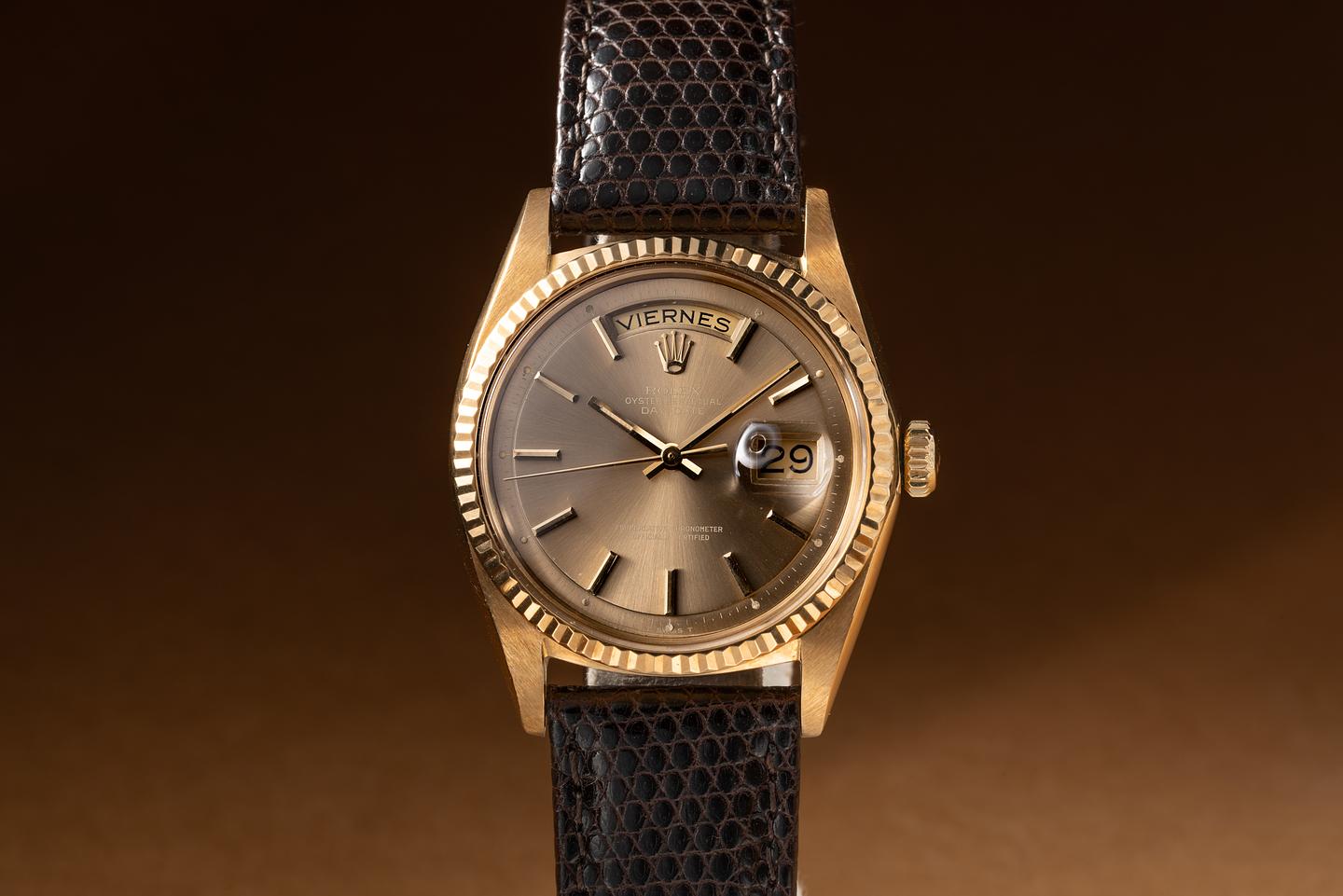Case: The 18k yellow gold case is excellent showing only light wear from use. The sharp fluted 18k yellow gold bezel is also in excellent condition showing only light wear from use.