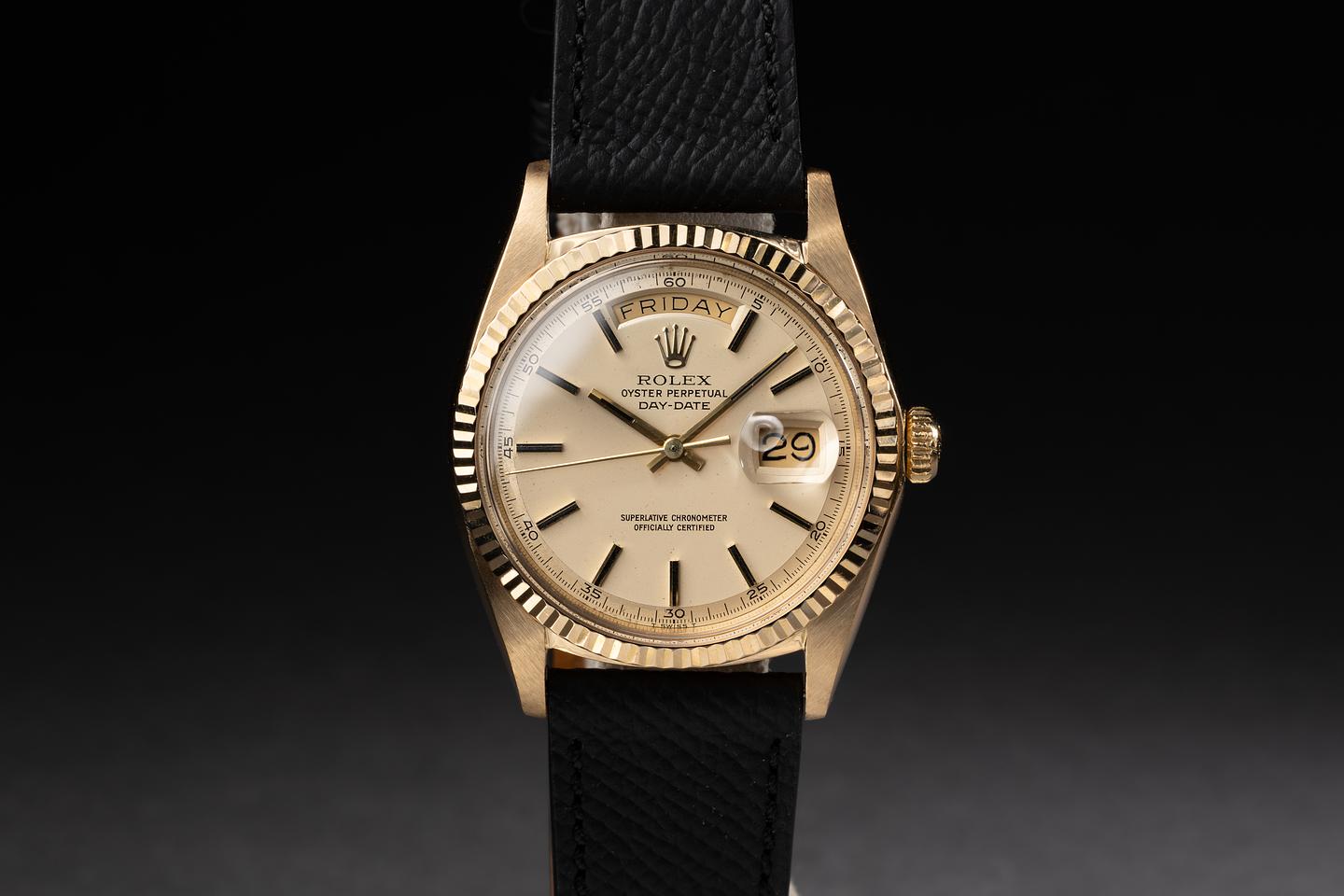 Dial: The light champagne no lume dial is very good showing an extensive and even pattern of speckling patina across its surface. The black out enamel hands are also in excellent condition and appear to be original to the watch.