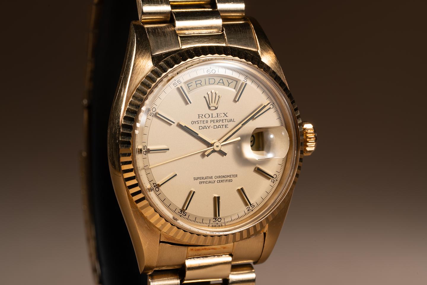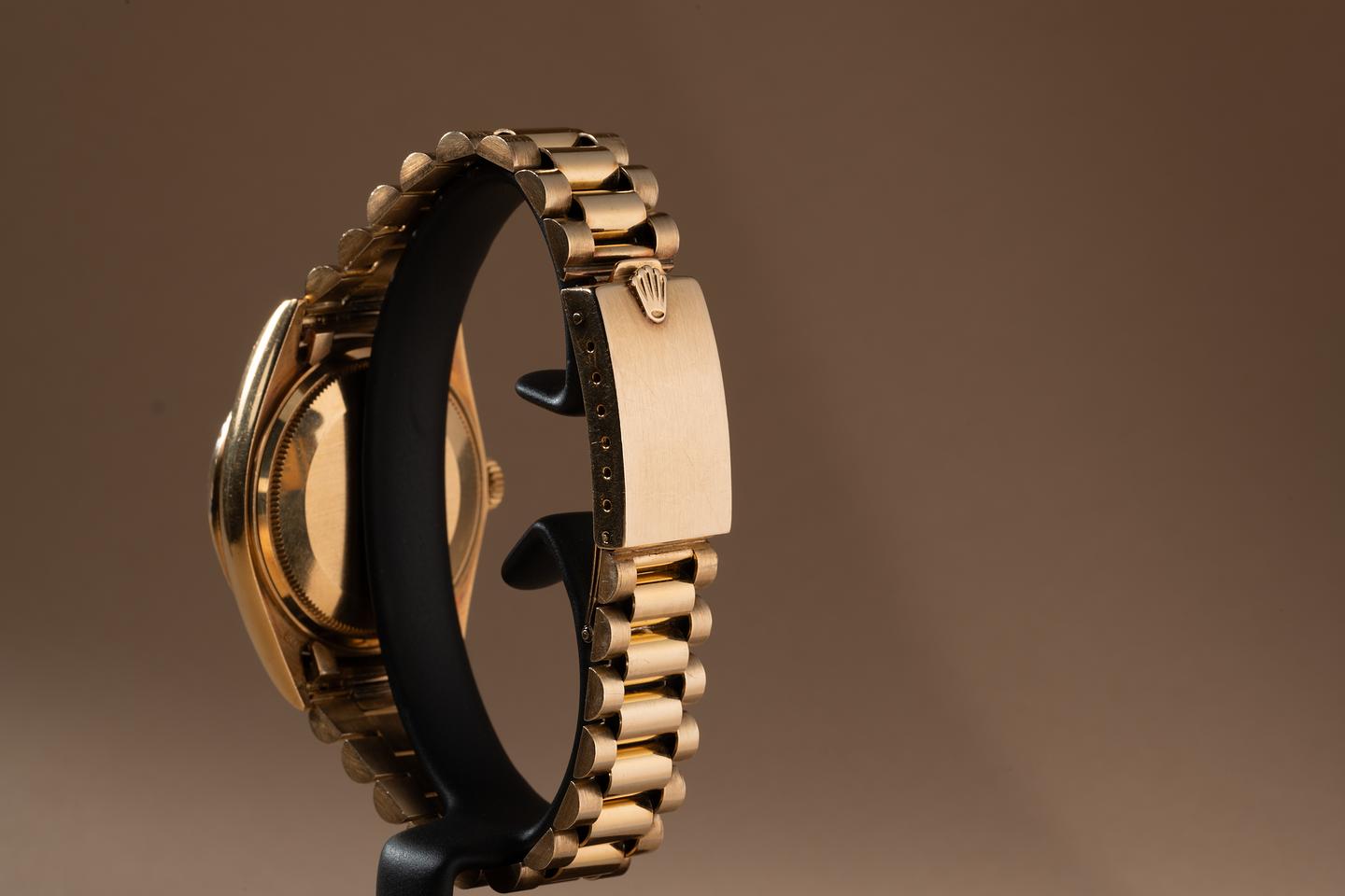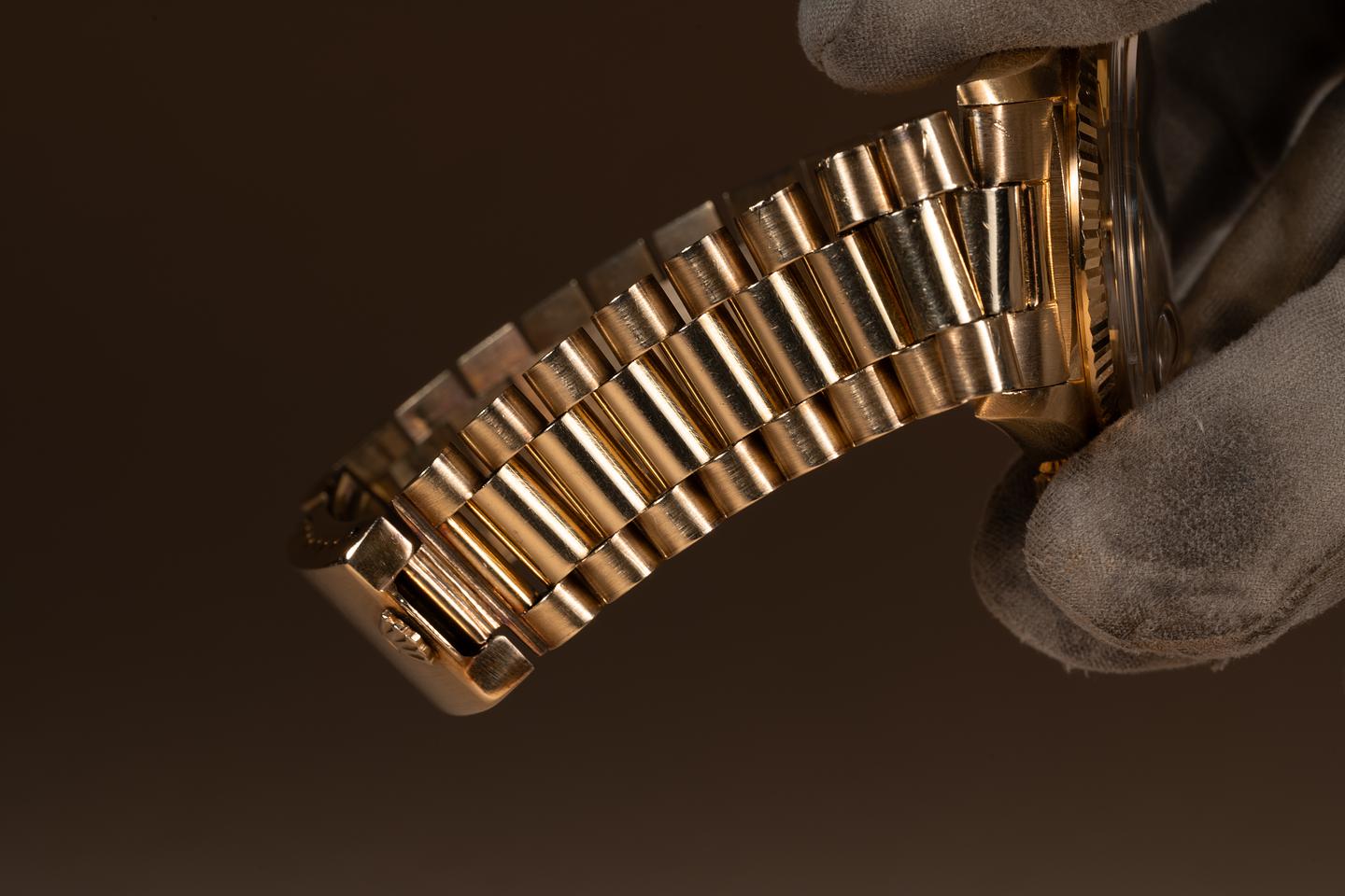 Bracelet: The 20 link 18K yellow gold authorized by Rolex South American President bracelet is excellent showing only light stretch for its age.