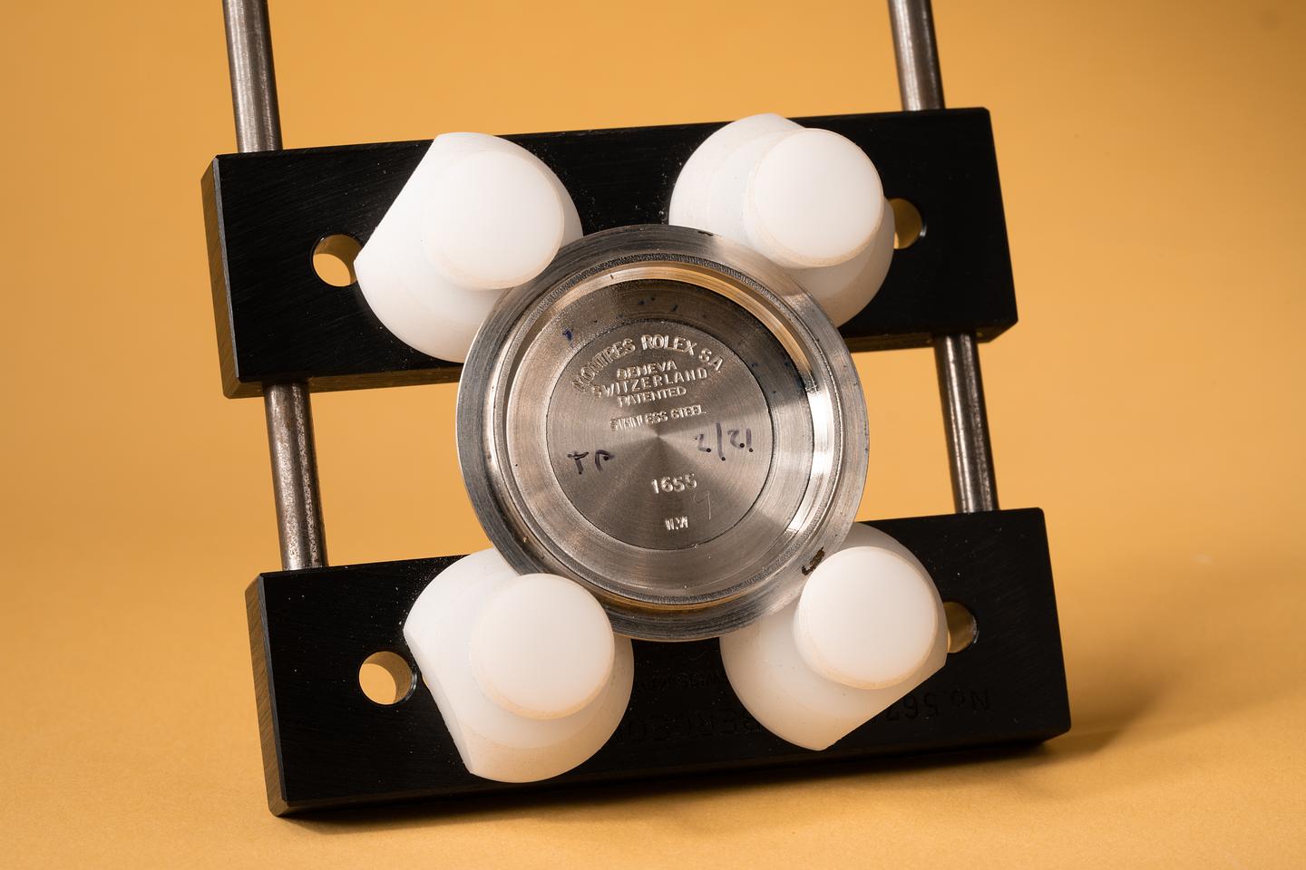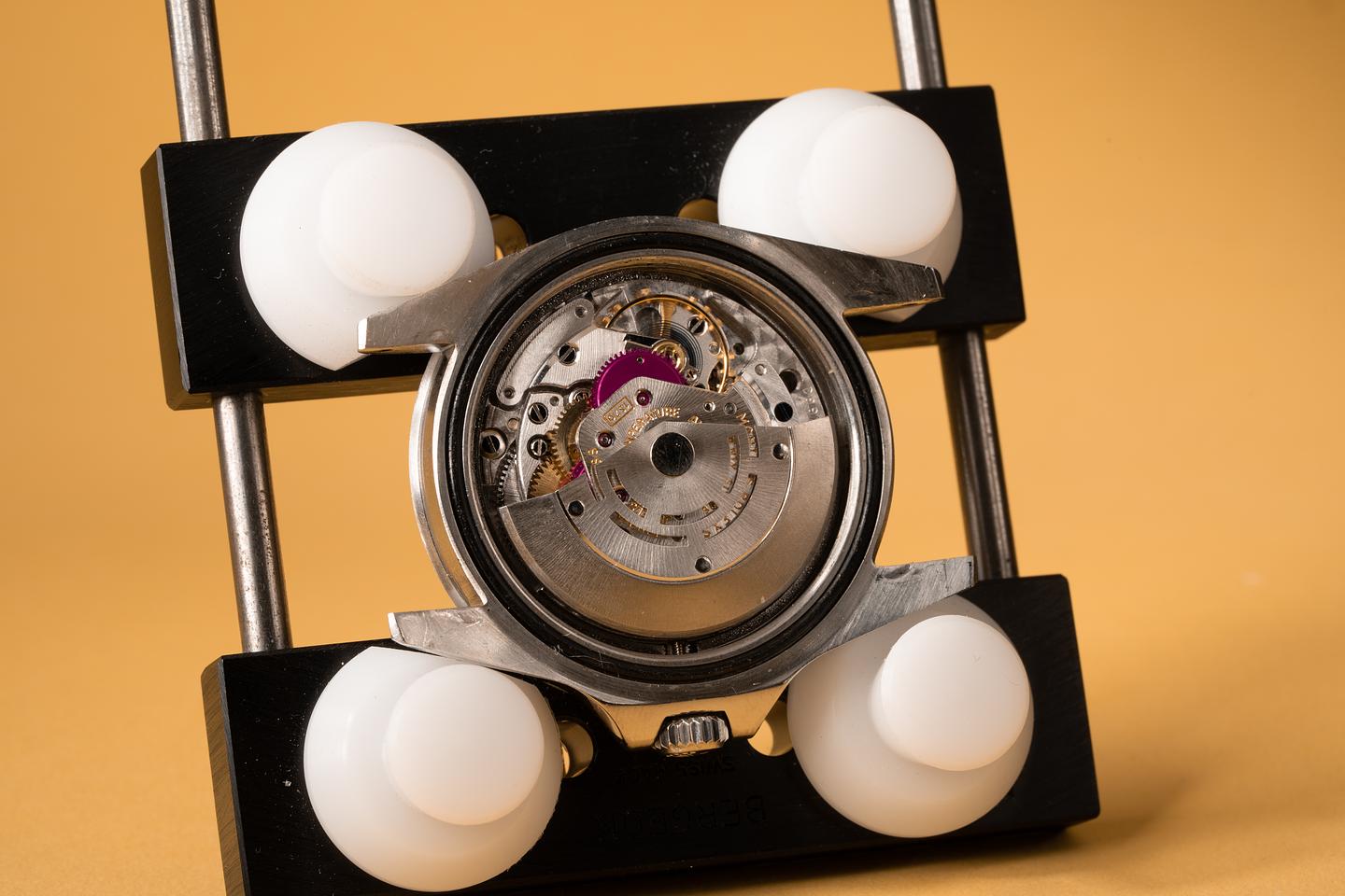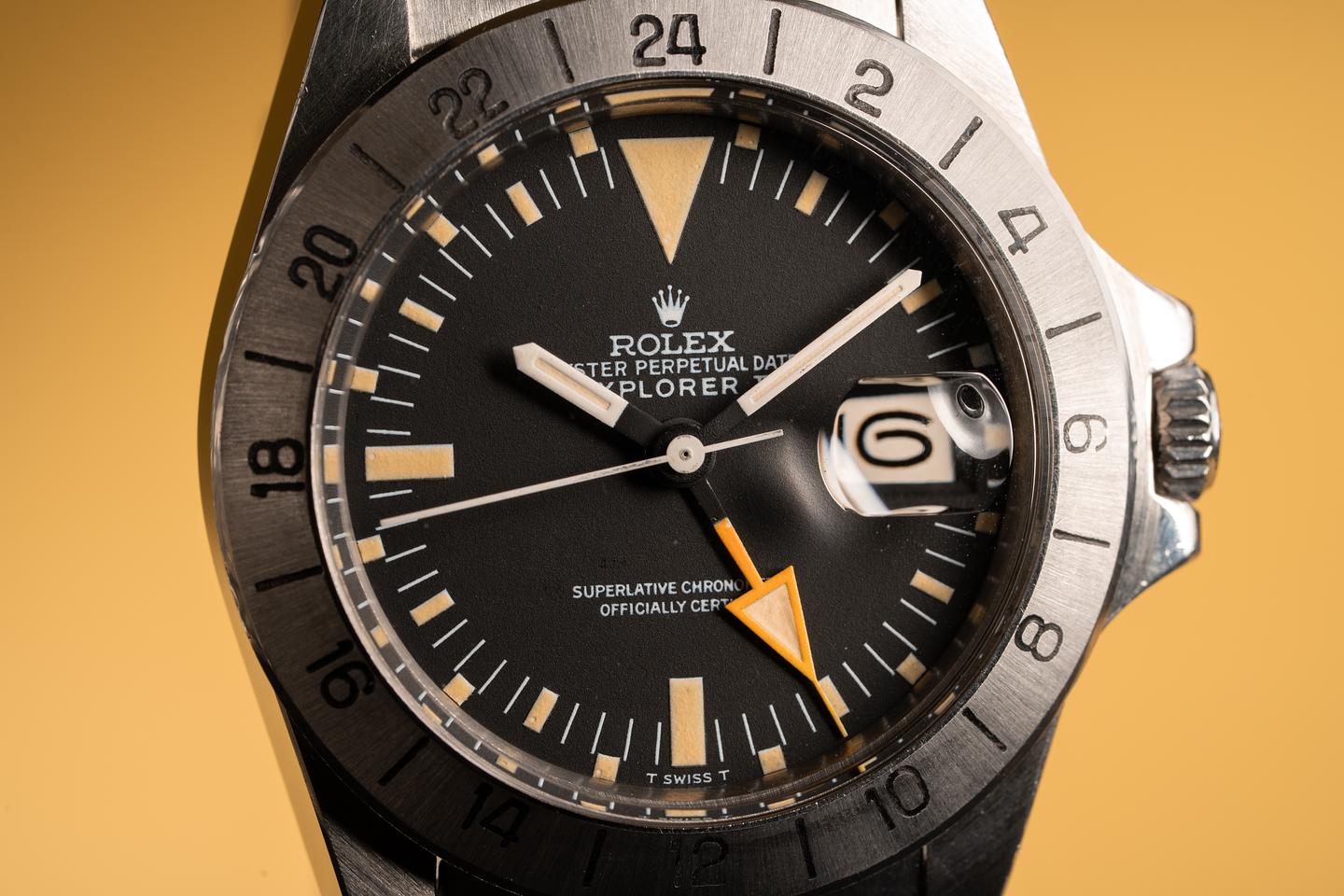 Case: The previously polished case is excellent showing sharp prominent bevels and some light wear from use. The bezel insert is also in excellent condition and shows a sharp and well-defined sunburst pattern.