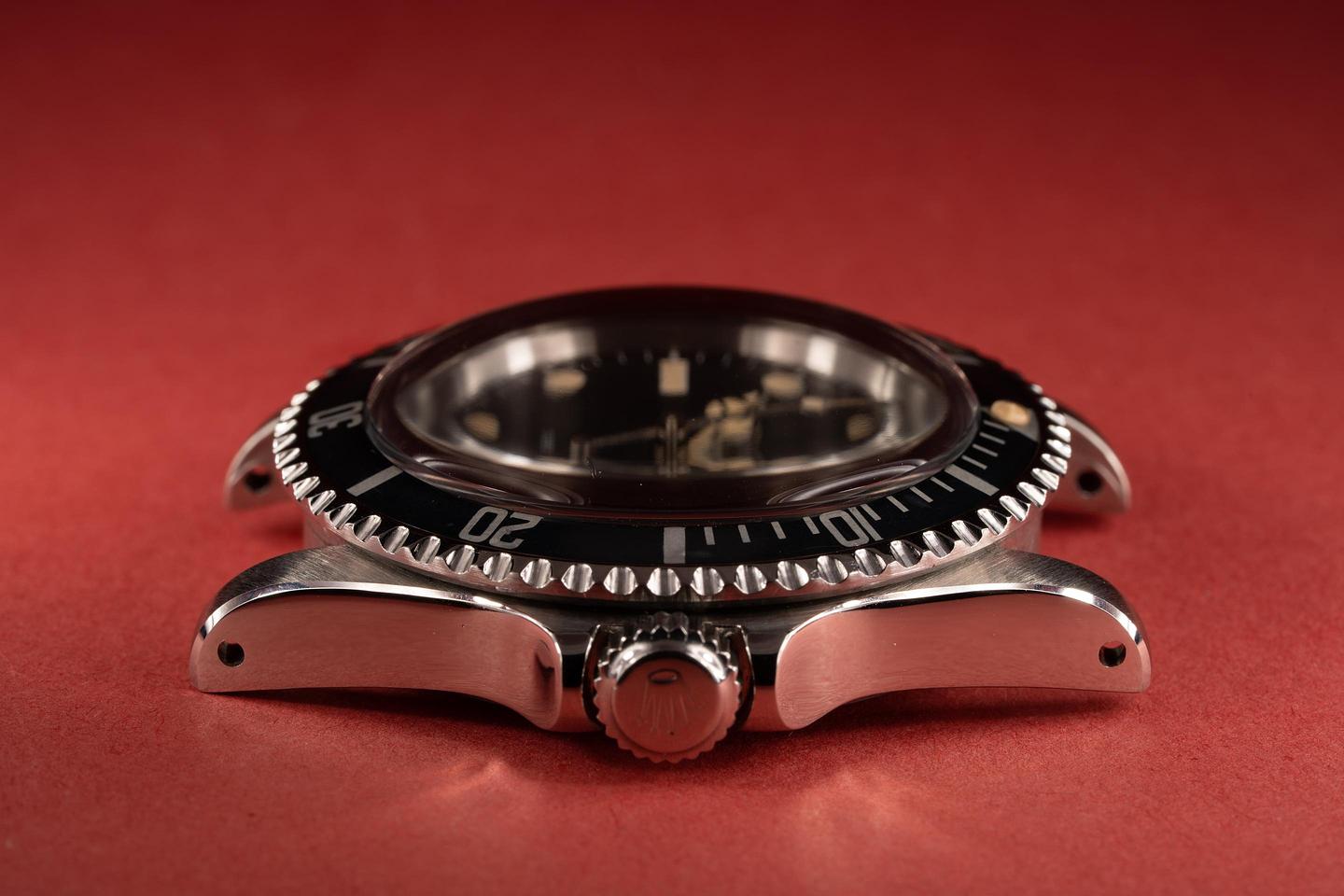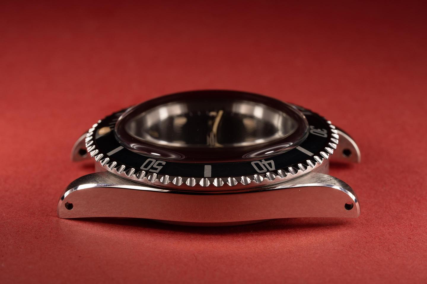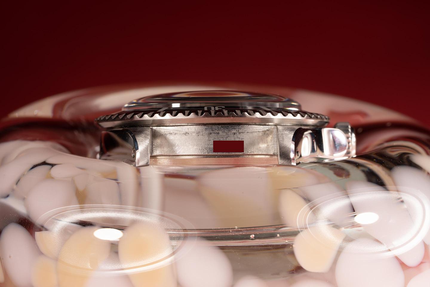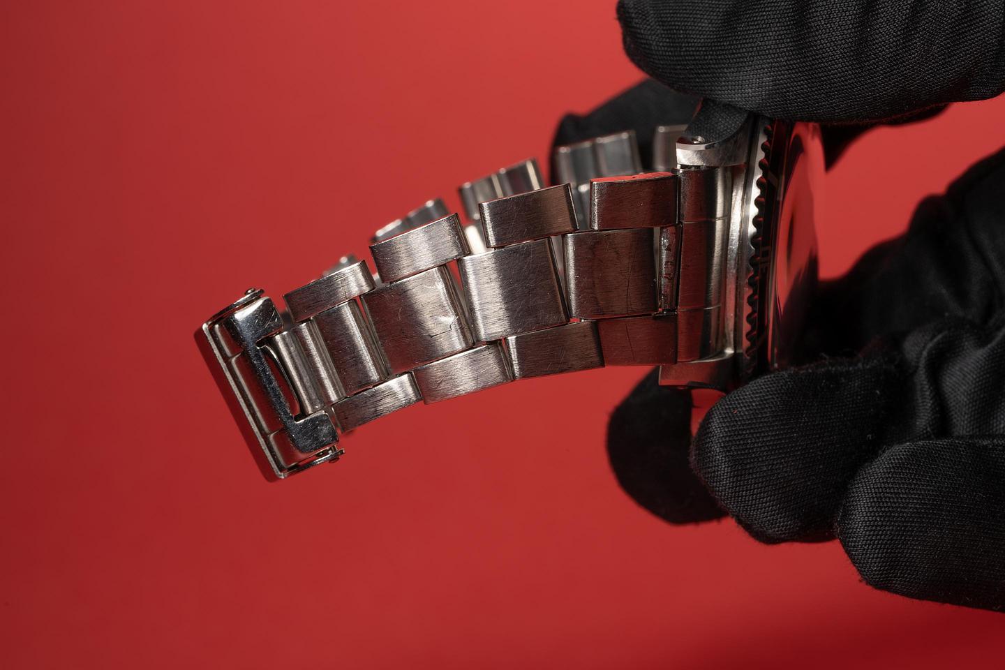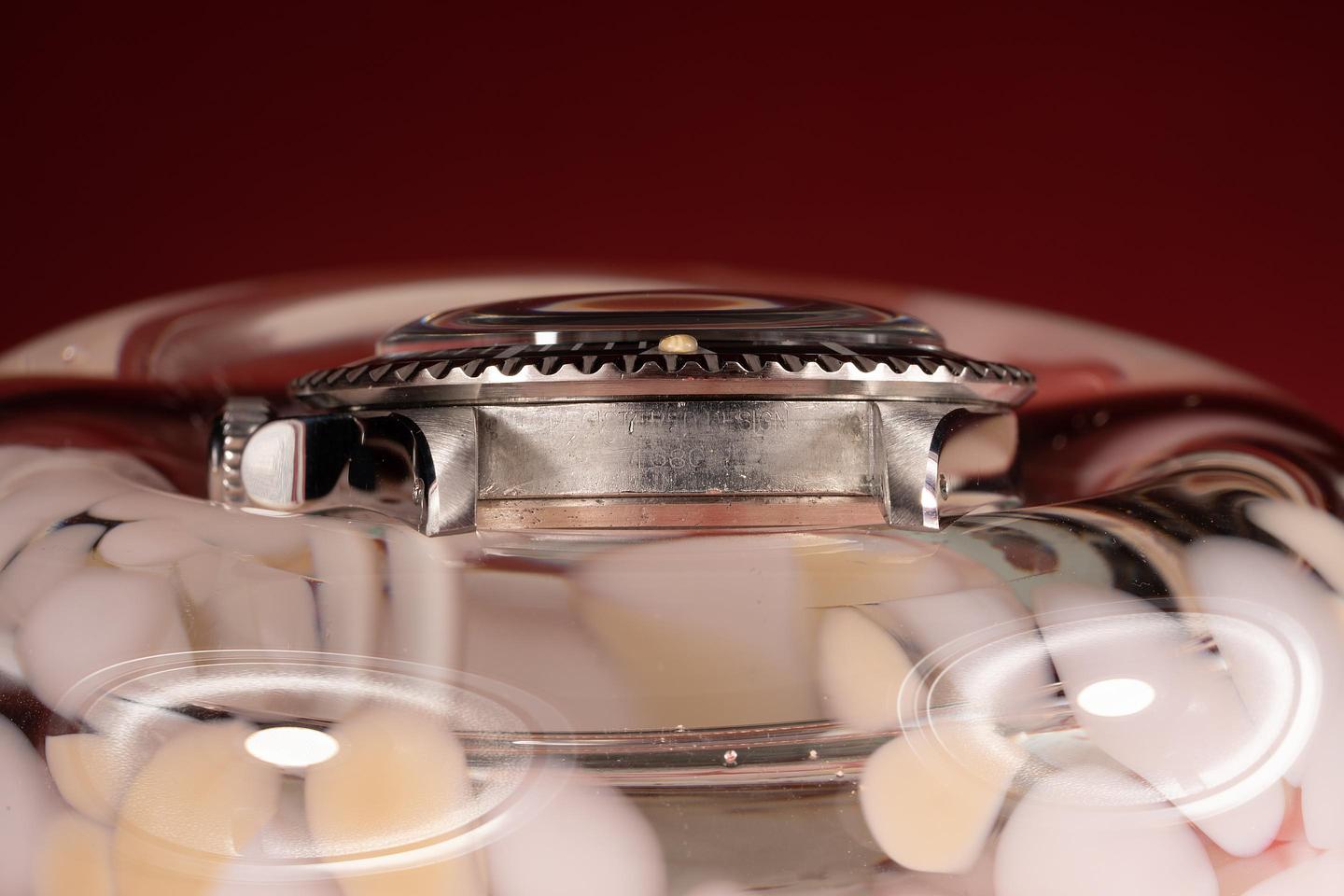 Case: The recently polished case is excellent showing sharp prominent bevels and only some light wear from use. The fat font bezel insert has faded to a dark satin navy blue and shows only light wear for its age.
