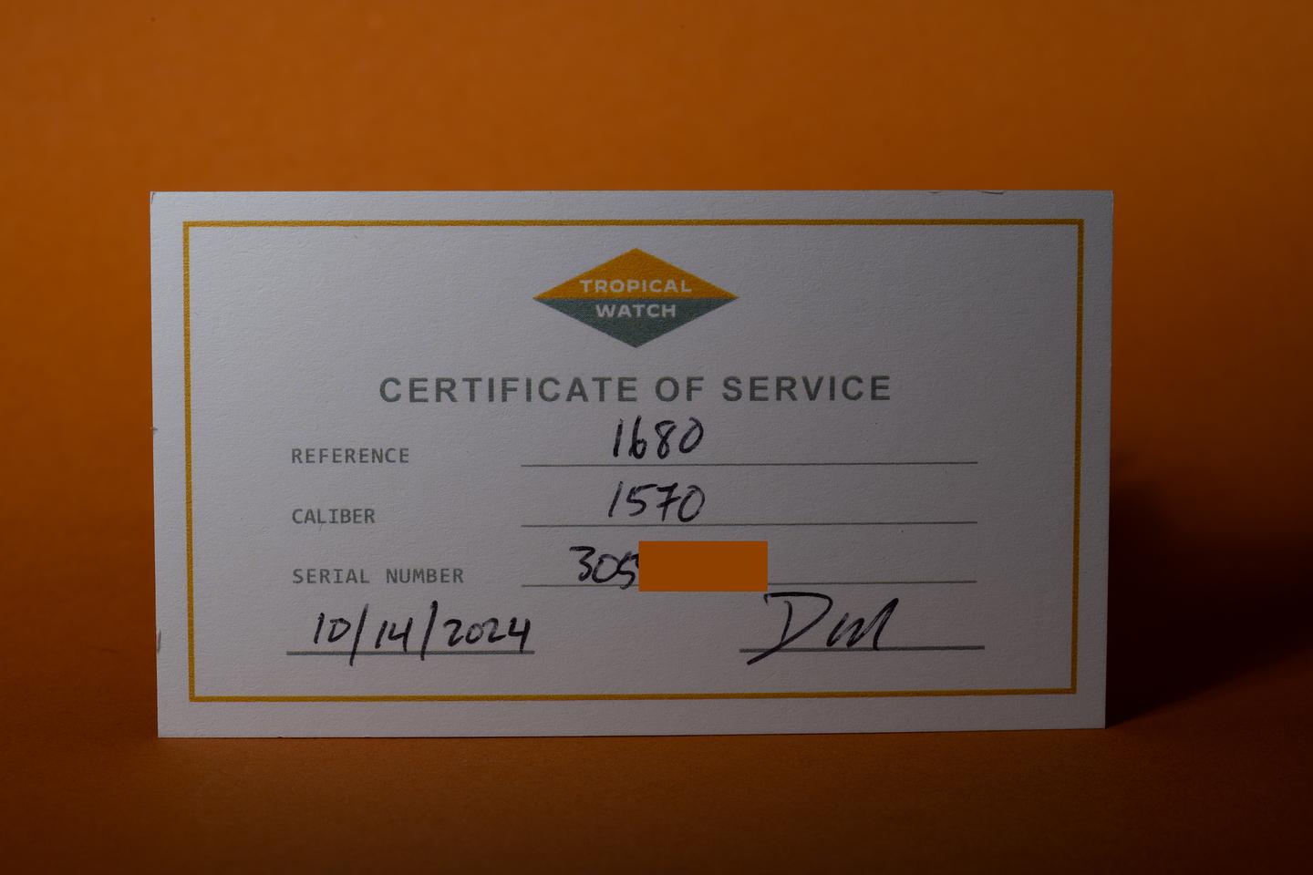 Accessories: October 2024 Certificate of Service from Tropical Watch.