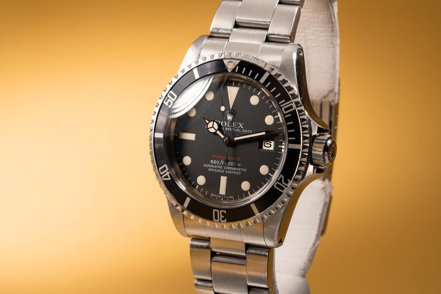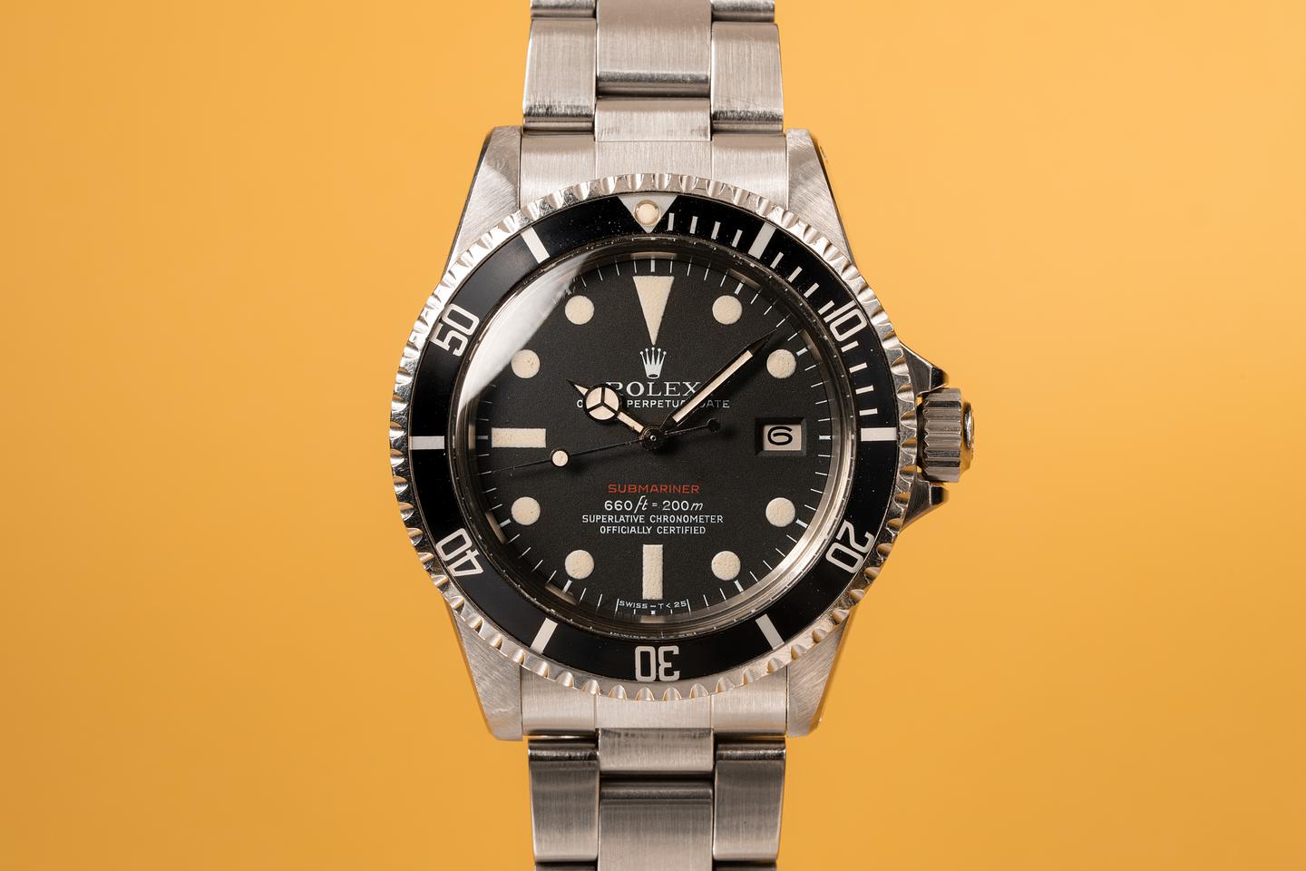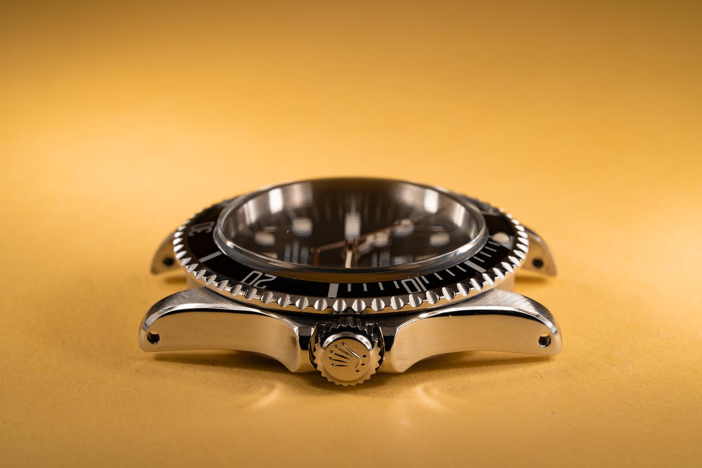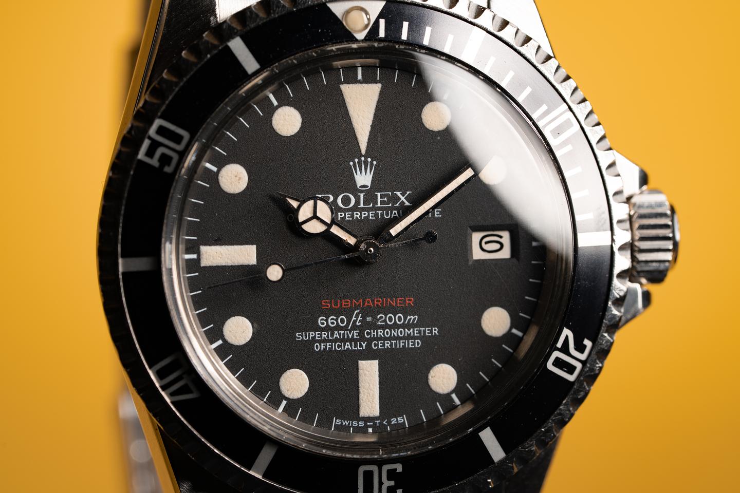 Case: The recently polished case is excellent showing wide prominent bevels and only very light wear. The black bezel insert is also in excellent condition and shows only very light wear. The watch is fitted with a domed "Non-cyclopes" Rolex crystal.