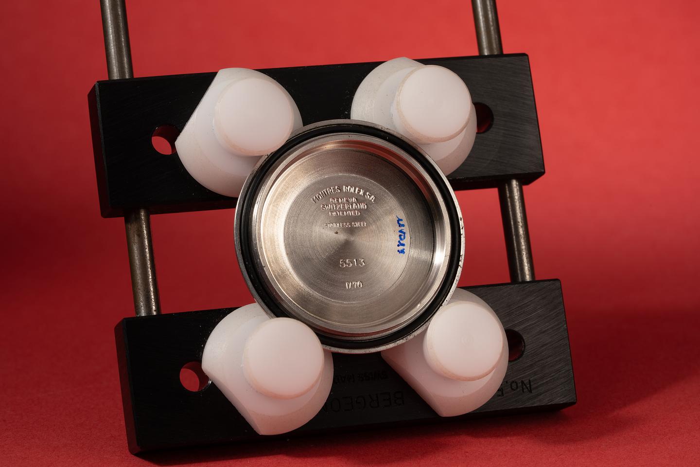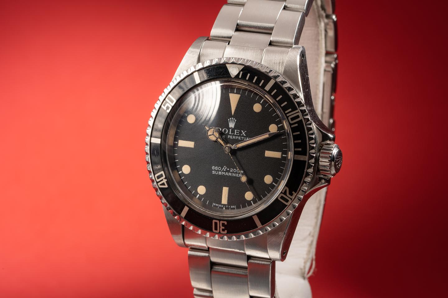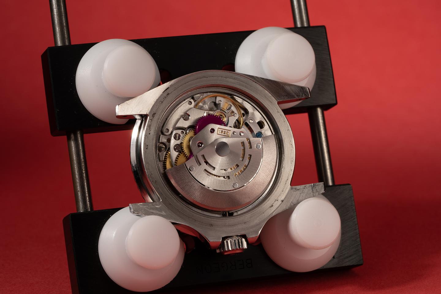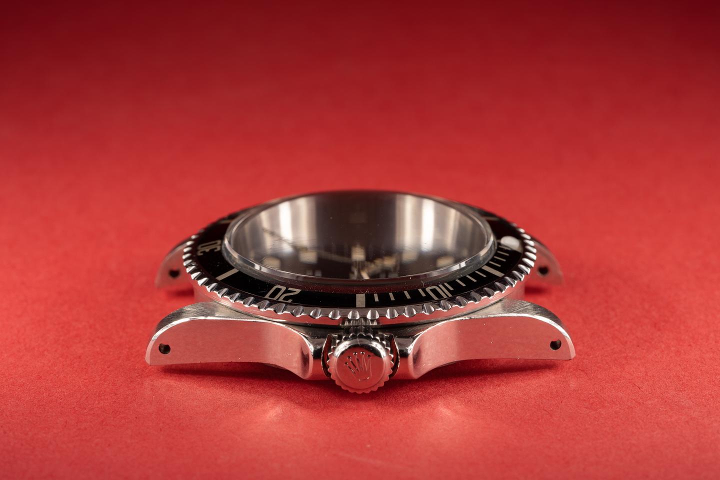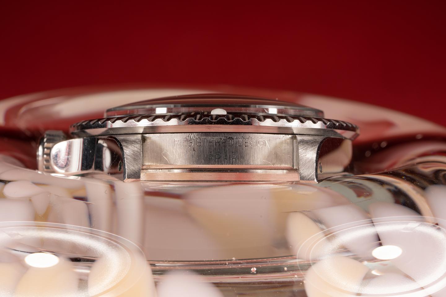 Case: The recently polished case is in excellent condition and shows sharp prominent bevels. The bezel insert is also in excellent condition and shows light wear from use. The insert has faded to a very dark blue hue.