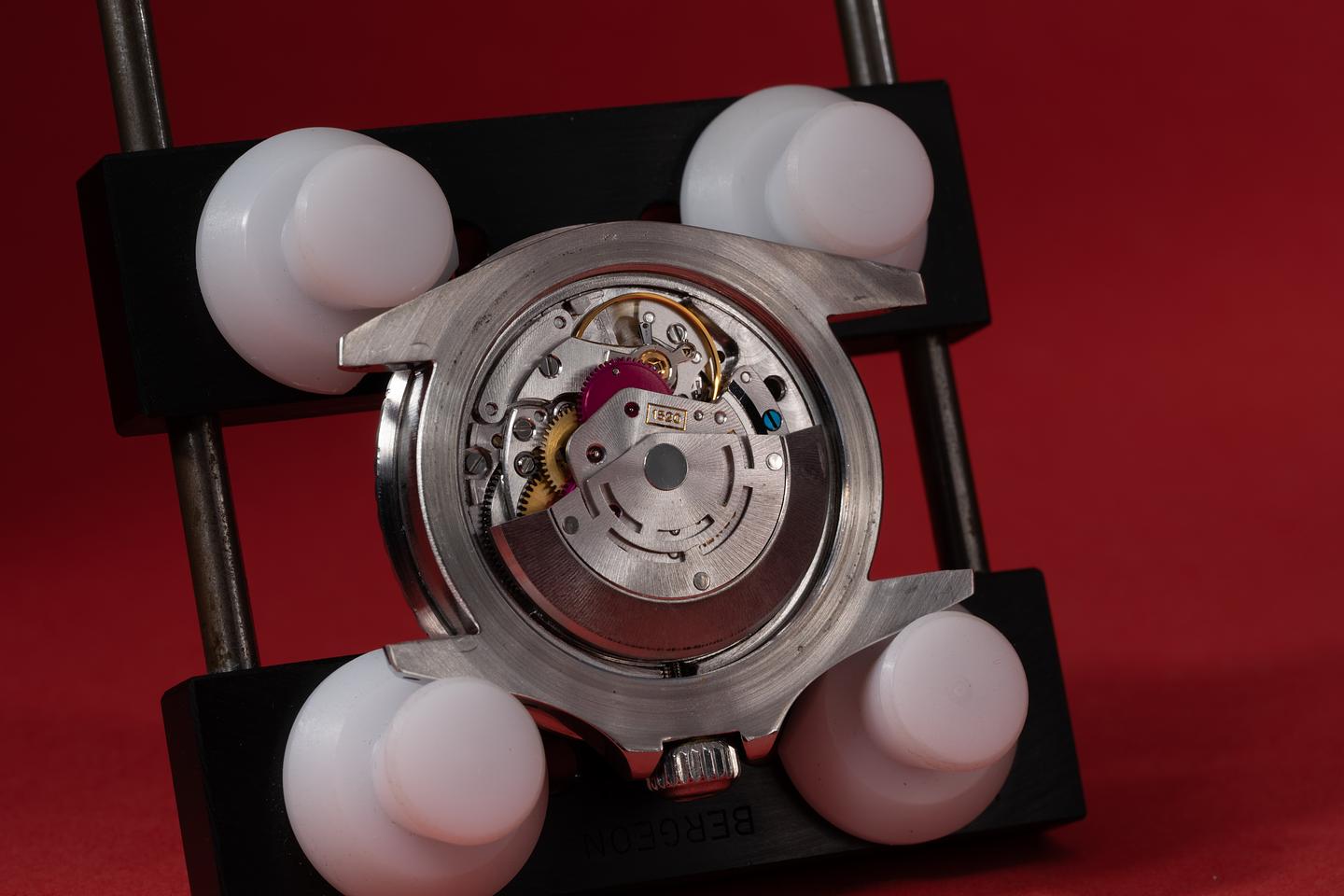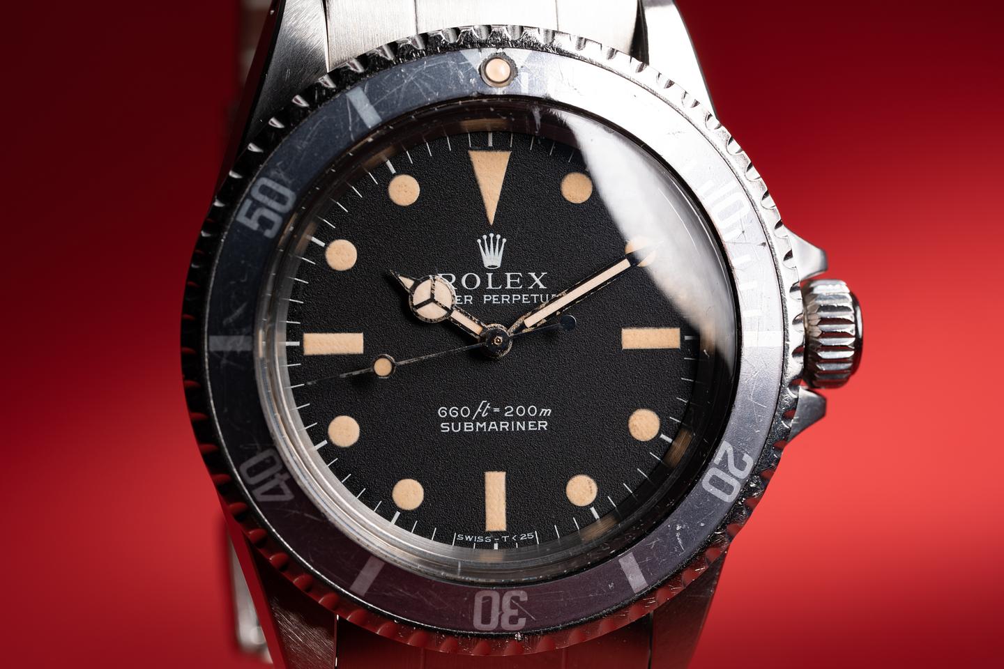 Dial: The matte black serif dial is excellent showing only very light wear for its age. The lume has aged to a warm creamy hue and the hands have aged just slightly lighter than the dial.