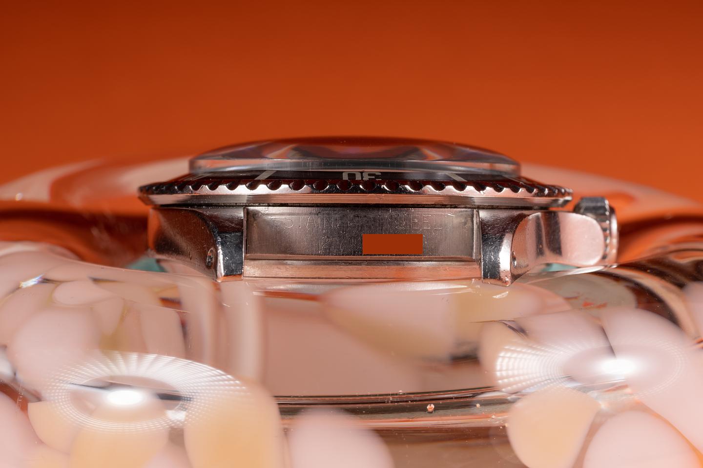 Case: The unpolished case is in excellent condition with intact factory bevels and showing some wear for its age. The lightly faded fat font bezel insert is also in excellent condition showing only light wear from use.
