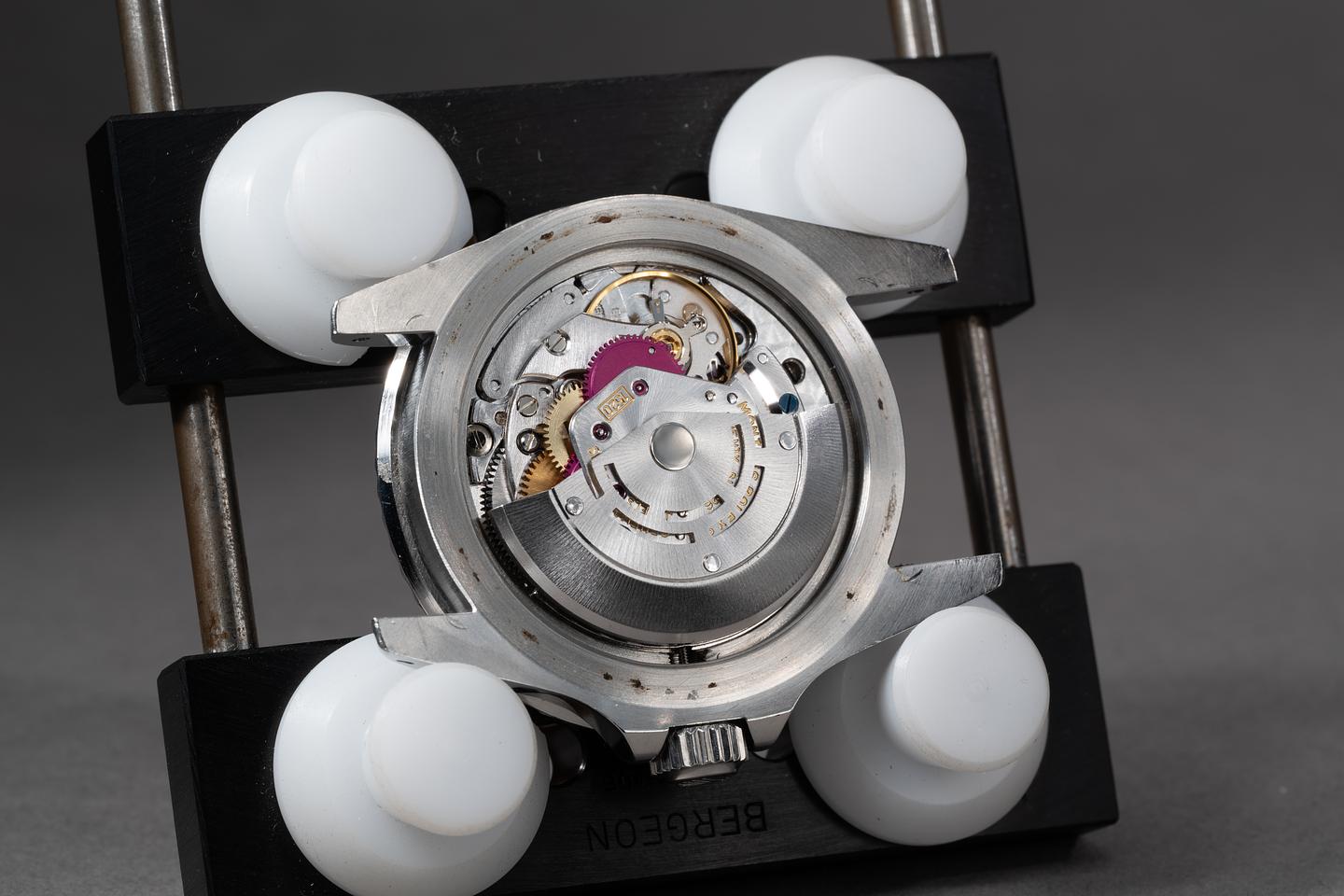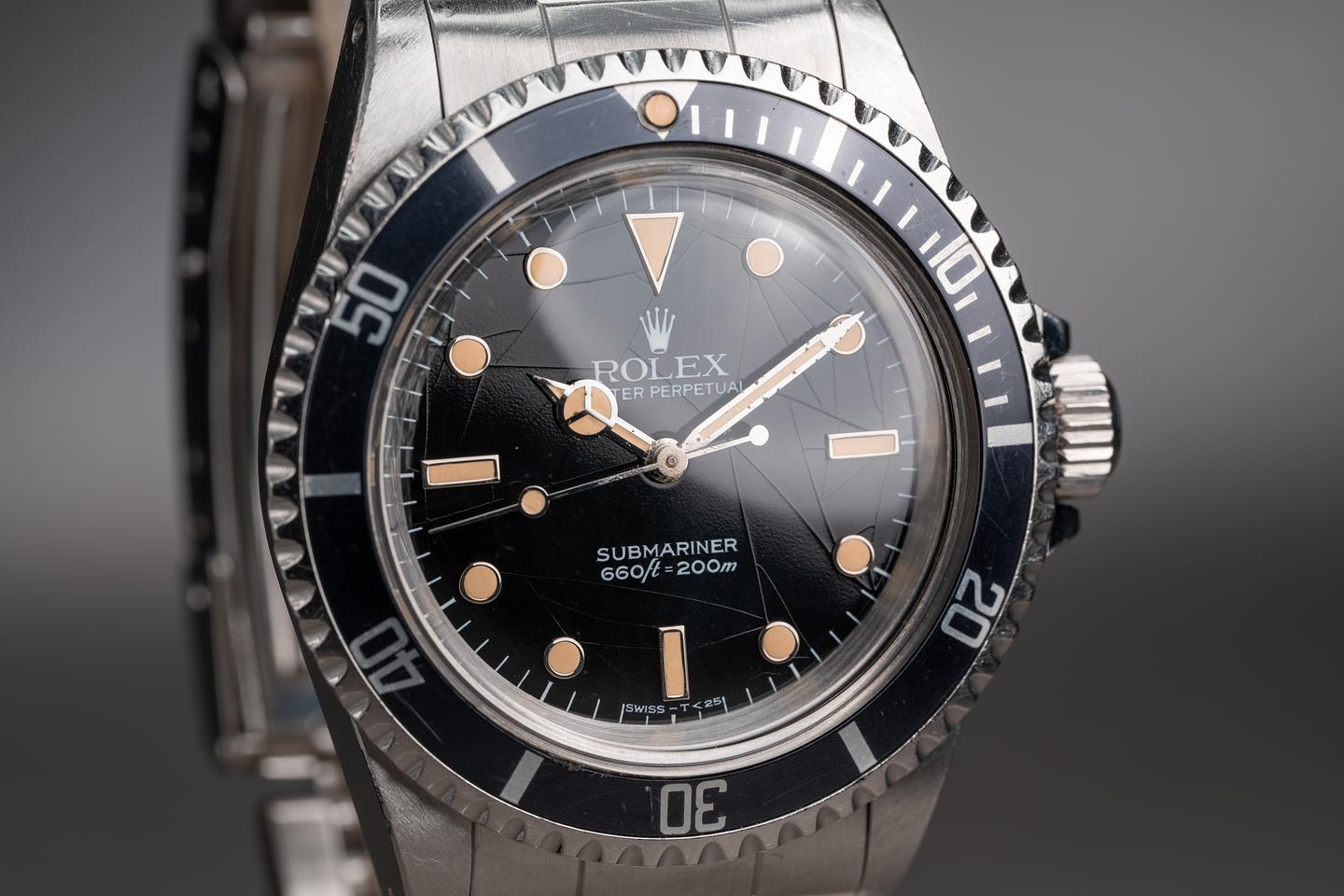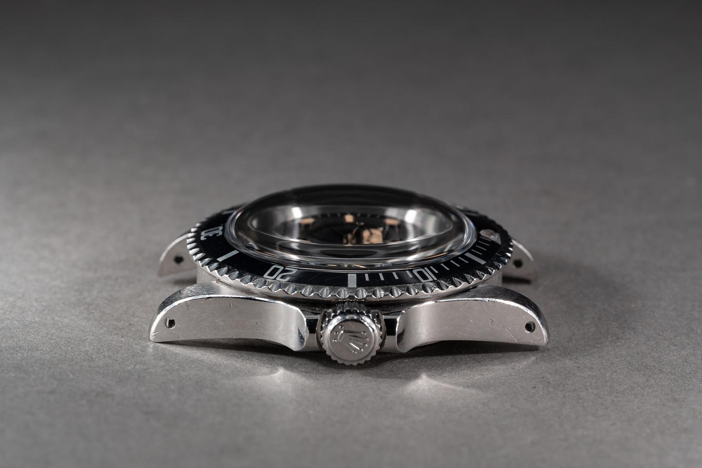 Case: The thick and even case with wide, sharp, prominent factory bevels and average wear for its age. The bezel insert is also in excellent condition and has aged to a dark navy blue hue showing only light wear from use.