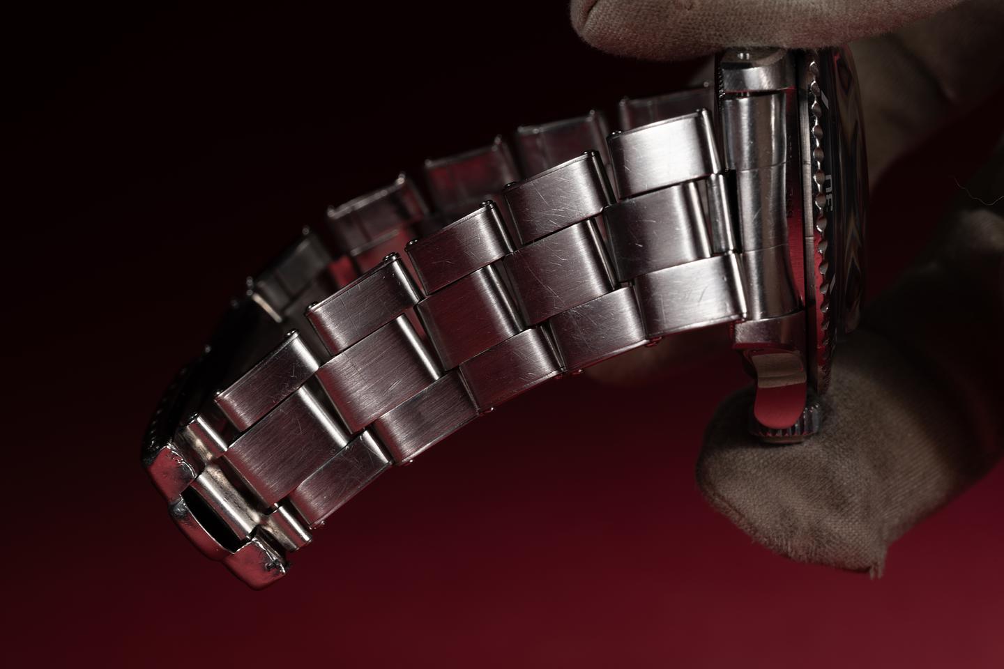 Bracelet: The 11 link U.S.A. rivet bracelet is excellent showing only light stretch for its age. The clasp is stamped with a matching 1971 date code.