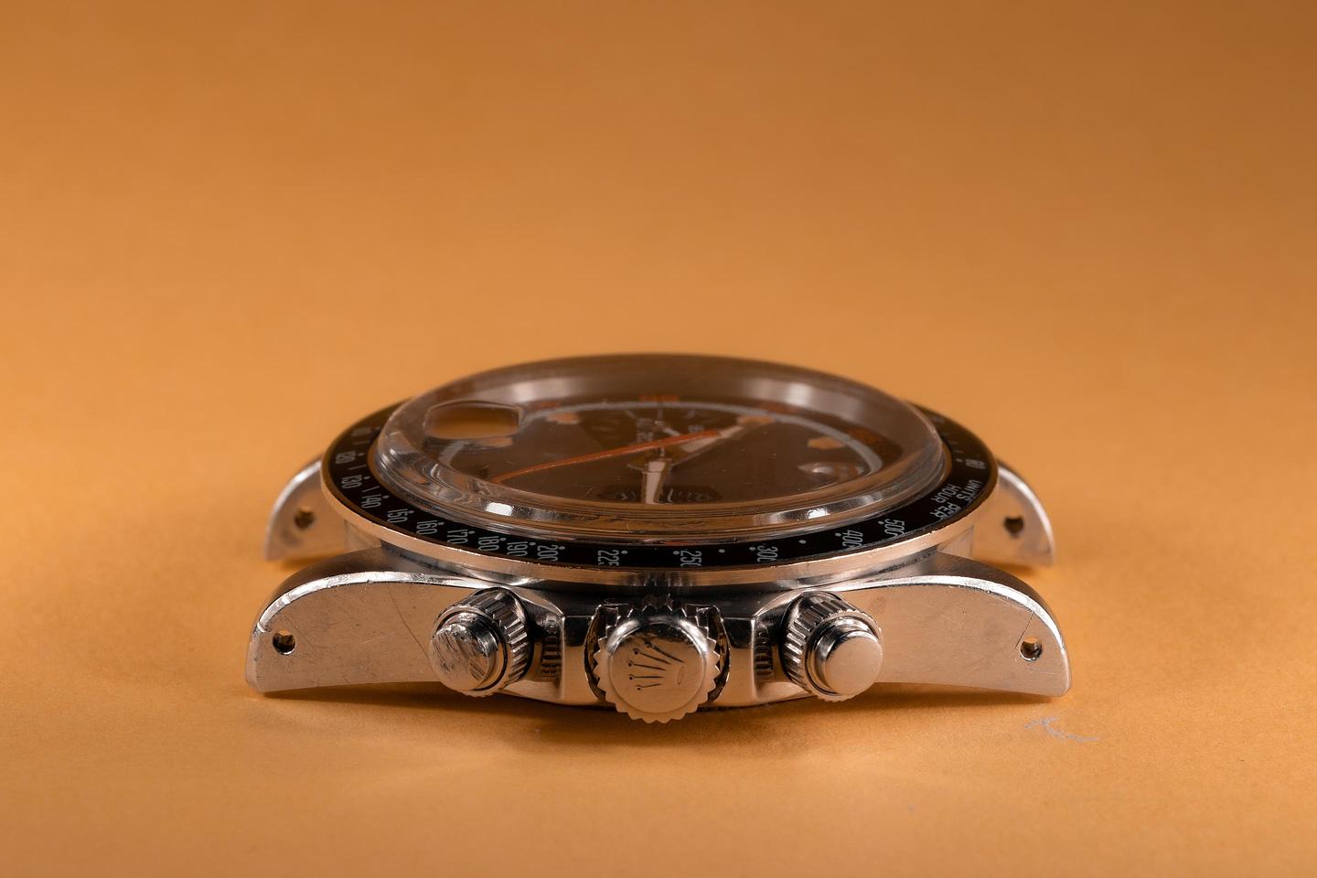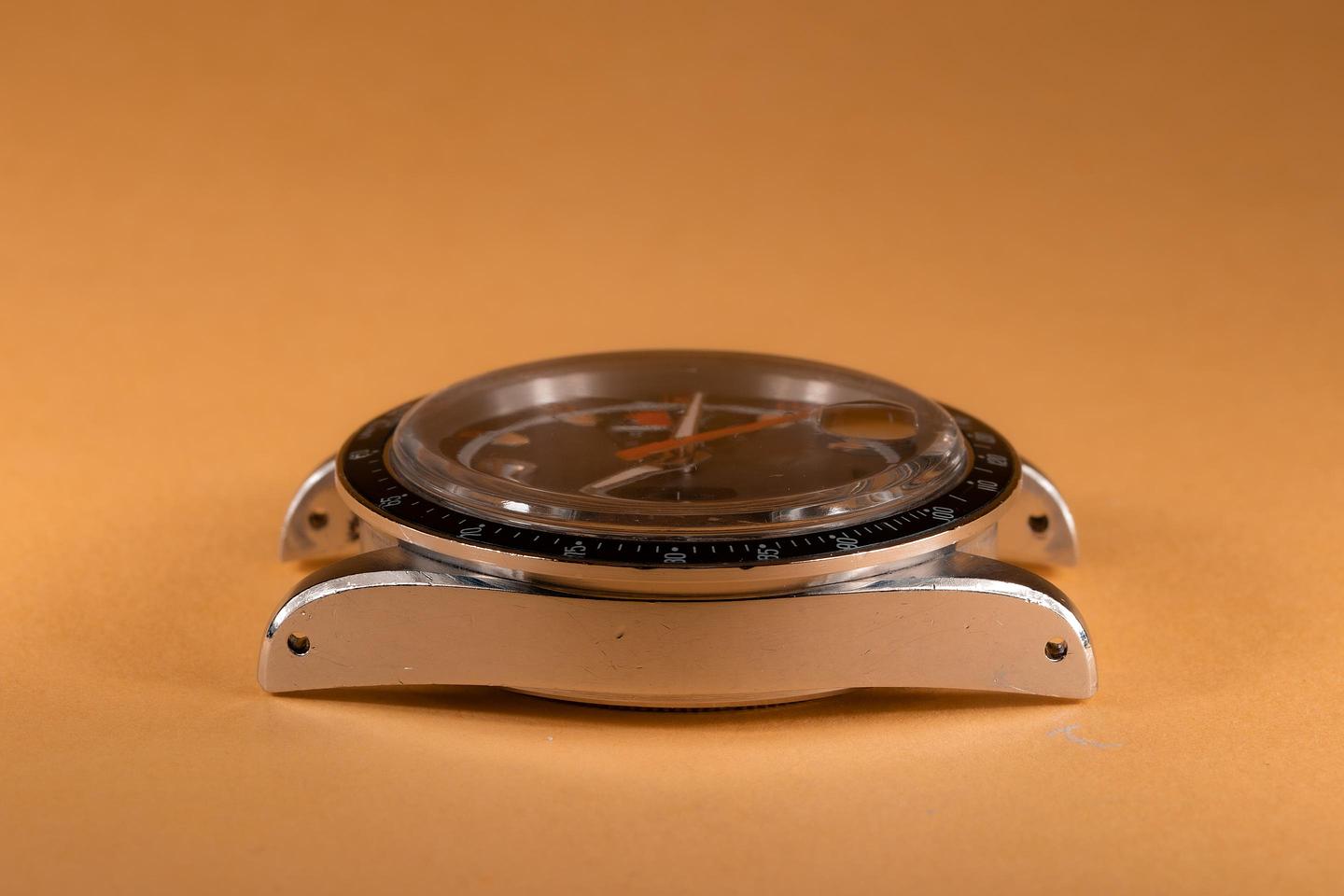 Case: The excellent thick case with light wear from use.The black bezel insert is also in excellent condition and shows light wear for its age.