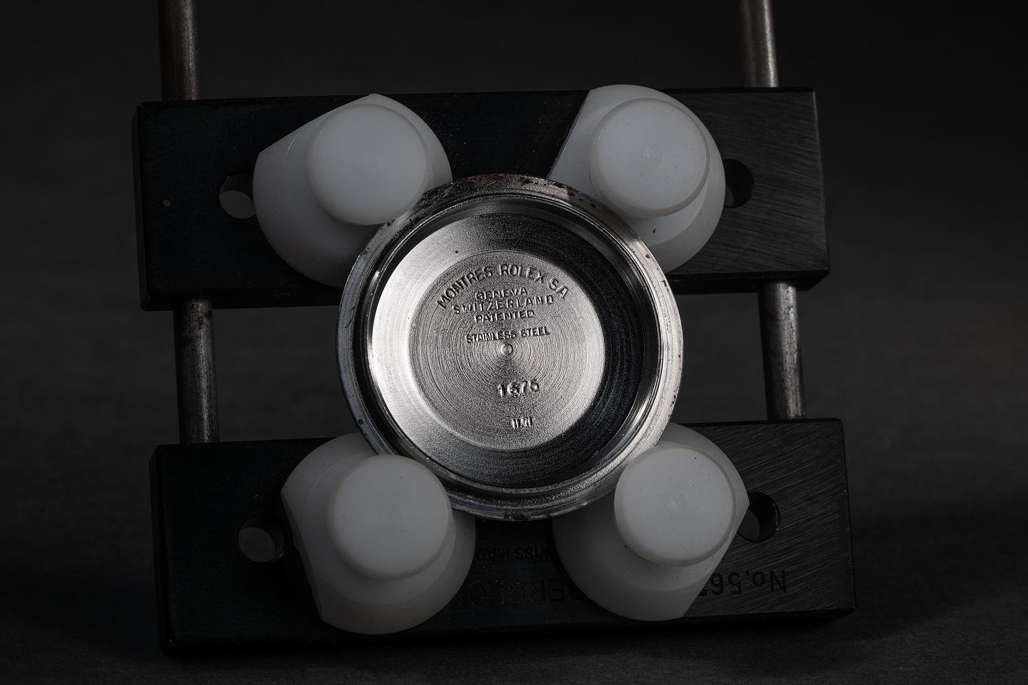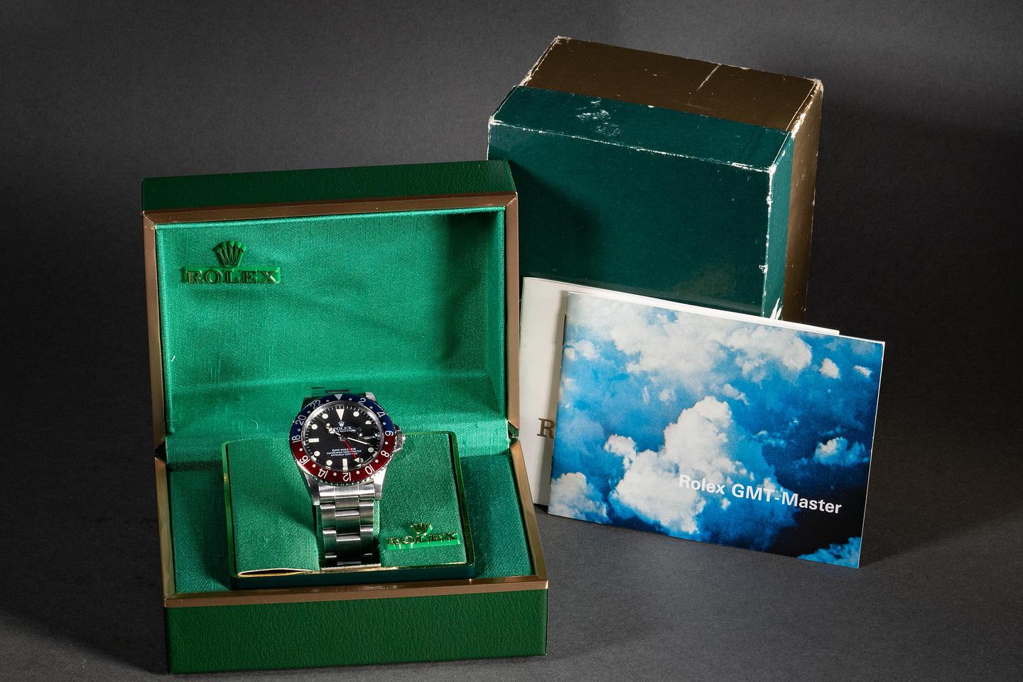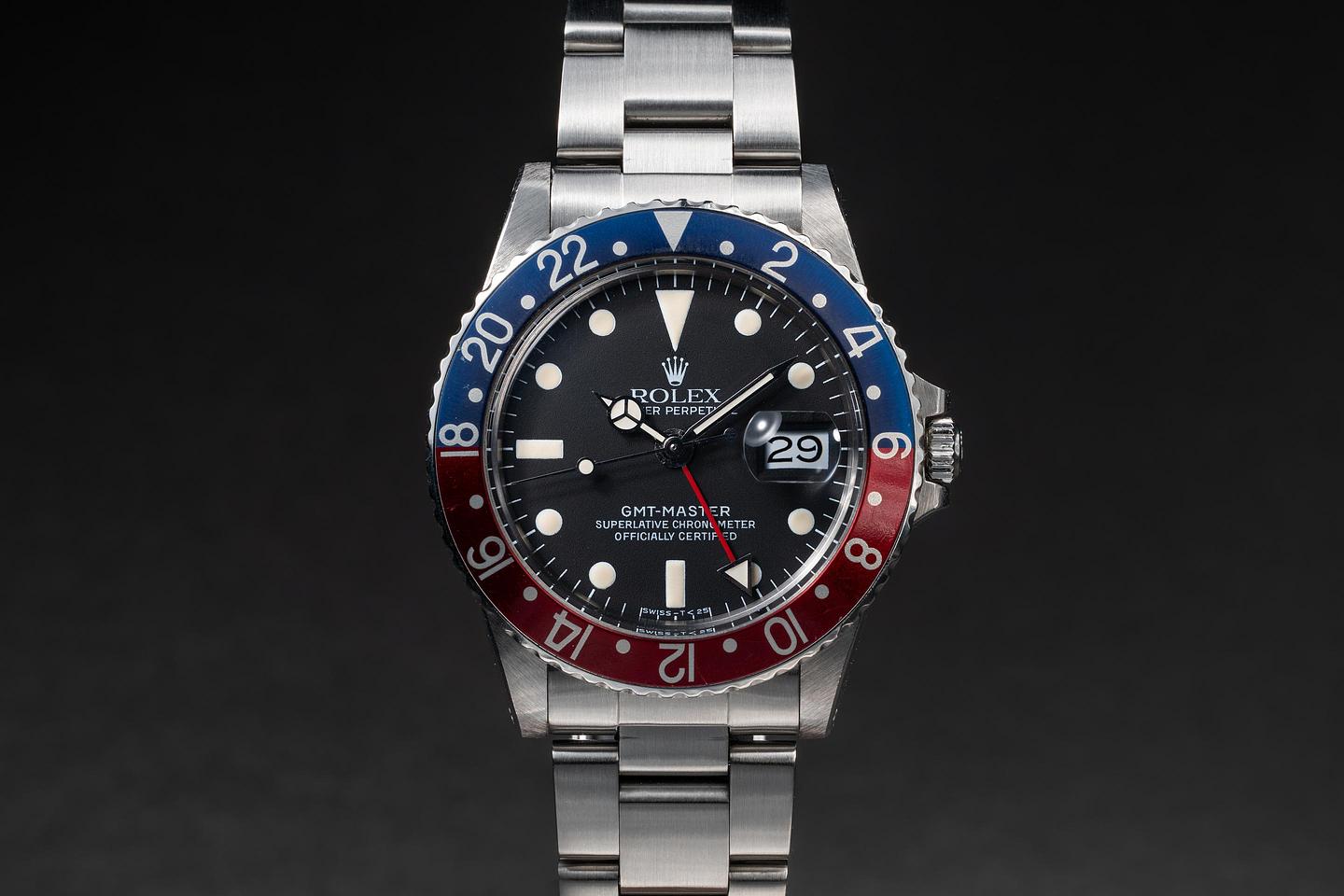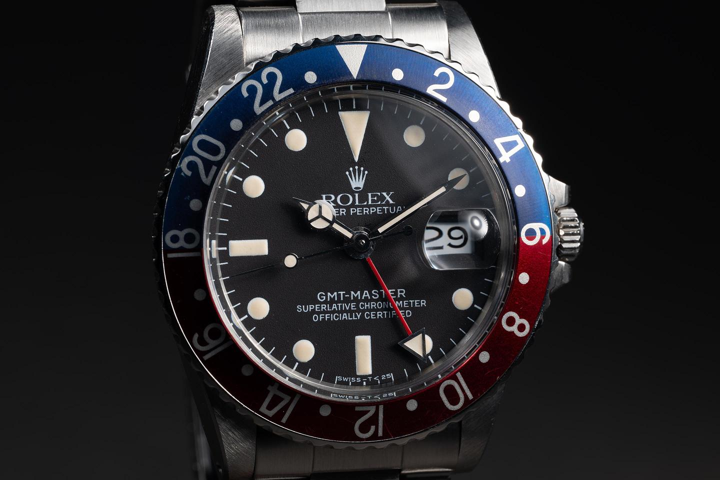 Case: The thick, even case is excellent, showing sharp, prominent bevels and only light wear from use. The blue and red "Pepsi" bezel insert is also in excellent condition, showing only very light wear from use.