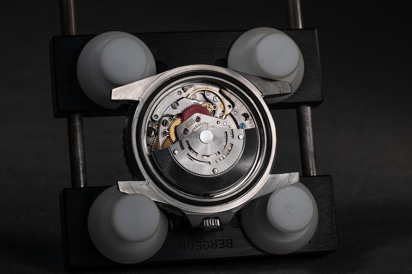 Dial: The newer matte black service dial is excellent, showing some light wear for its age. The hands have been relumed and color-matched to the dial.