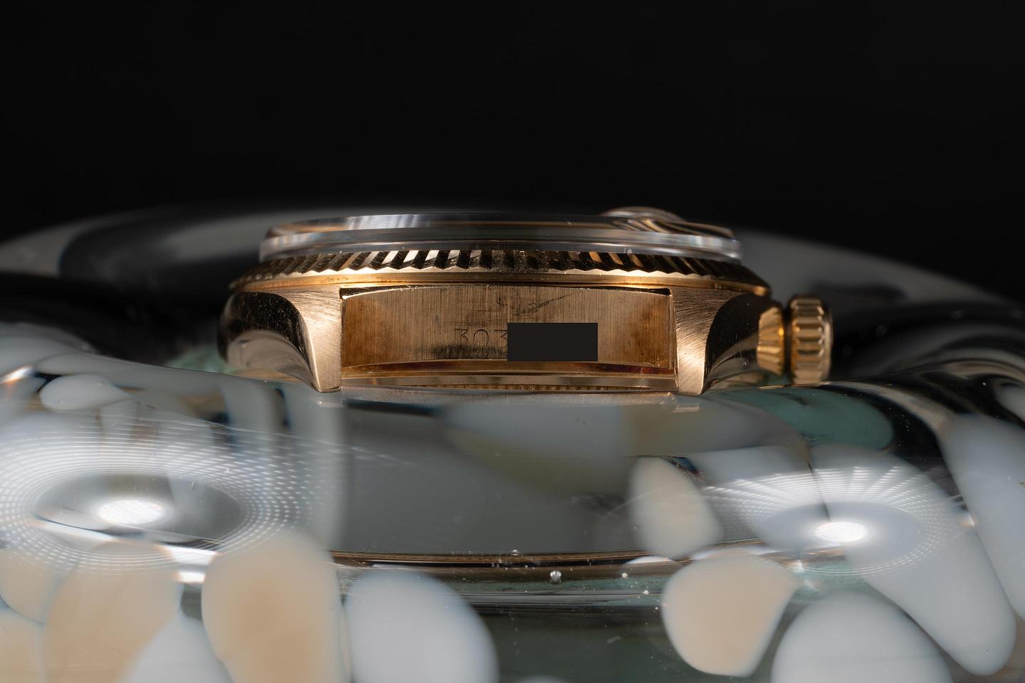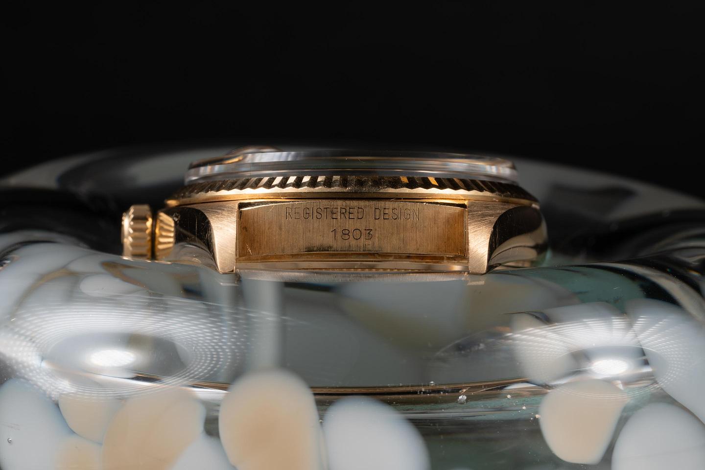 Case: The sharp 18K yellow gold case is excellent, showing only very light wear from use. The sharp 18K yellow gold fluted bezel is aso in excellent condition showing only light wear from use.