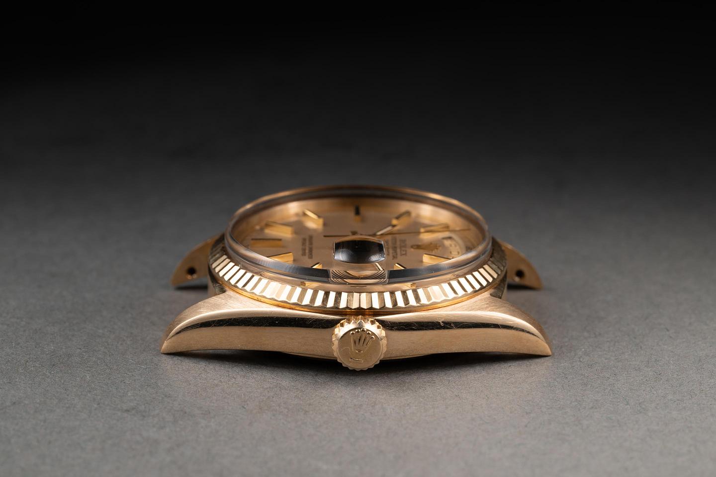 Dial: The matte champagne minute track dial is excellent showing only very light wear for its age. The lume has aged to a warm creamy hue and the hands match perfectly. The 6 o'clock lume plot is missing.