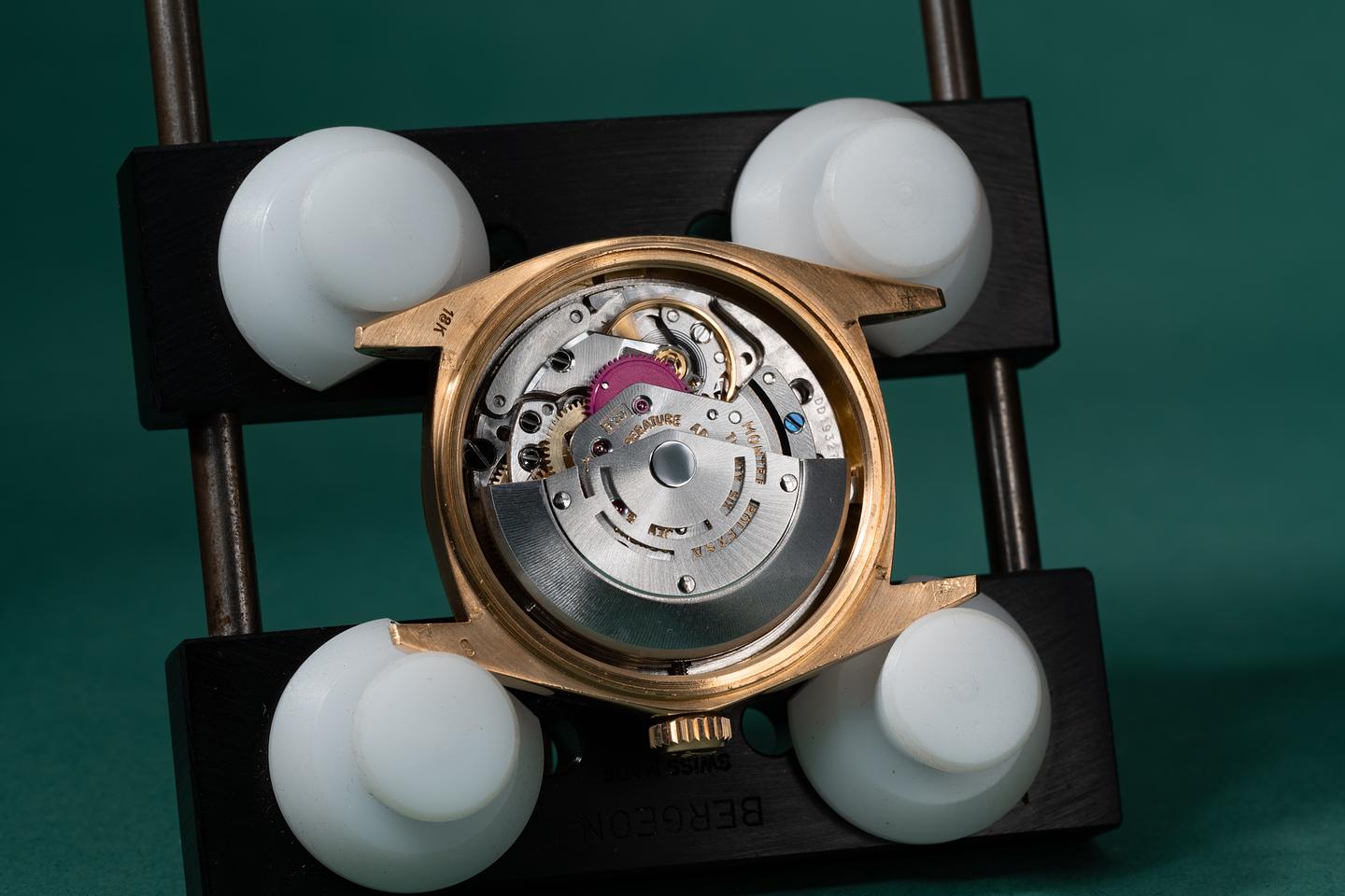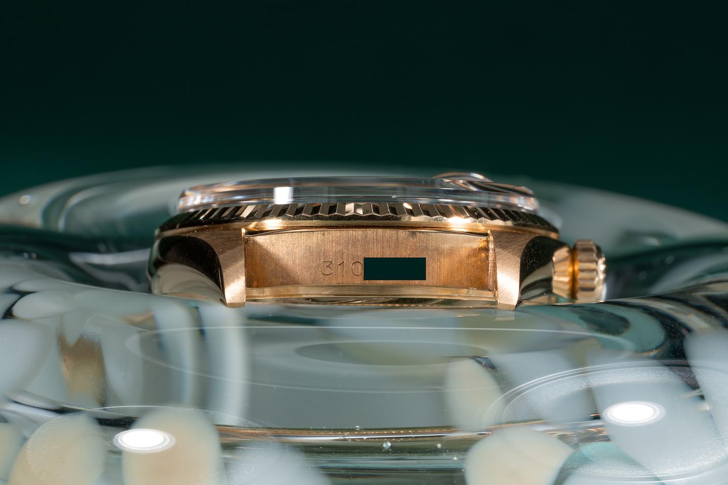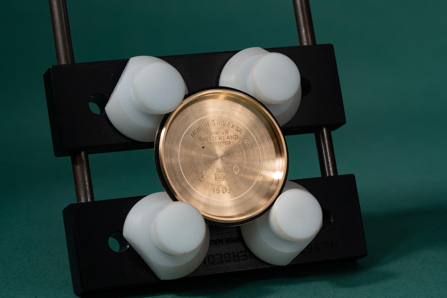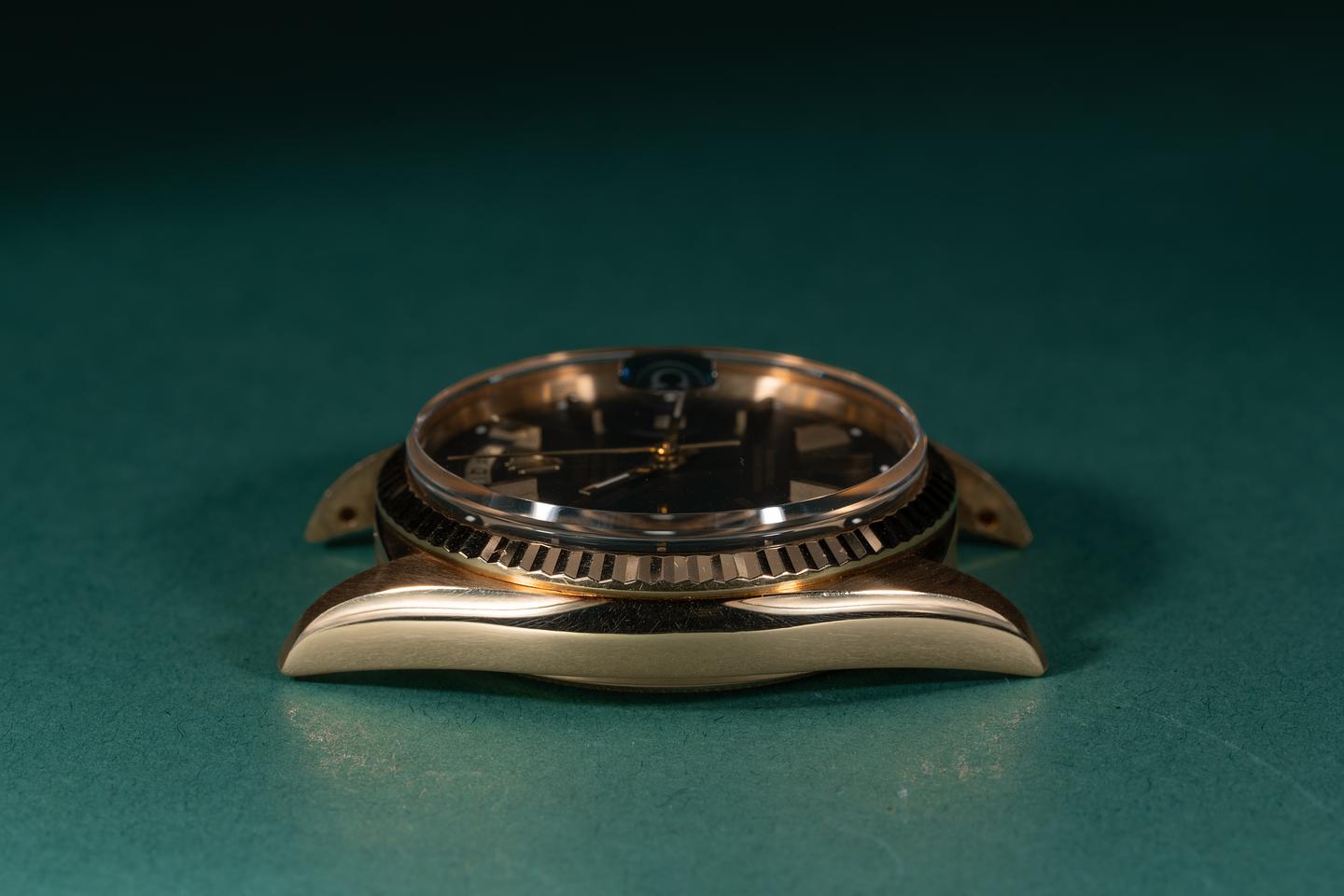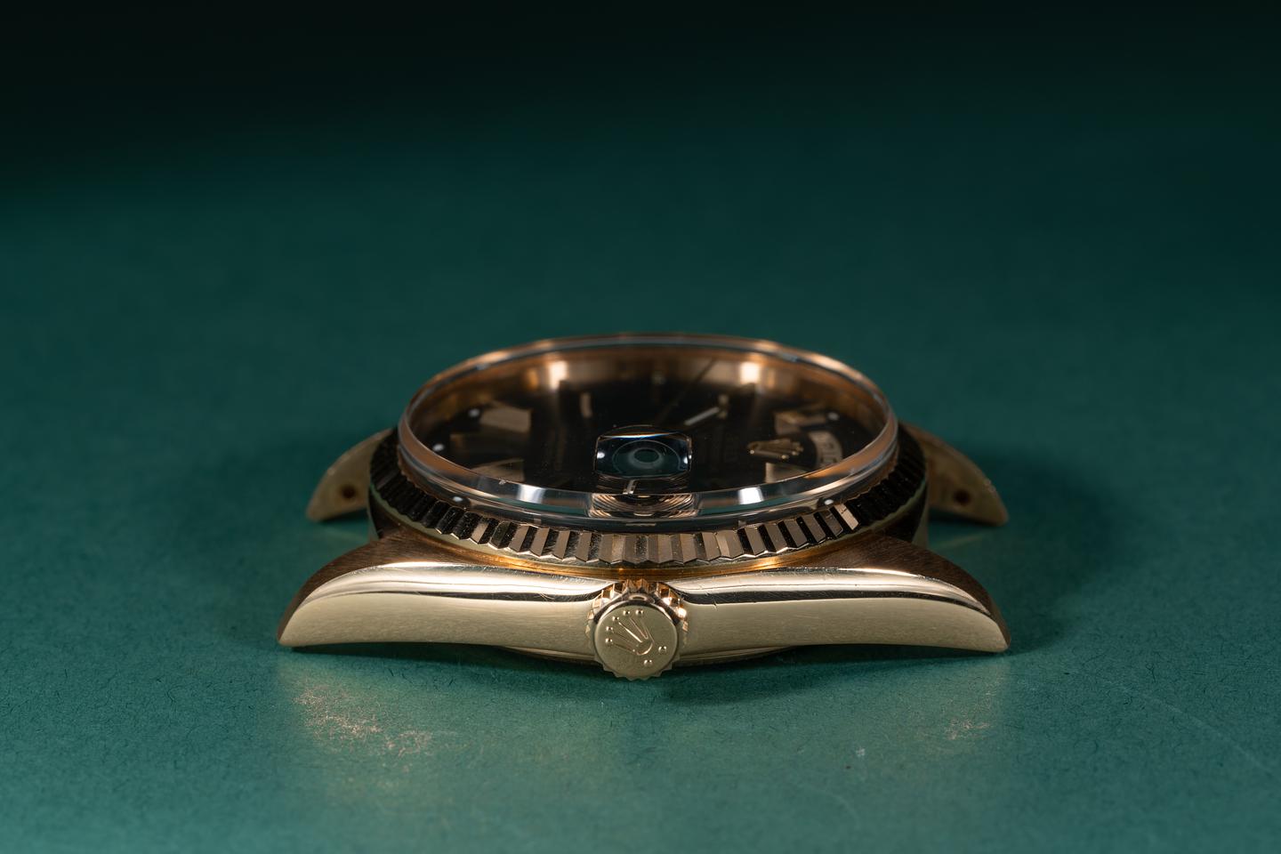Case: The thick and even 18k yellow gold case is excellent showing only very light wear from use. The sharp 18k yellow gold bezel is also in excellent condition showing only very light wear from use.