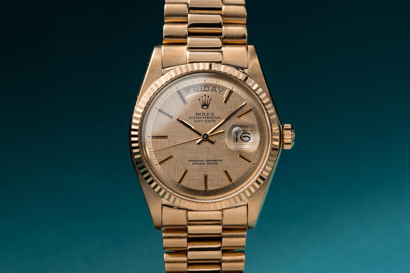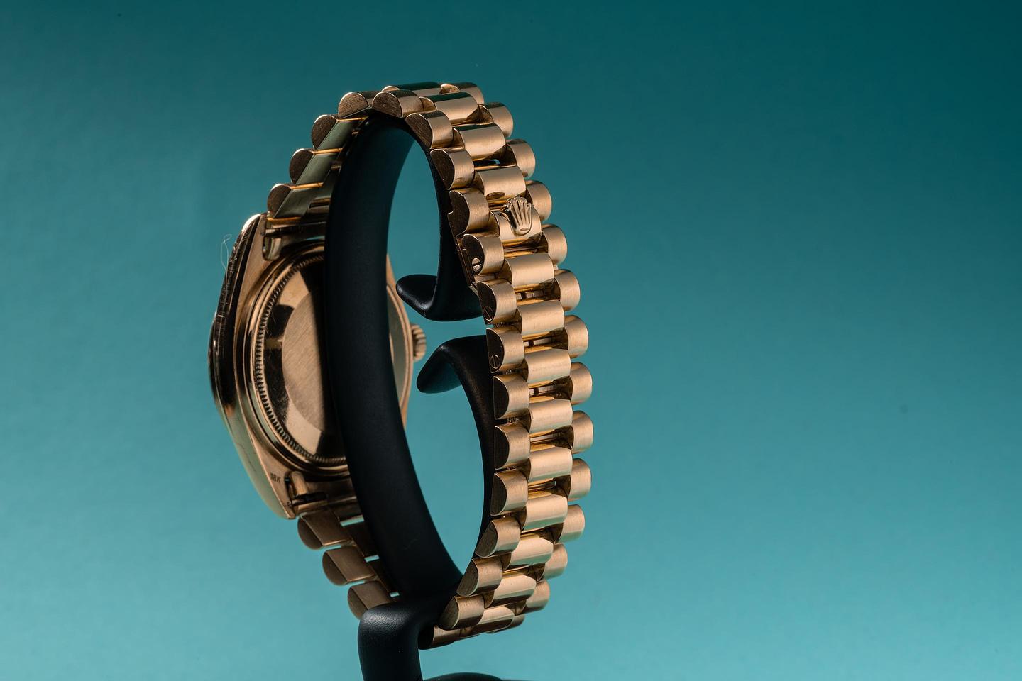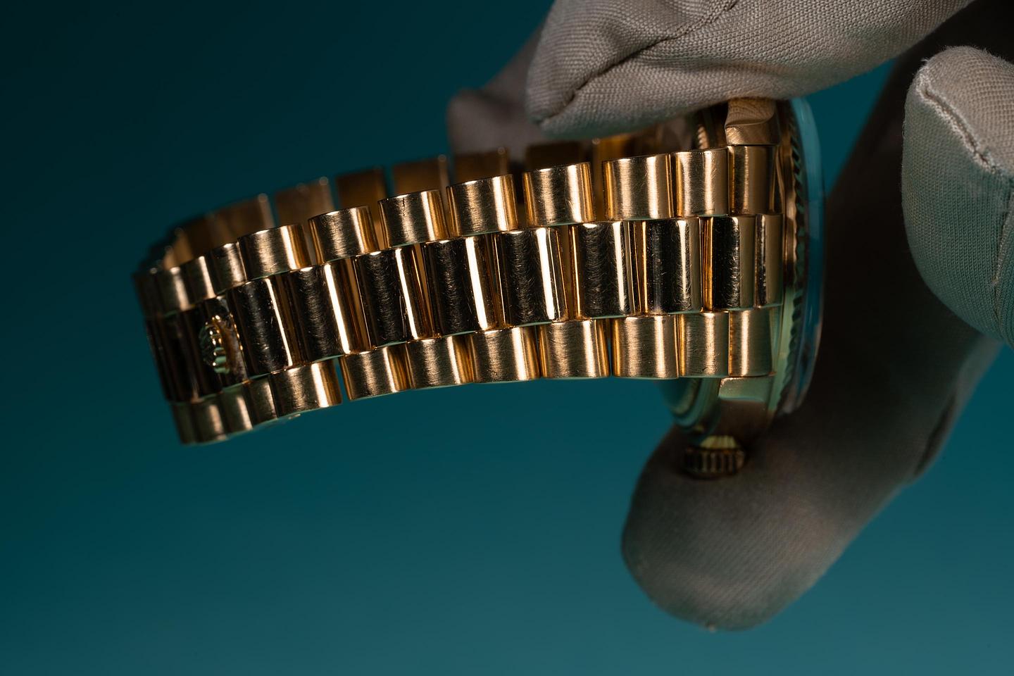 Bracelet: The 22 link 18K yellow gold President bracelet is excellent showing only very light stretch for its age. The clasp is stamped with a 1994 date code. The bracelet will fit up to a 17.2 cm. / 6.77" wrist.