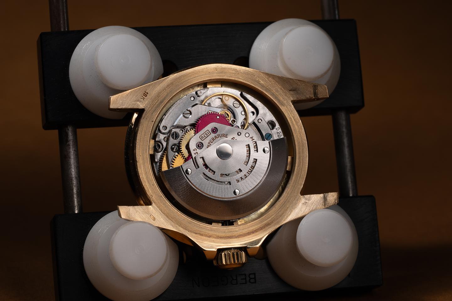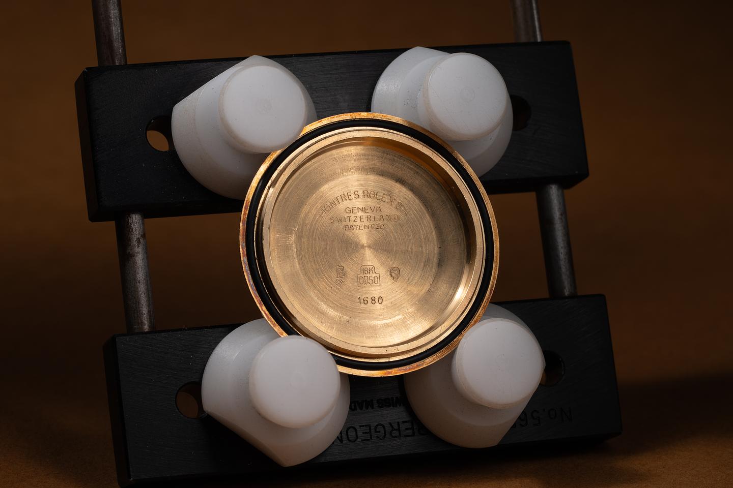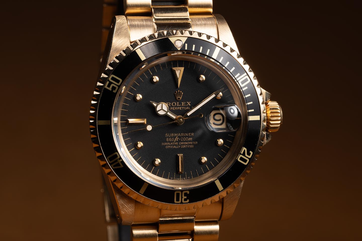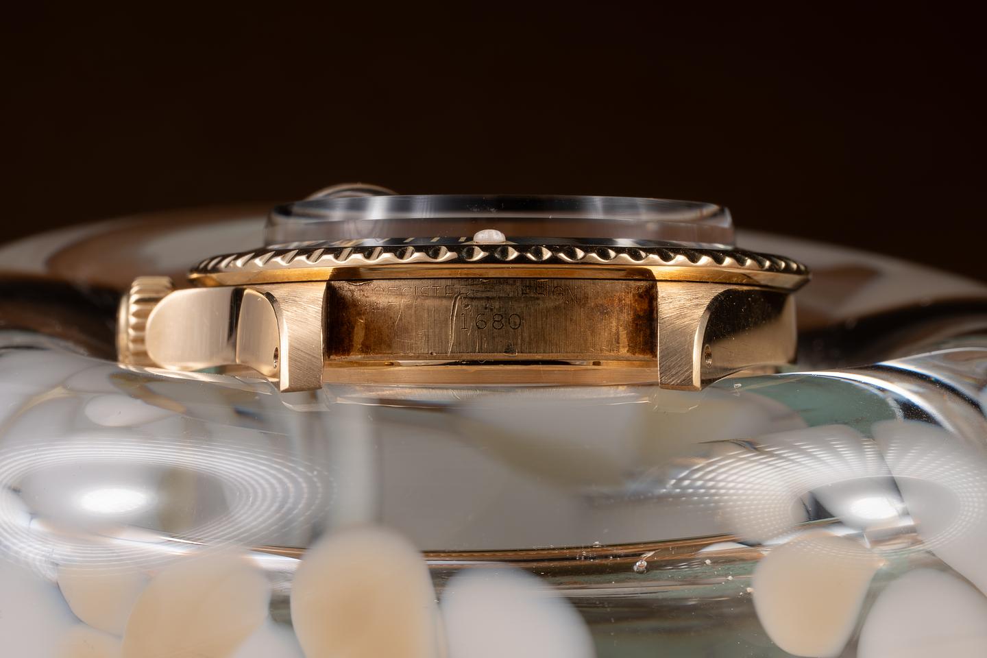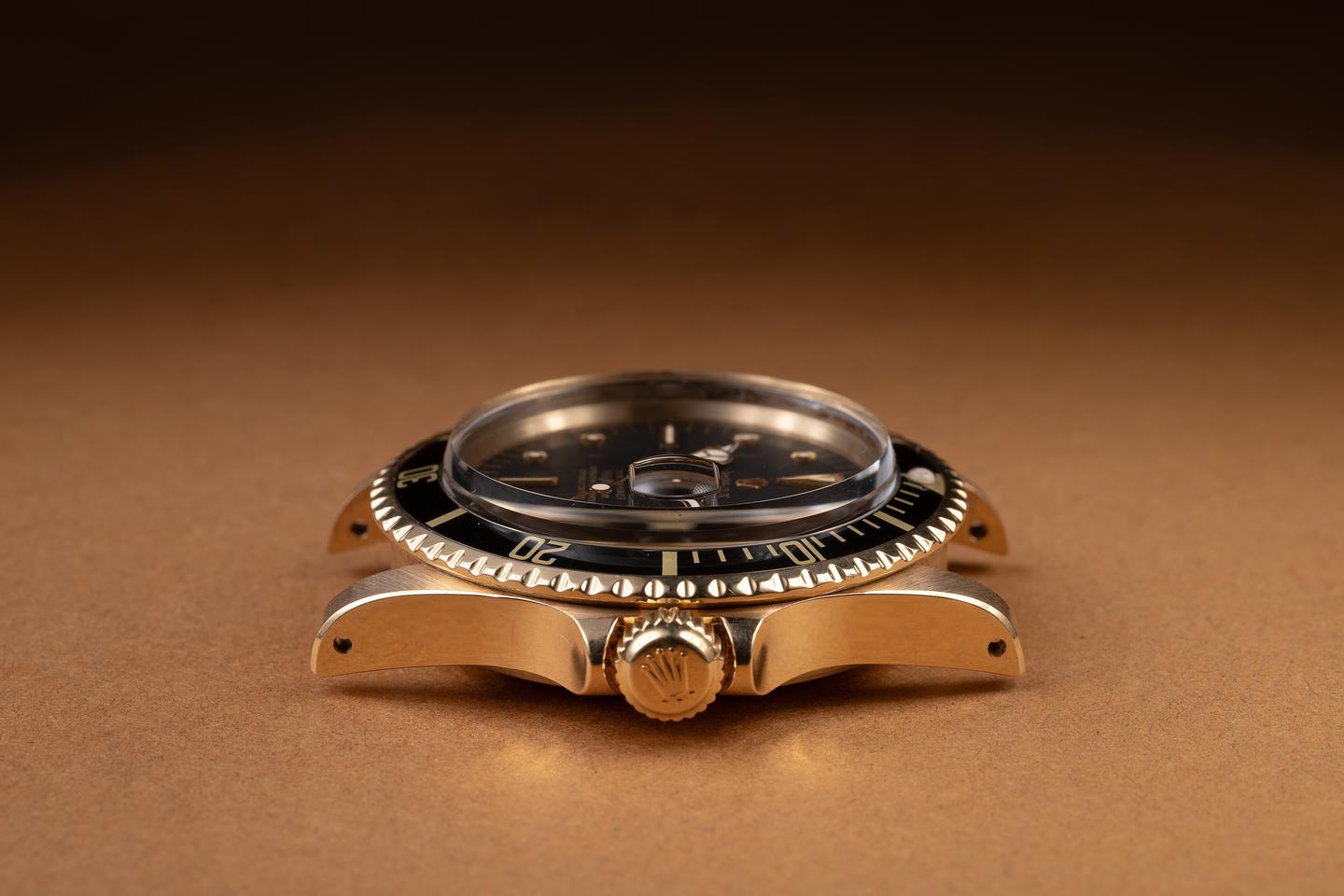 Case: The freshly polished thick and even case is excellent, showing sharp, prominent bevels. The black bezel insert is also in excellent condition, showing only light wear from use.