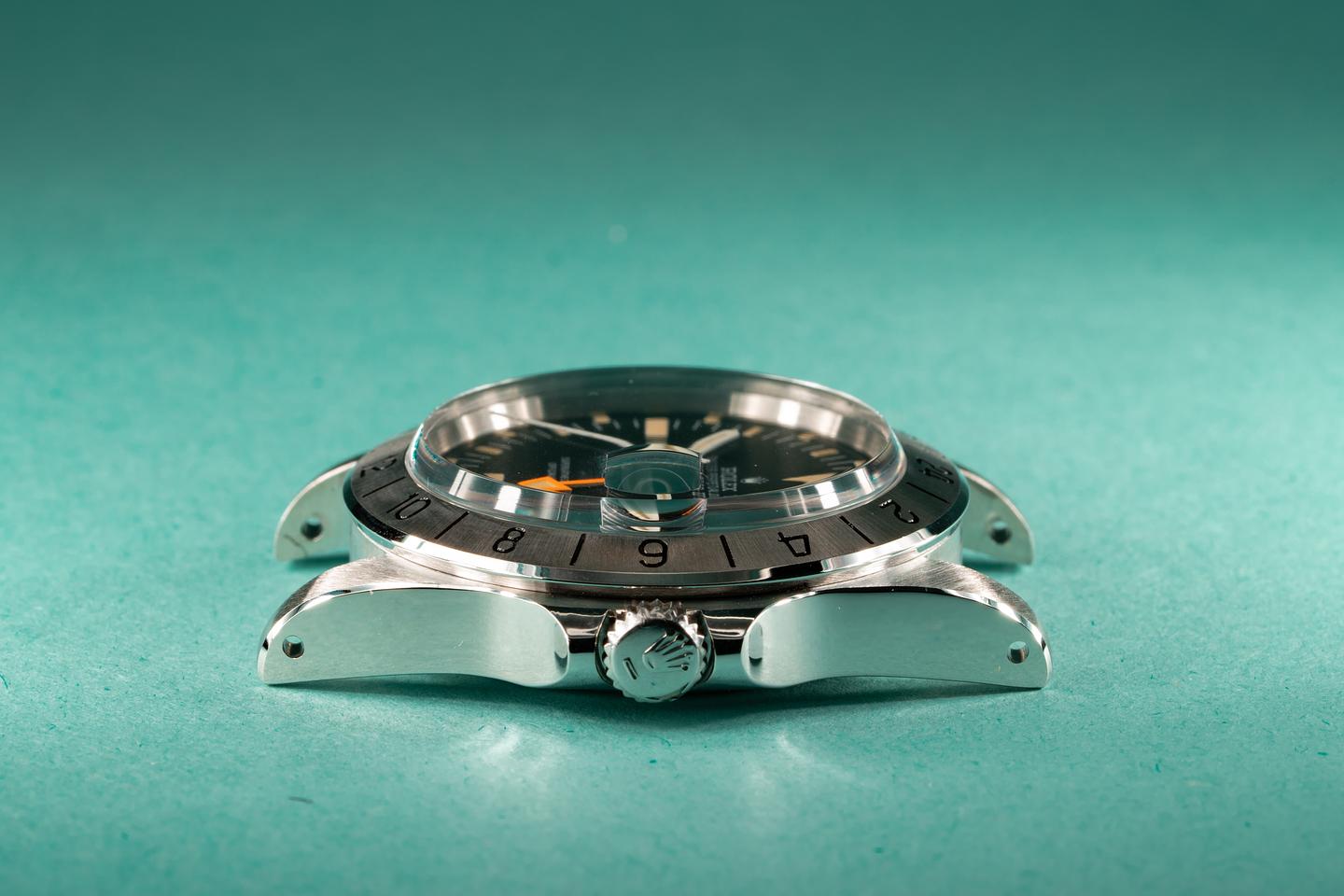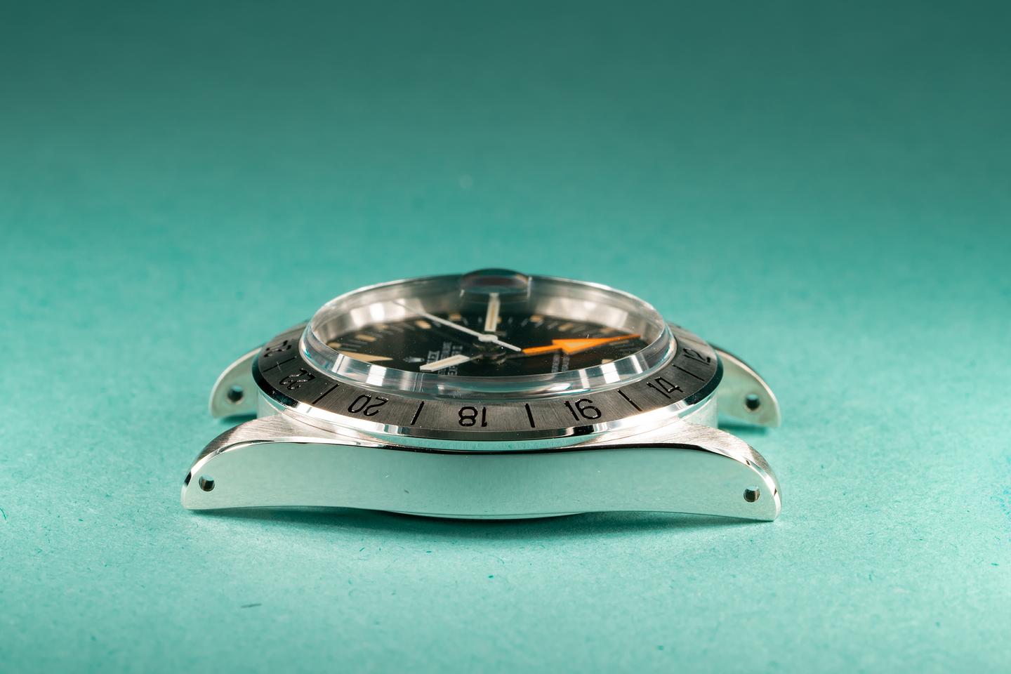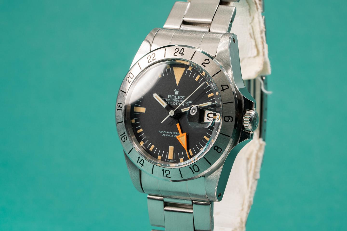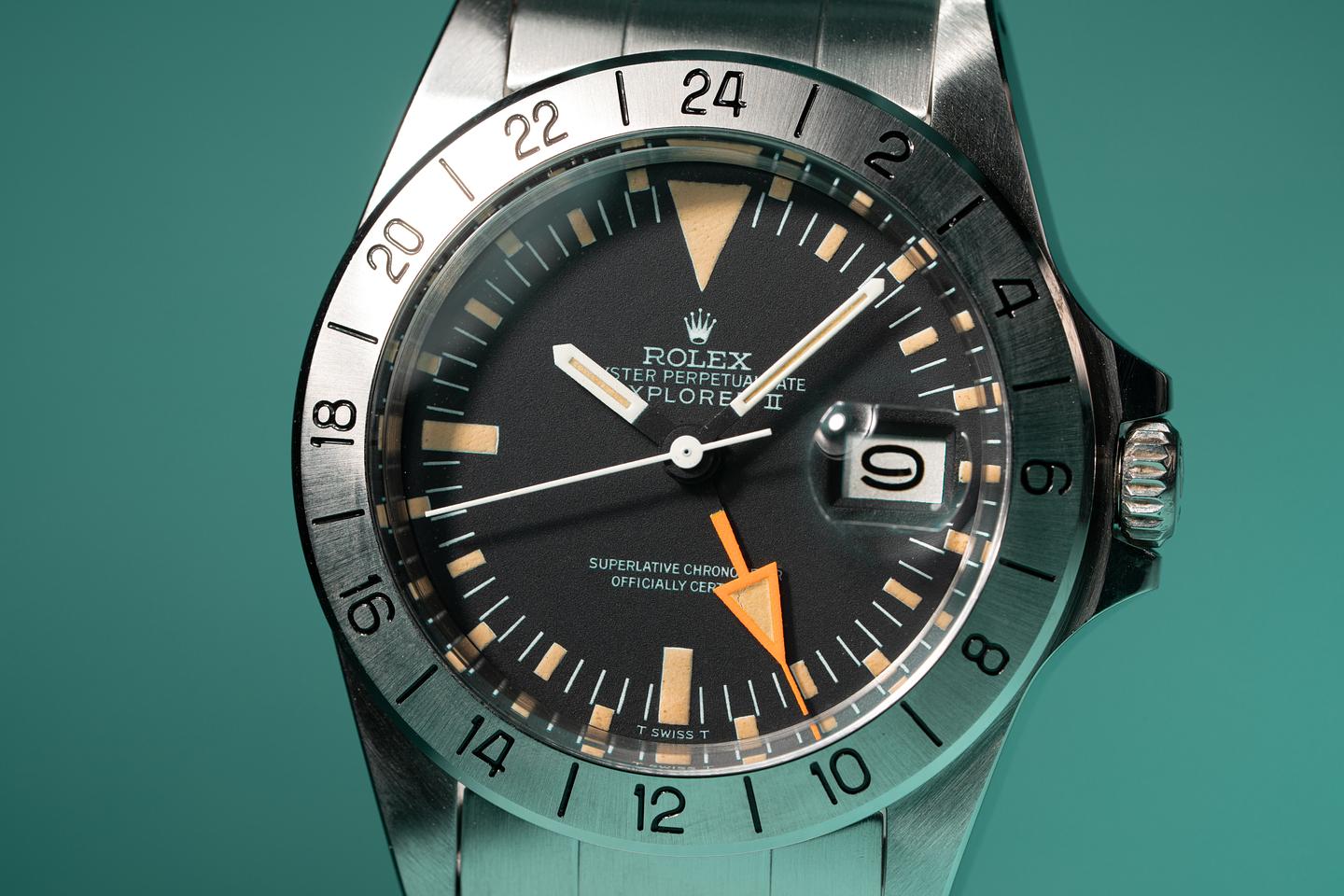 Notes: The lume on this early straight hand Explorer 2 has aged perfectly, while the orange 24 hour hand retains its brilliant factory hue.