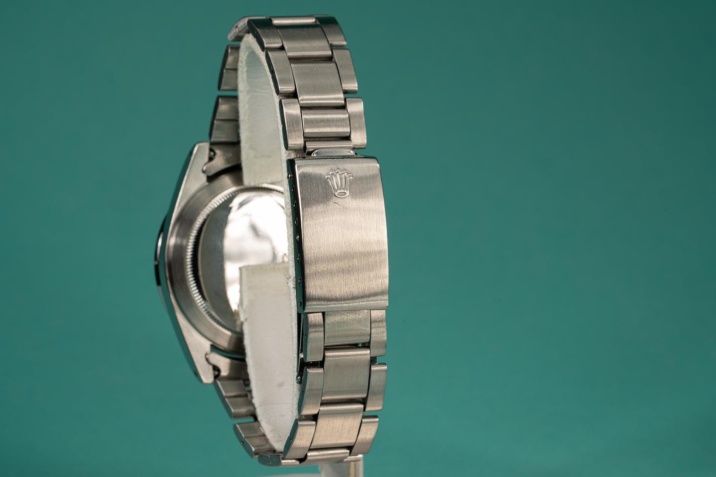 Bracelet: Excellent 13 link folded oyster bracelet that has average stretch for its age. The clasp is stamped with a 1977 date code.