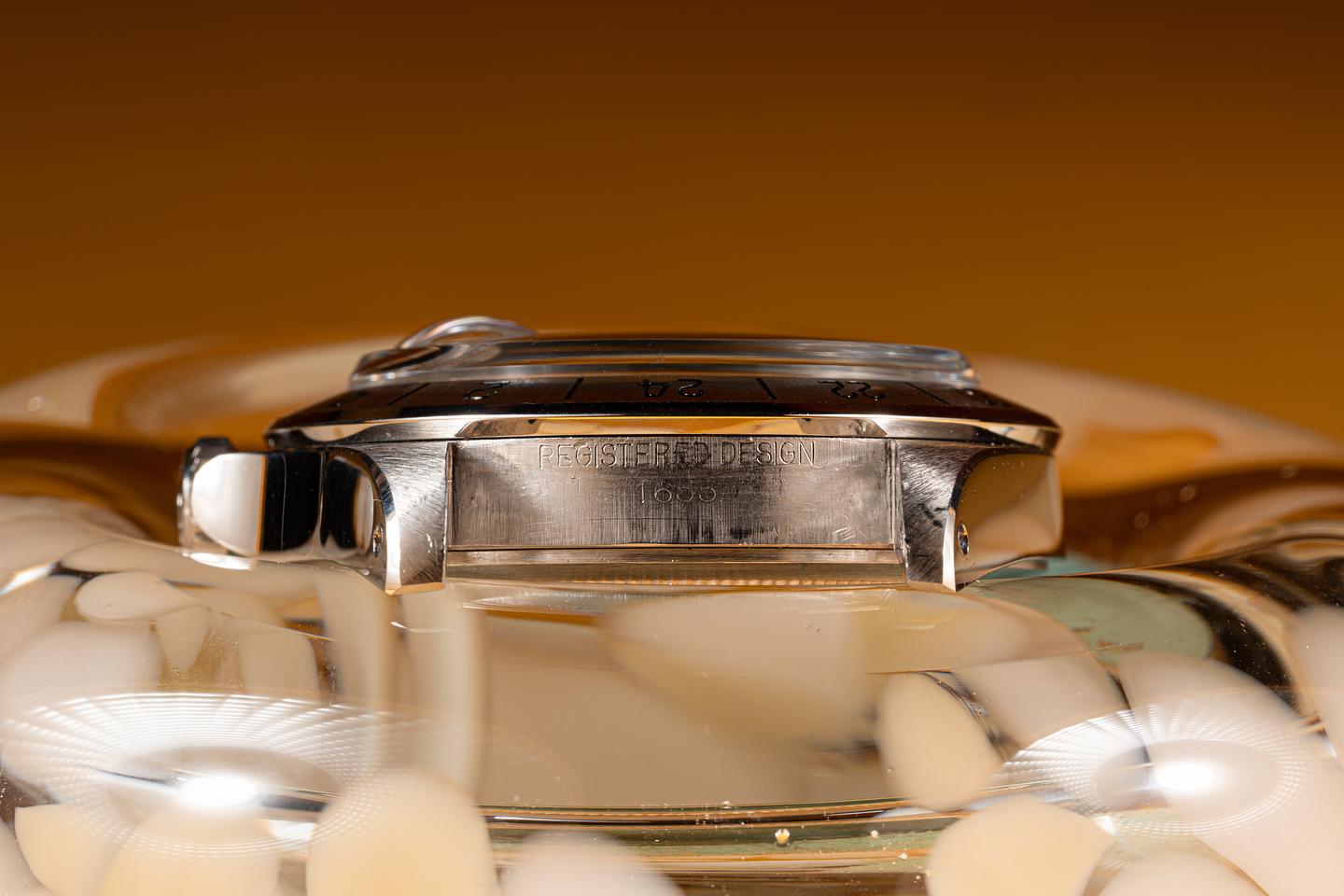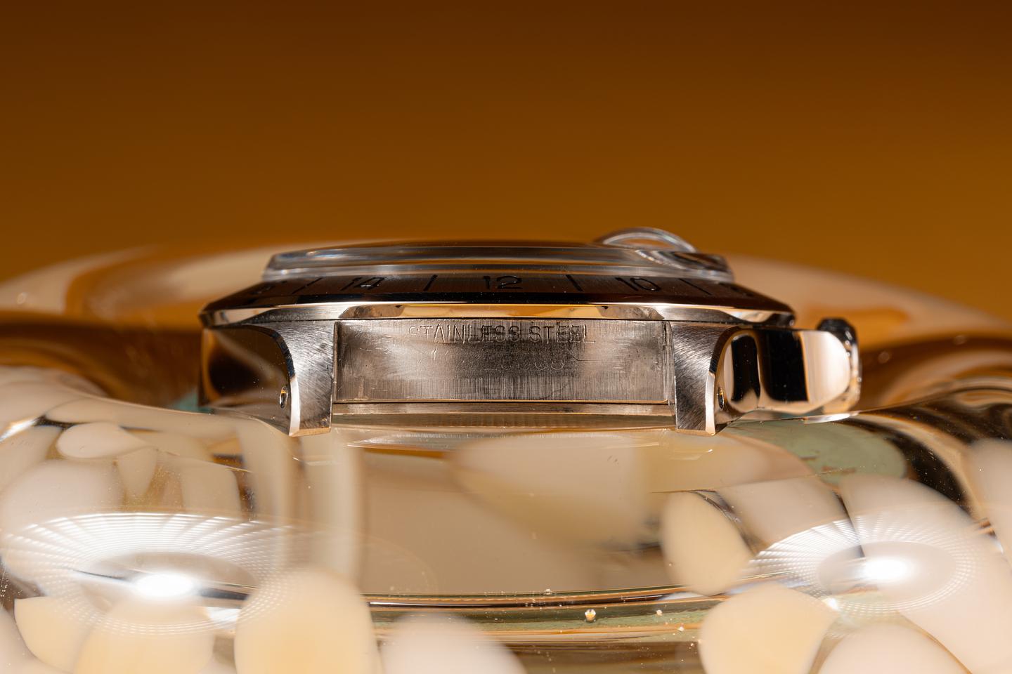 Case: The recently polished case is excellent showing sharp prominent bevels and only light wear from use. The stainless bezel is also in excellent condition showing a sharp well-defined sunburst finish. The serial numbers show excessive wear and are no longer able to be made out.