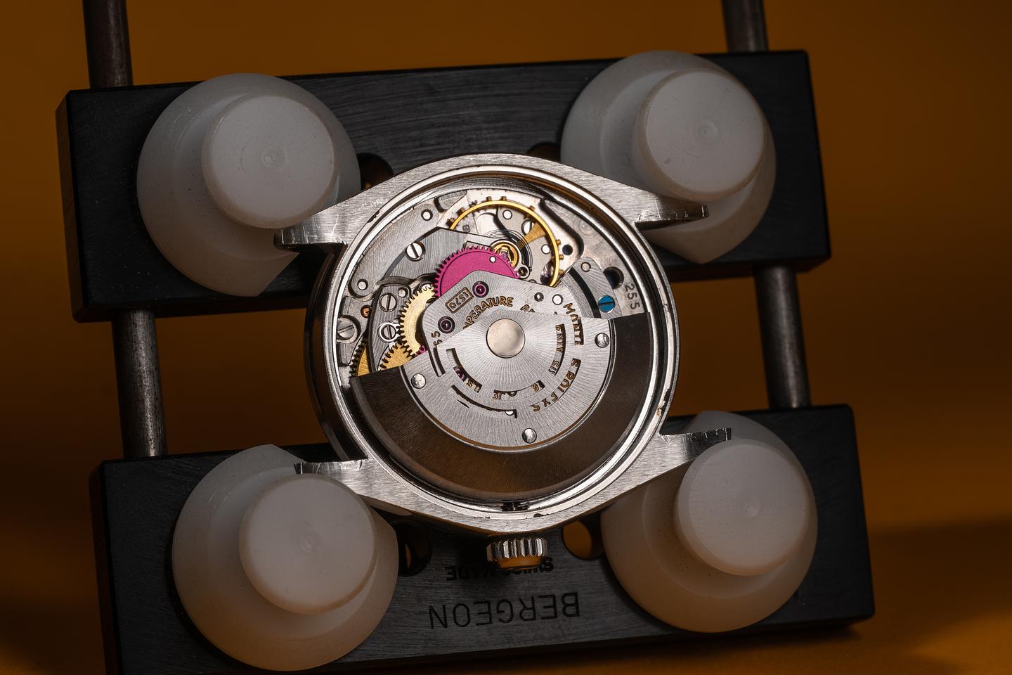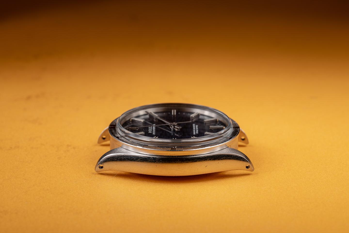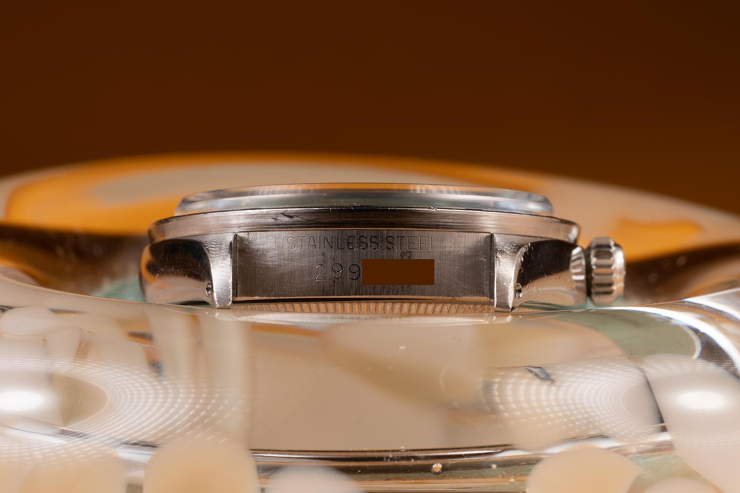 Case: The 34mm case is excellent, showing only light wear from use. The stainless engine-turned bezel is also in excellent condition, showing only light wear from use.