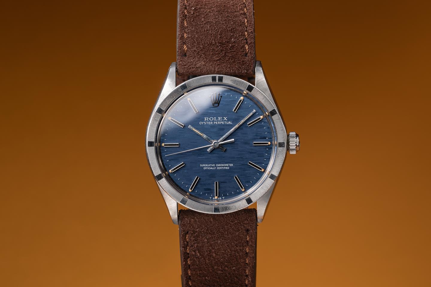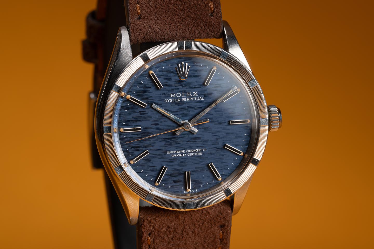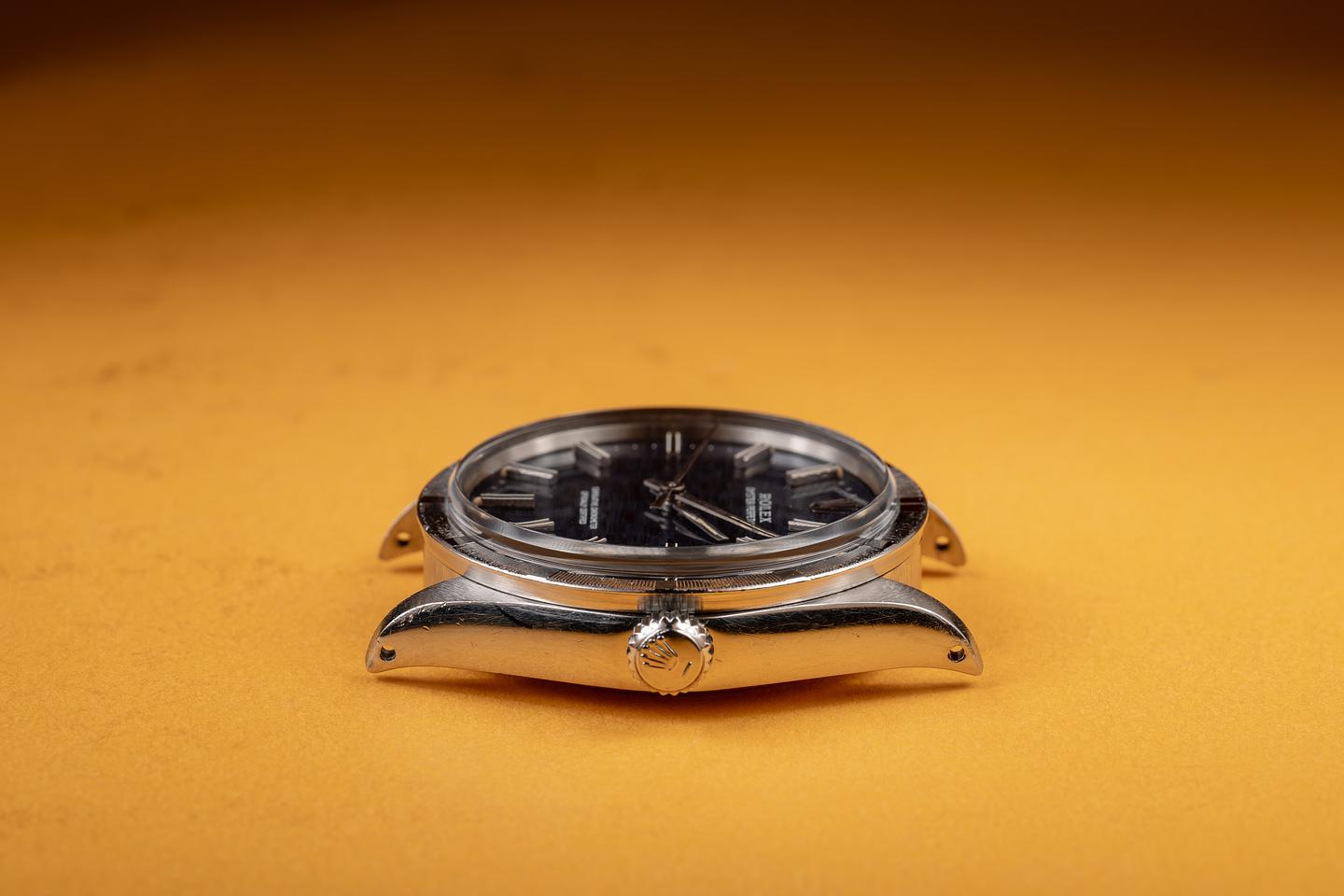 Dial: The blue mosaic dial is excellent, showing only light wear for its age. The lume has aged to a warm, creamy hue, and the hands match perfectly.