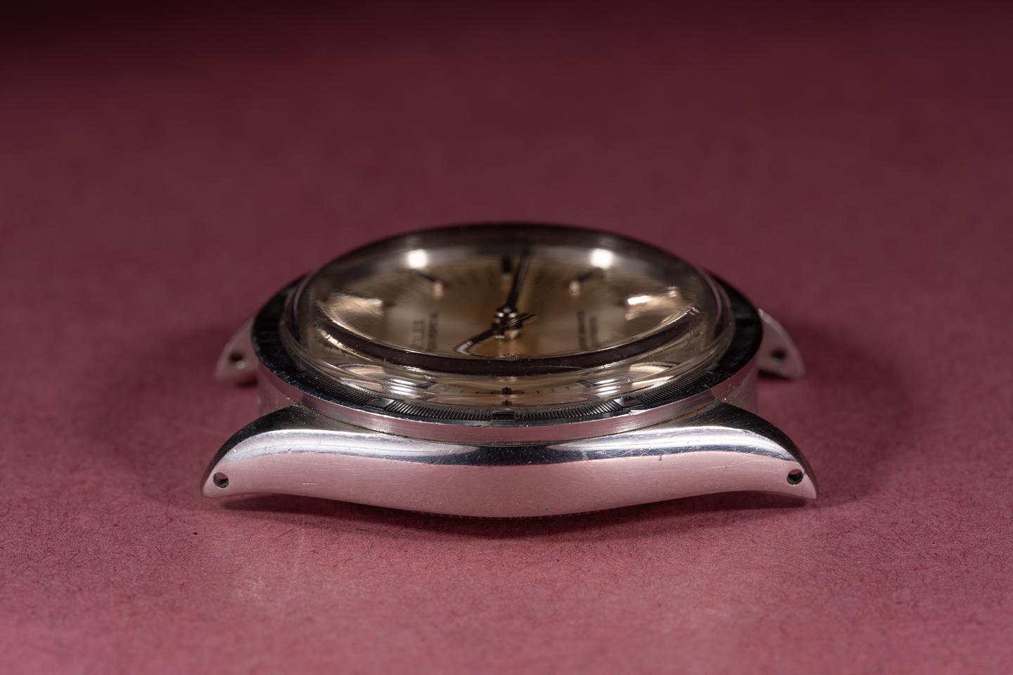 Case: The previously polished case is excellent showing some light wear from use. The engine turned bezel is also in excellent condition showing only light wear from use.