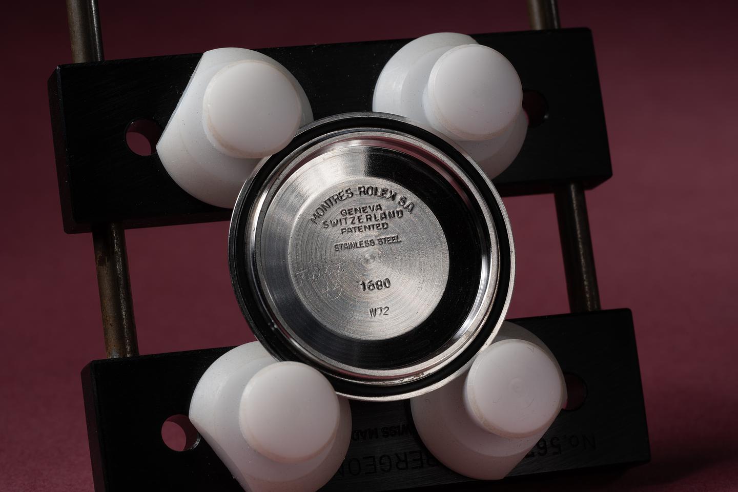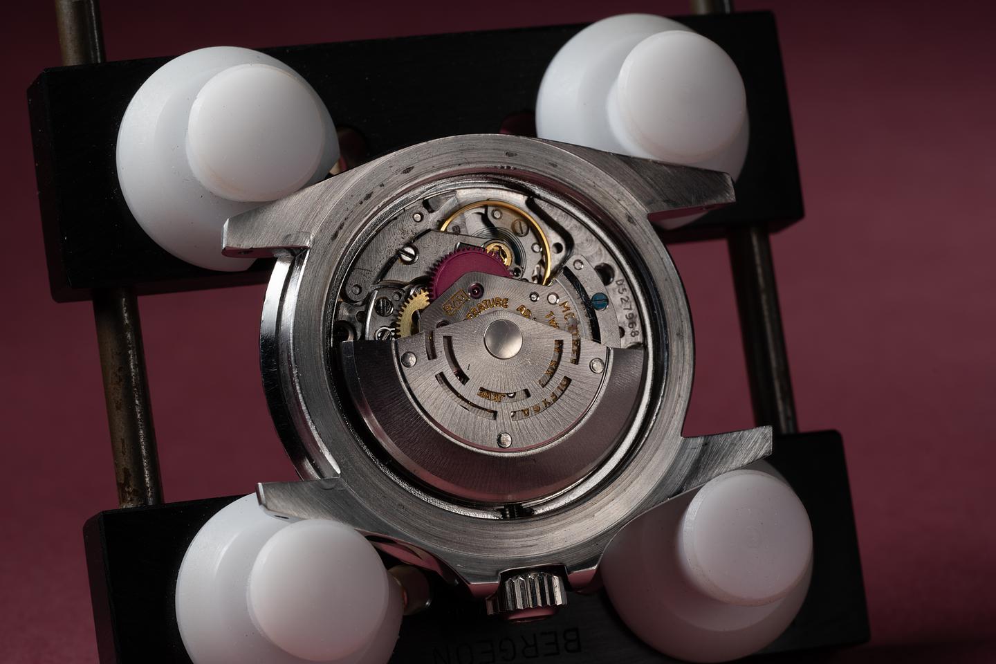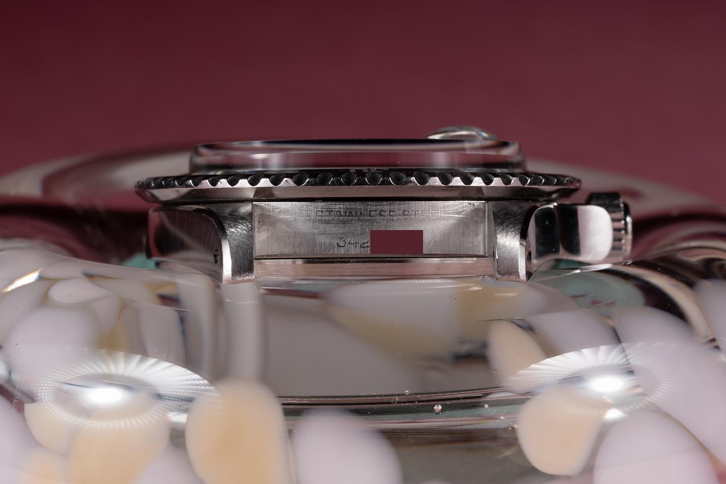 Case: The recently polished case is excellent showing sharp prominent bevels and only very light wear from use. The bezel insert has faded to a blue grey hue and shows only very light wear from use.