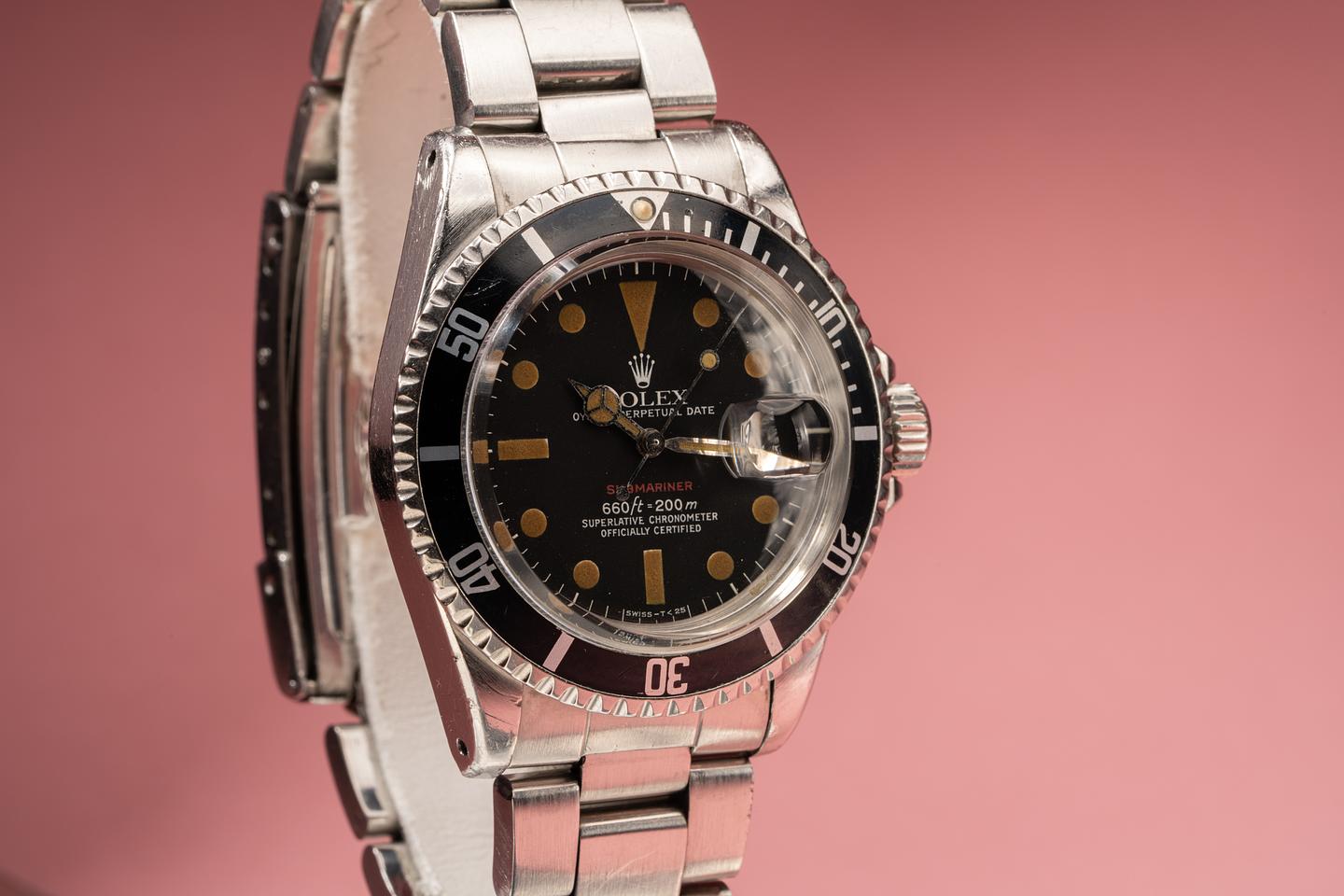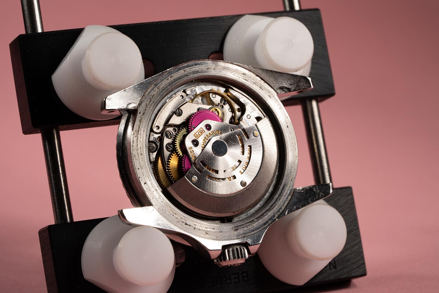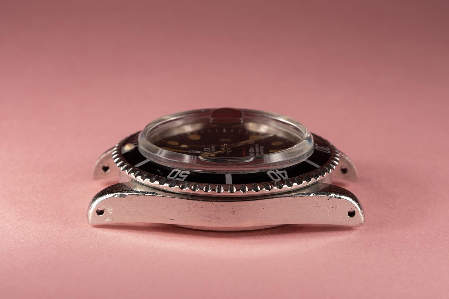 Dial: Excellent and very clean matte black dial with brown chocolaty markers and matching hands. There is a small chip repair on the bottom of the dial under Swiss T < 25.