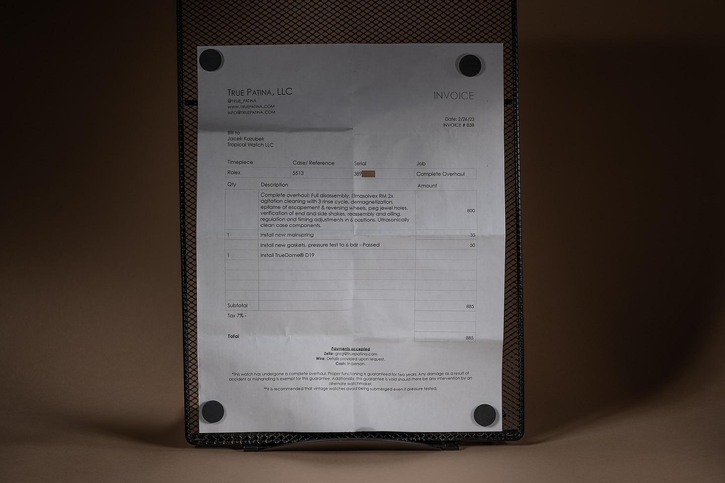 Accessories: Service Papers from True Patina.