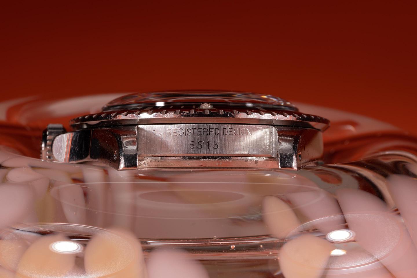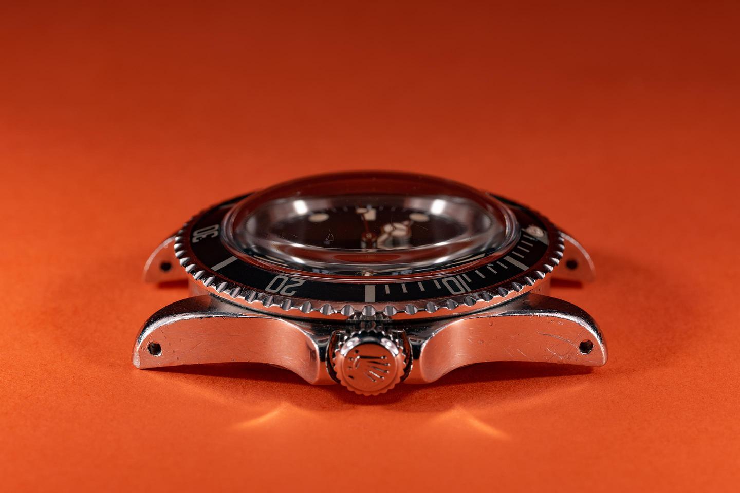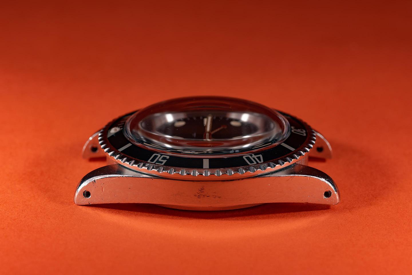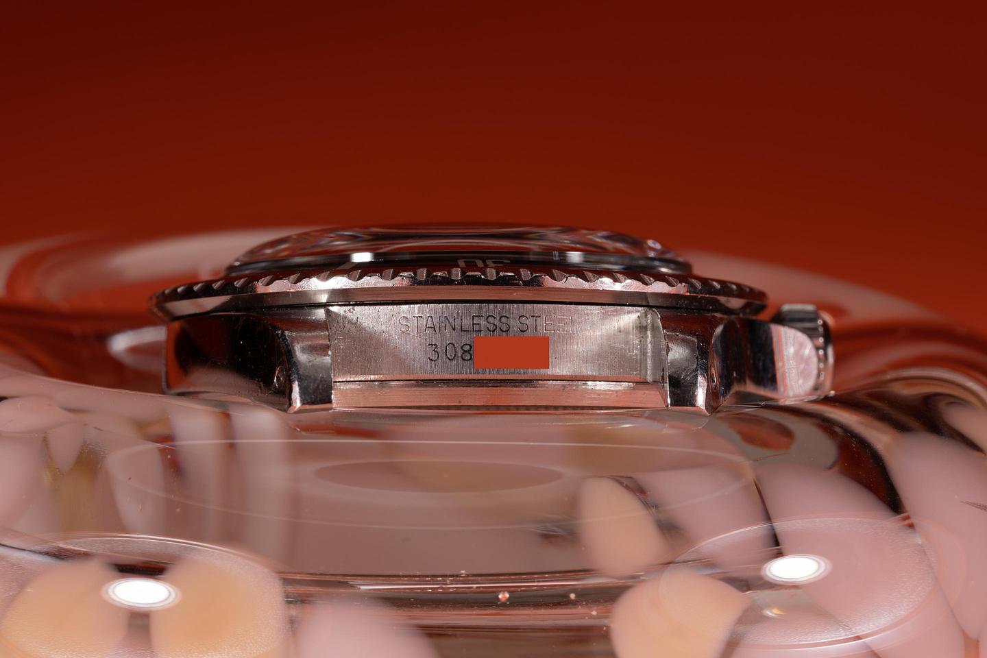 Case: Excellent showing original wide prominent bevels and average wear from use. There is a ding at the tip of the 5 o'clock lug. The bezel insert is also in excellent condition and has faded to a dark charcoal grey tone.