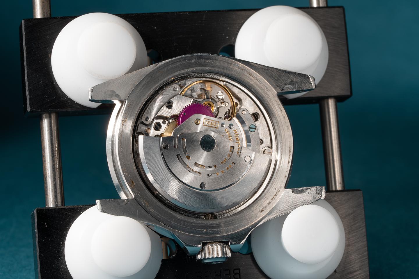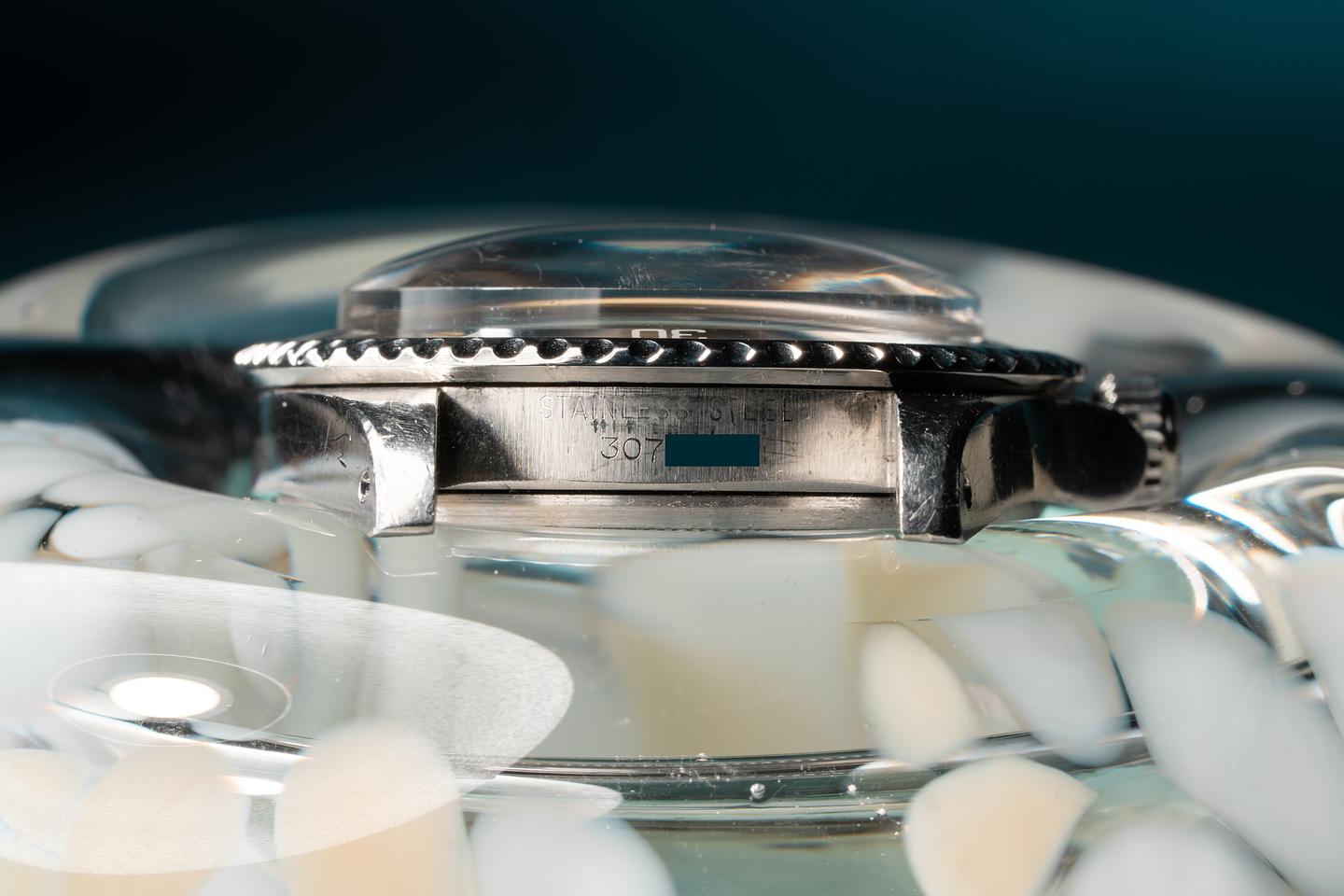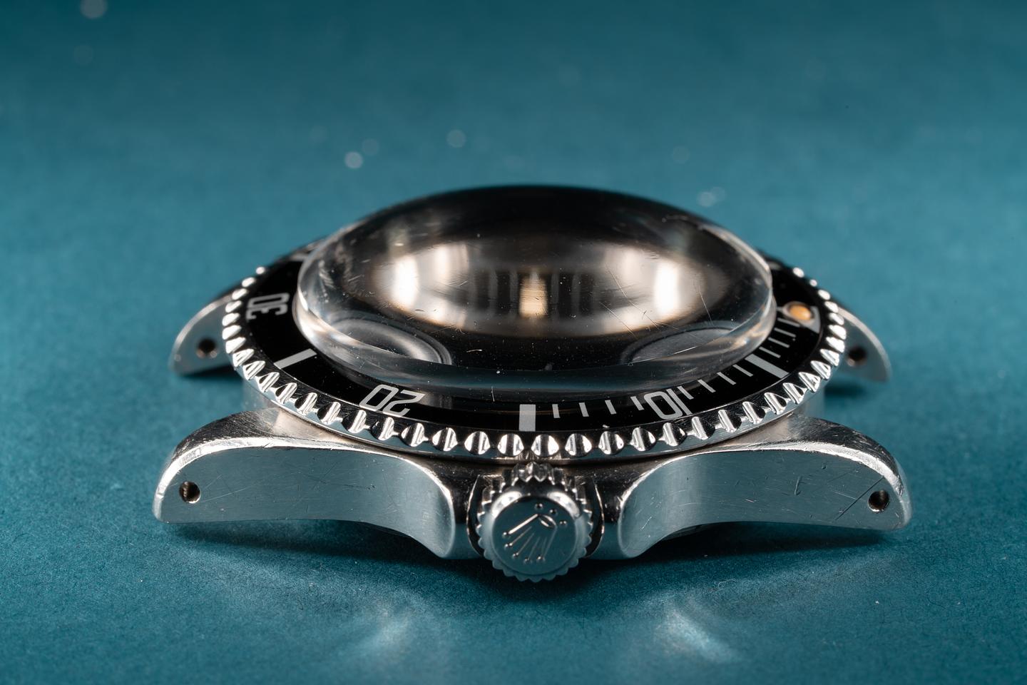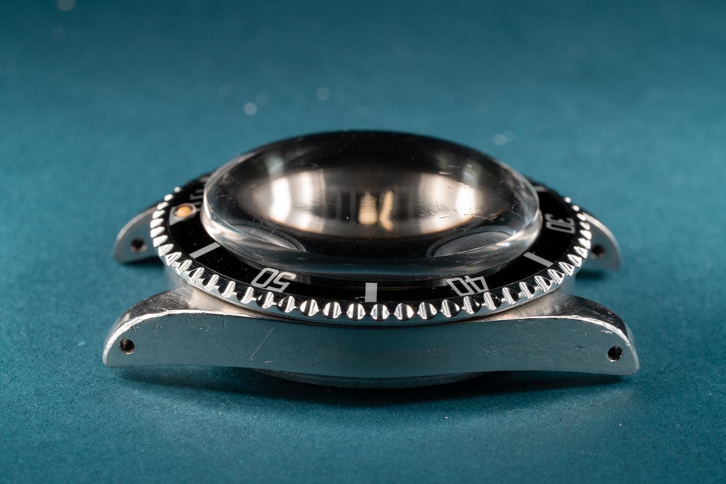 Case: The thick unpolished case with intact factory bevels is excellent showing some wear from use. The black bezel is also excellent and shows light wear from use.