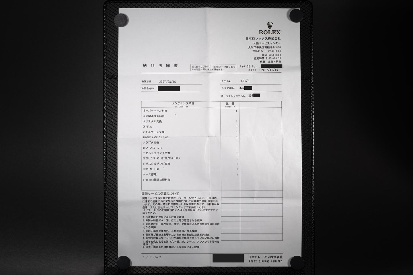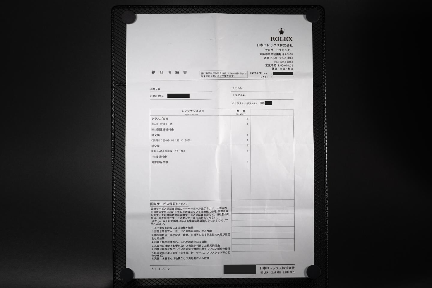 Accessories: Rolex Service Papers
