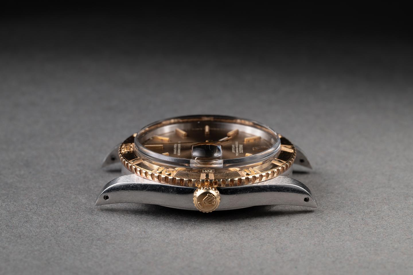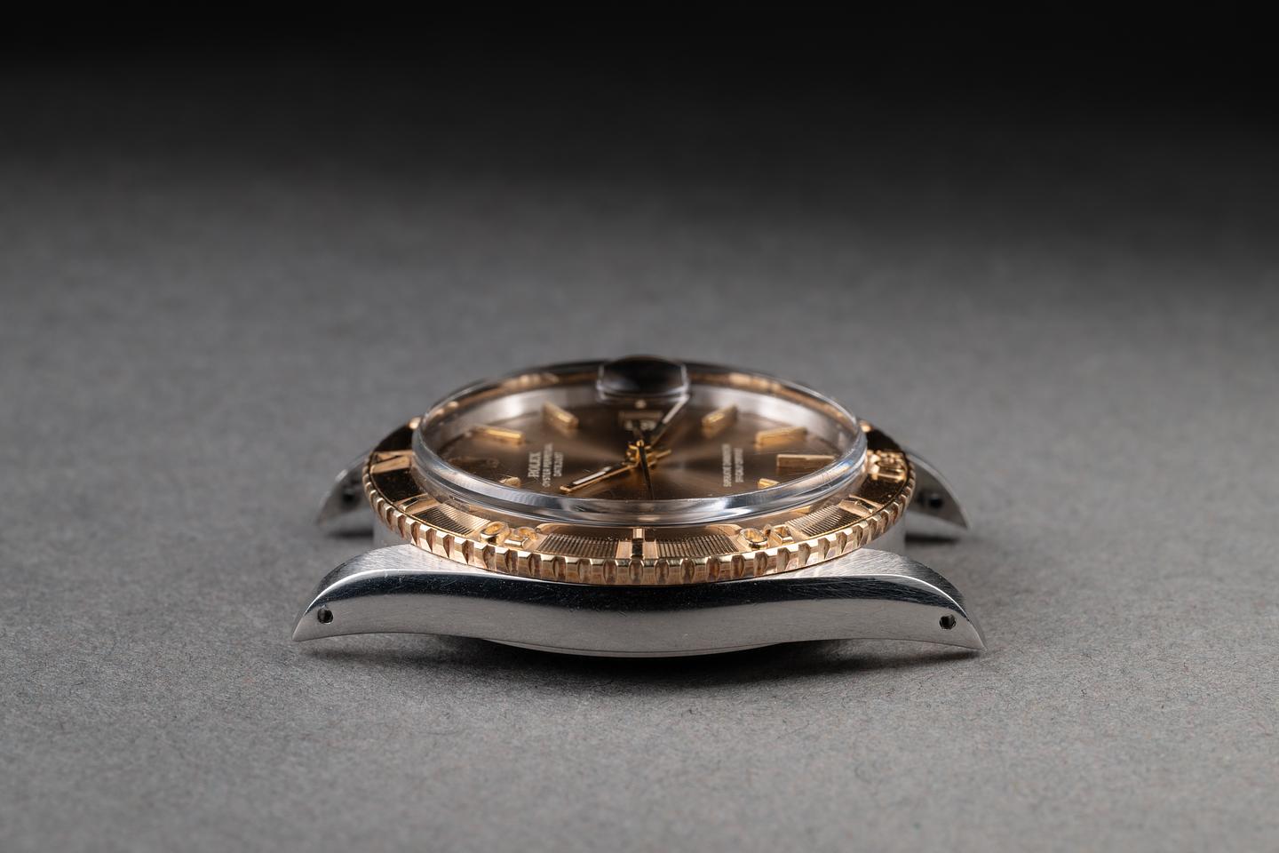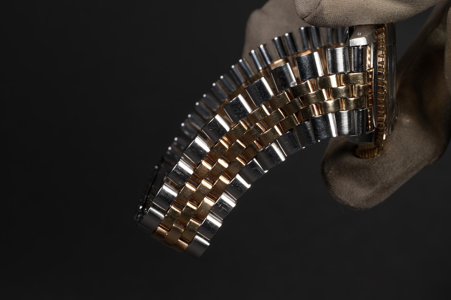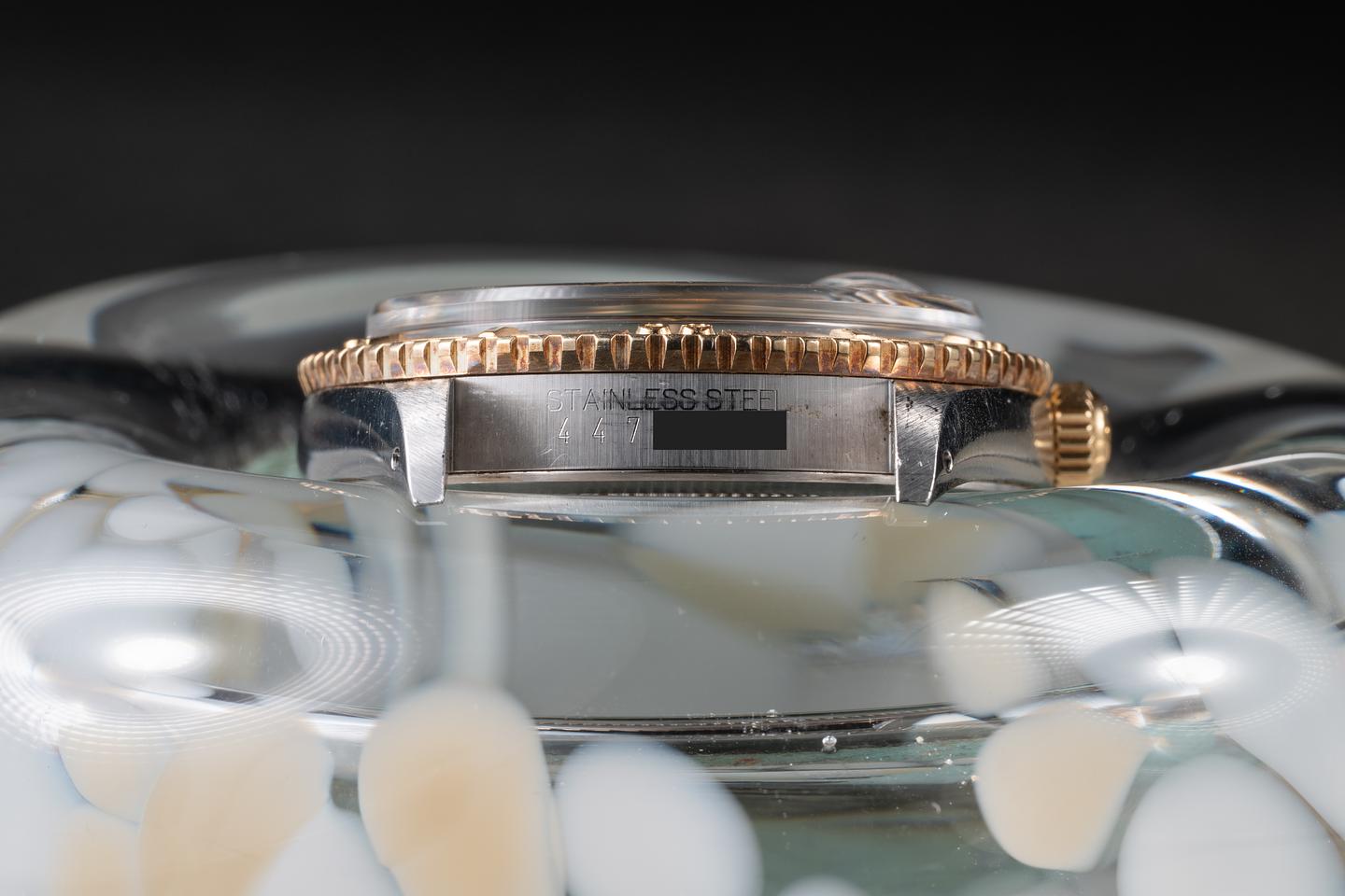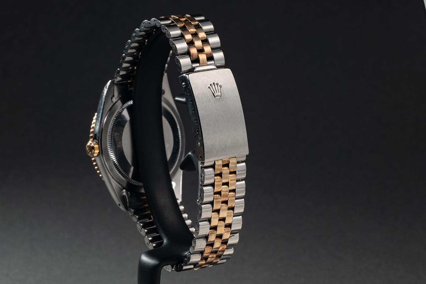 Bracelet: The 22-link two-tone Jubilee bracelet is excellent, showing a rosy patina on the end links and some light stretch for its age. The clasp is stamped with a matching 1976 date code.
