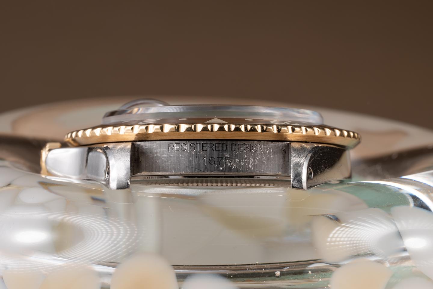 Case: The case is excellent, showing wide, prominent bevels and only light wear from use. The two-tone bezel is also in excellent condtion showing extensive fading to the yellow portion of the insert and only light wear from use.