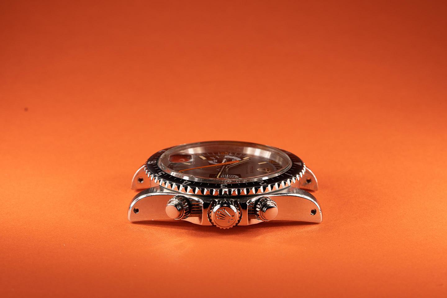 Case: The excellent case shows thick bevels and some wear from use. The bezel is also in excellent condition showing only light wear from use.