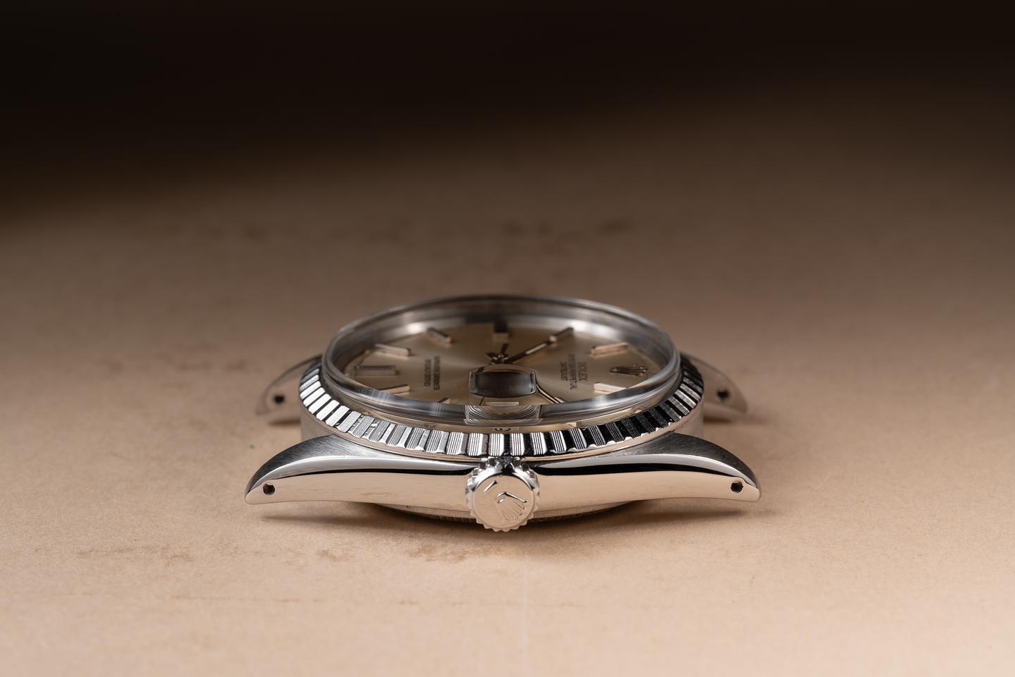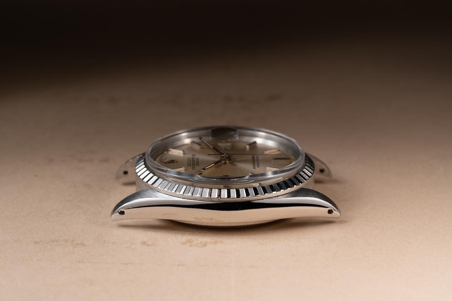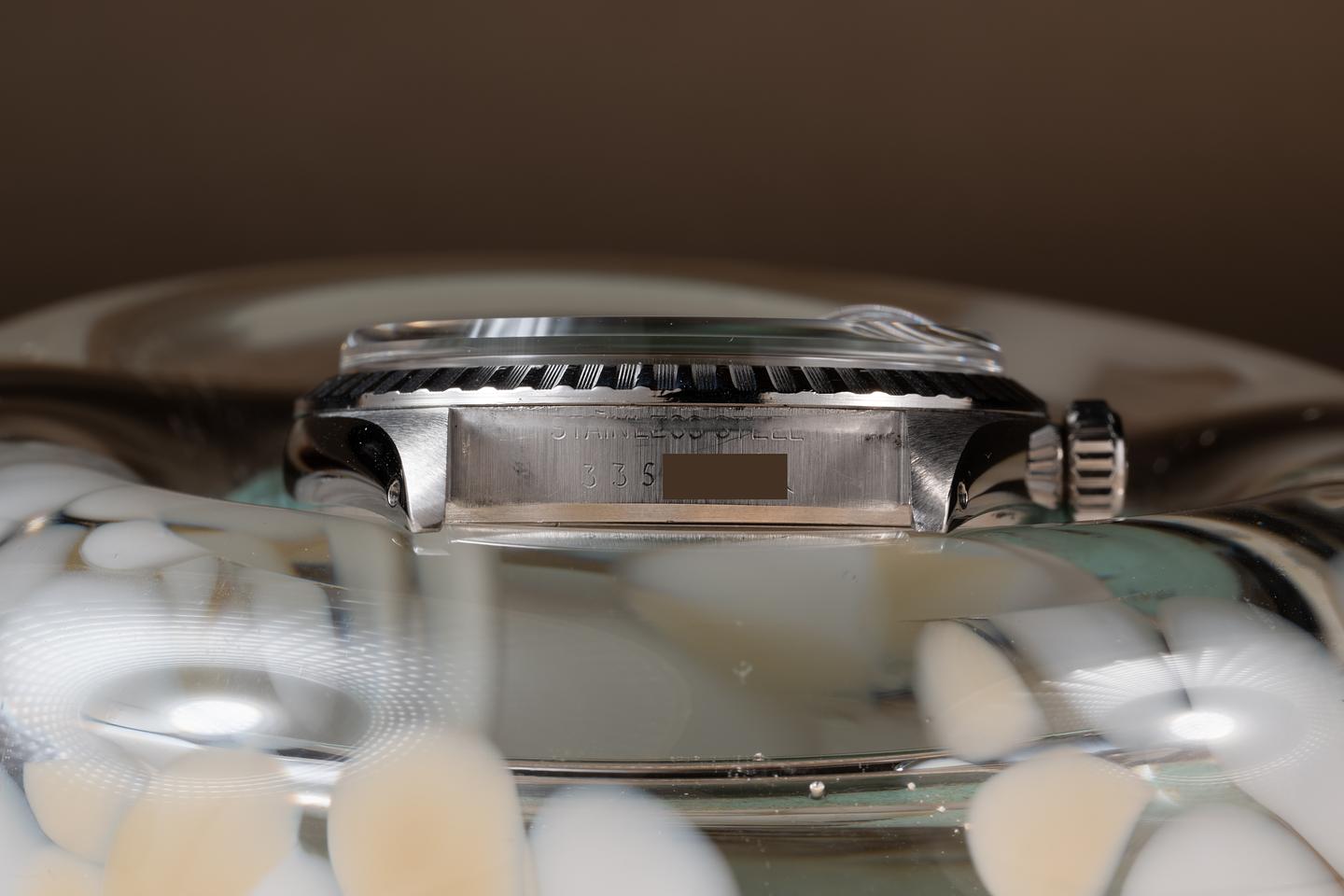 Case: The recently polished 36mm case is excellent showing only very light wear from use. The stainless engine turned bezel is also in excellent condition showing only very light wear.