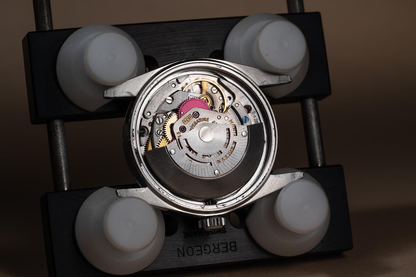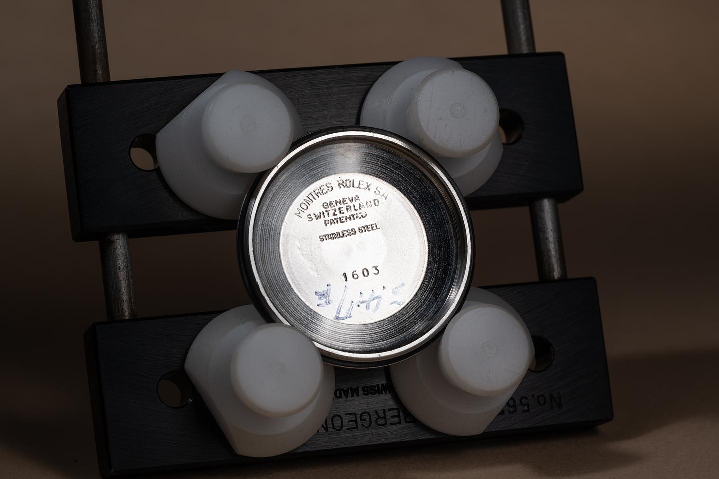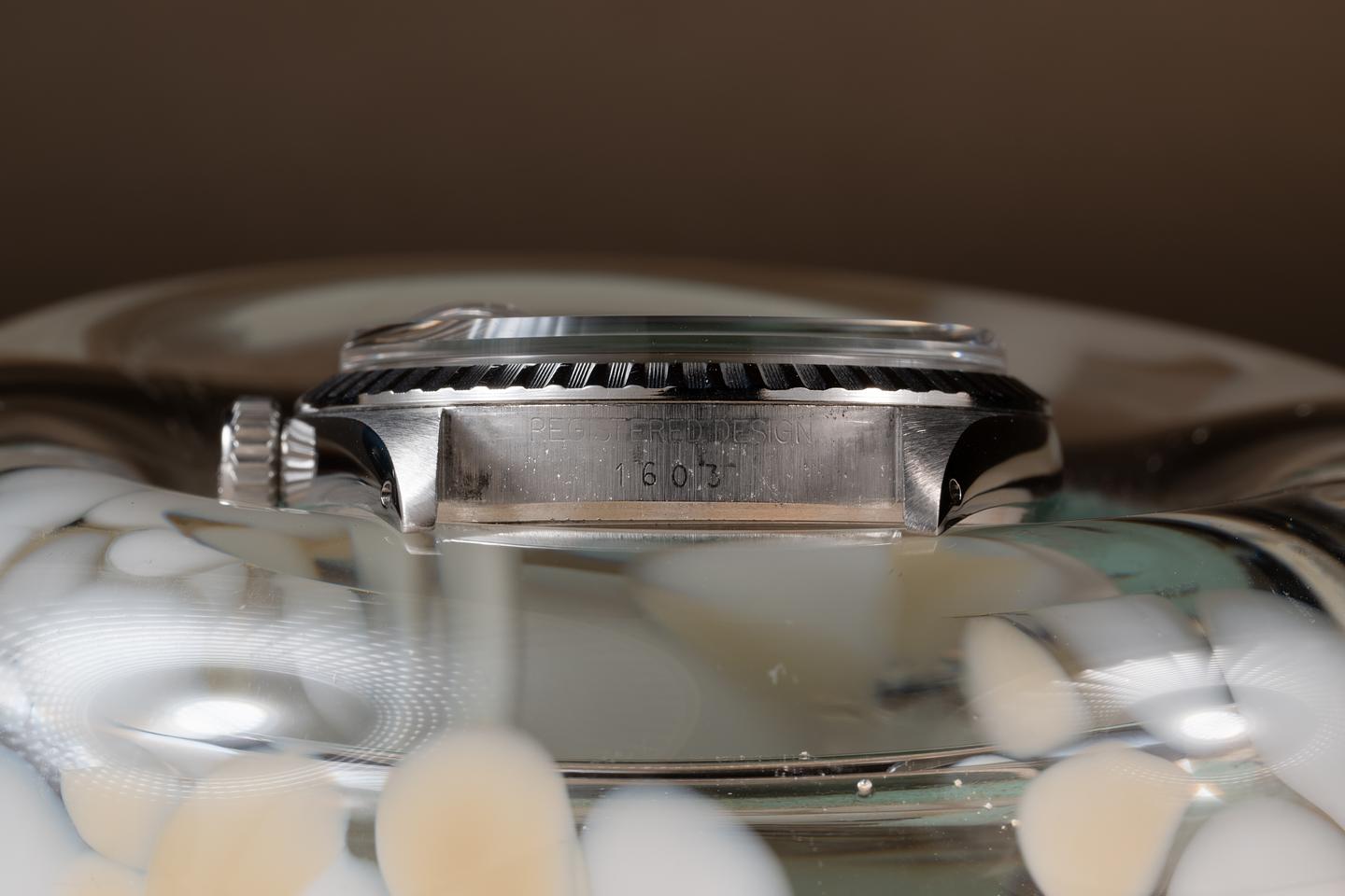Case: The recently polished 36mm case is excellent showing only very light wear from use. The stainless engine turned bezel is also in excellent condition showing only very light wear.