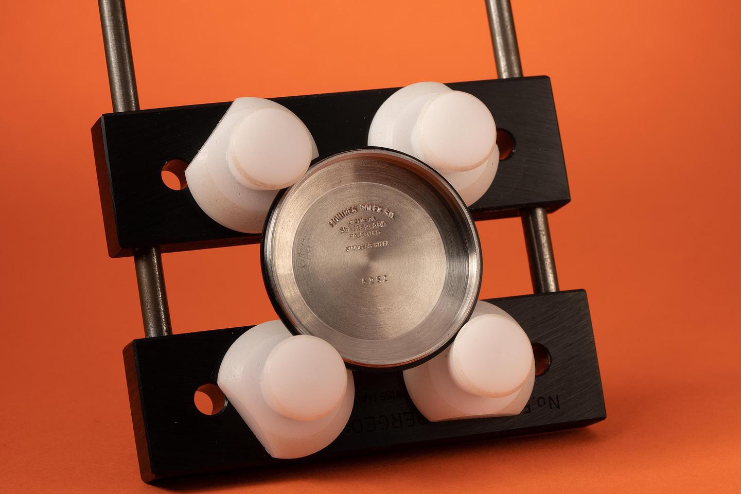Bracelet: The 12 link USA rivet bracelet is excellent showing. only light stretch for its age. The clasp is stamped with a 1973 date code.