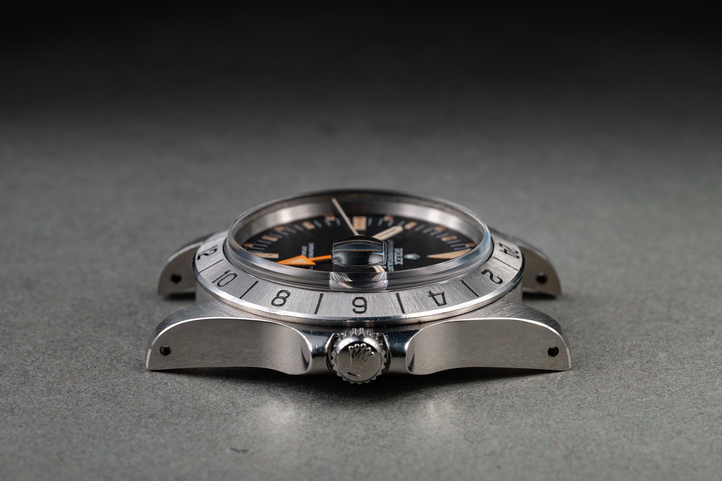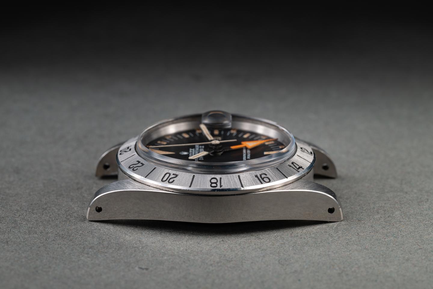Case: The recently polished case is excellent, showing sharp, prominent bevels and only very light wear. The stainless bezel is also in excellent condition, showing only very light wear.