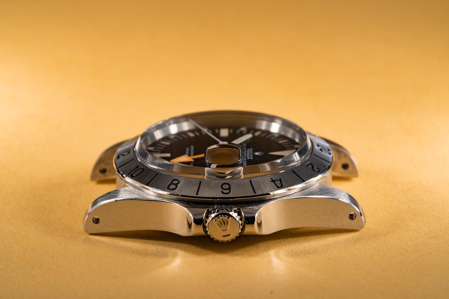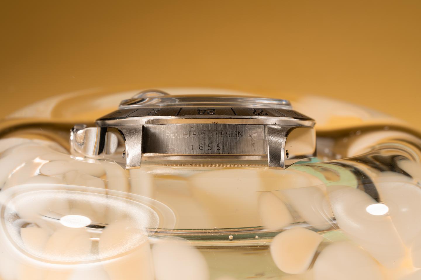Notes: This funky avant-garde 1655 with a nearly flawless dial, razor-sharp case, and locking clasp bracelet is most certainly still up to the task of accompanying you on your next adventure.