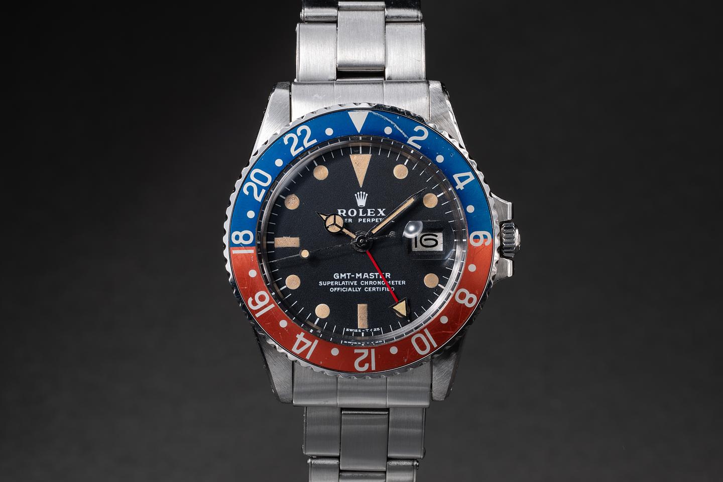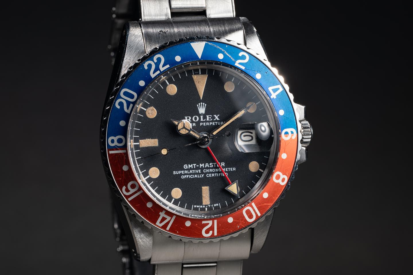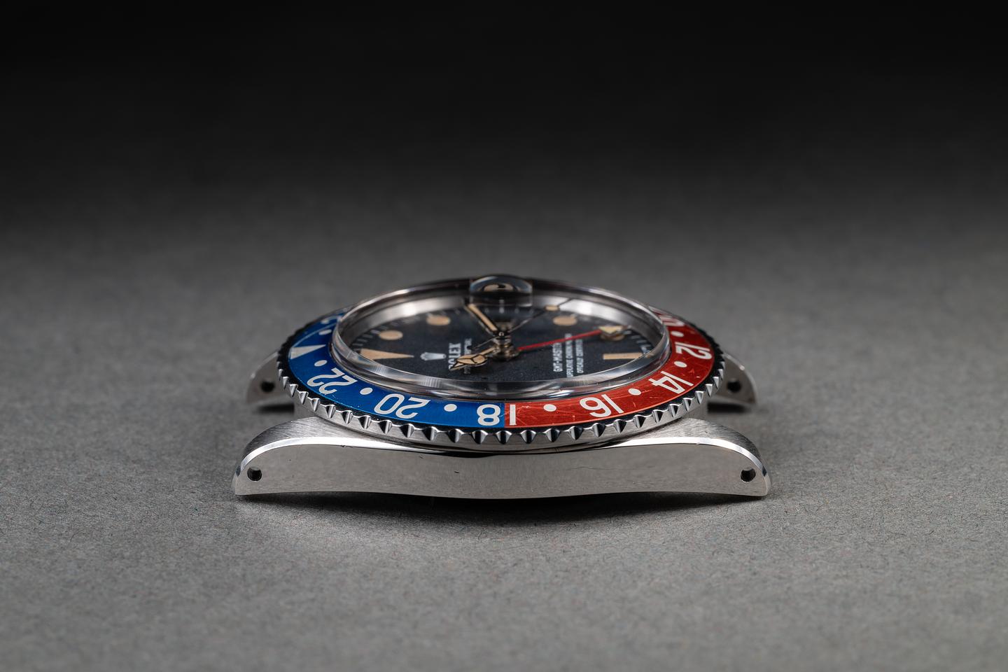 Dial: The matte black dial is excellent showing somelight wear for its age. The lume has aged to a warm sandy hue. The hour and minute hands match the dial perfectly and the GMT hand has aged just slightly lighter than the rest of the lume.