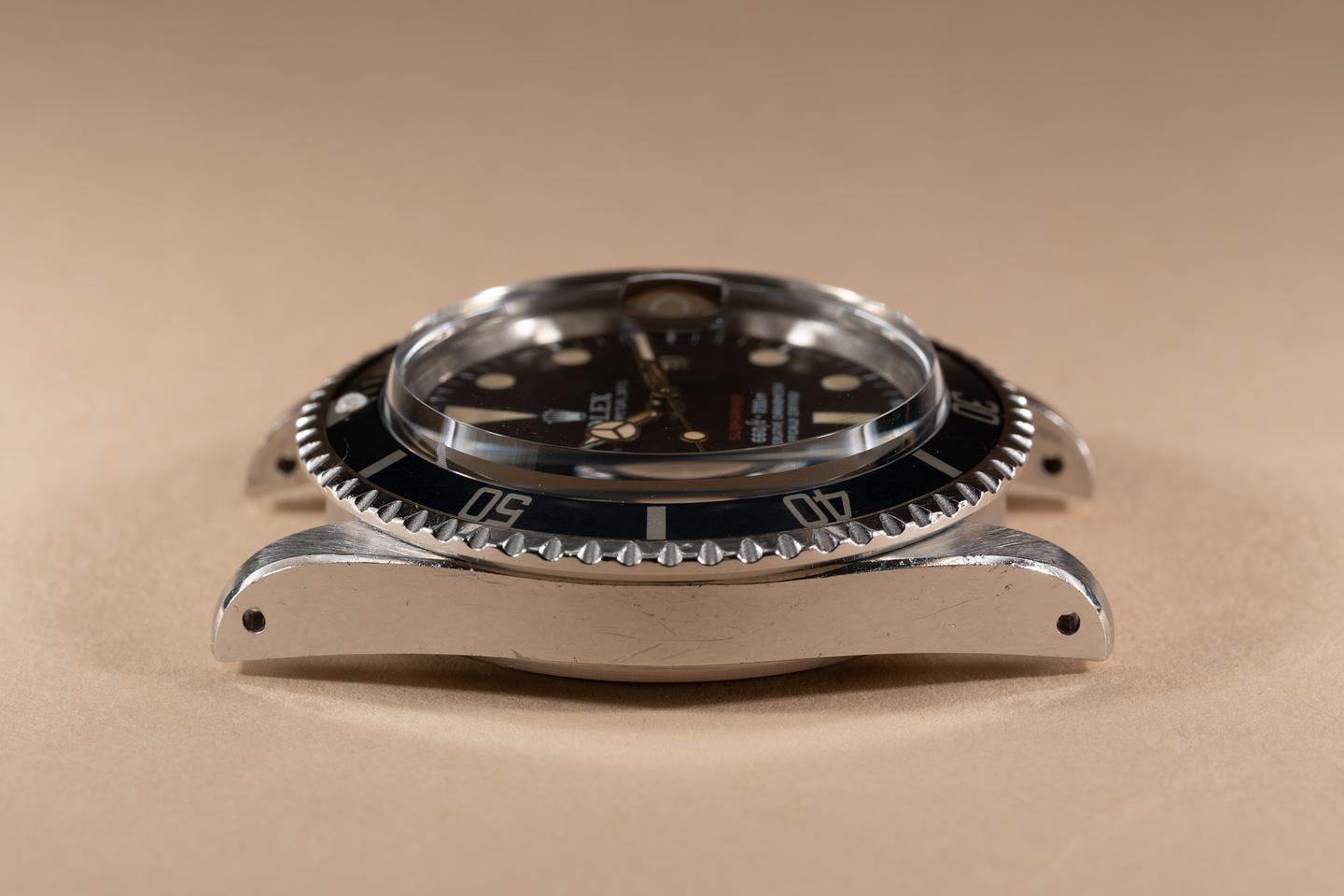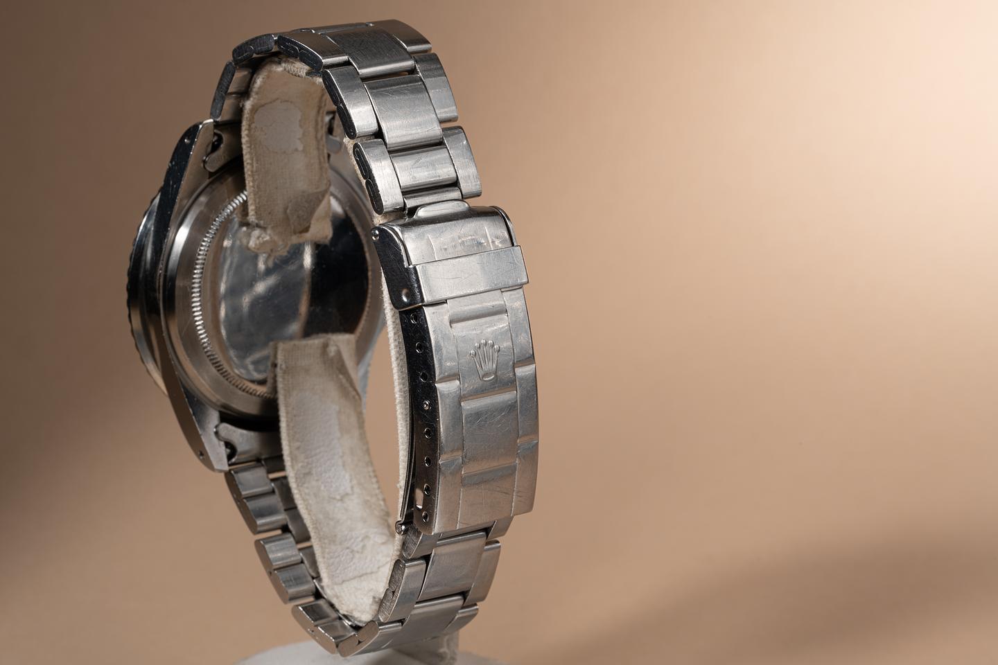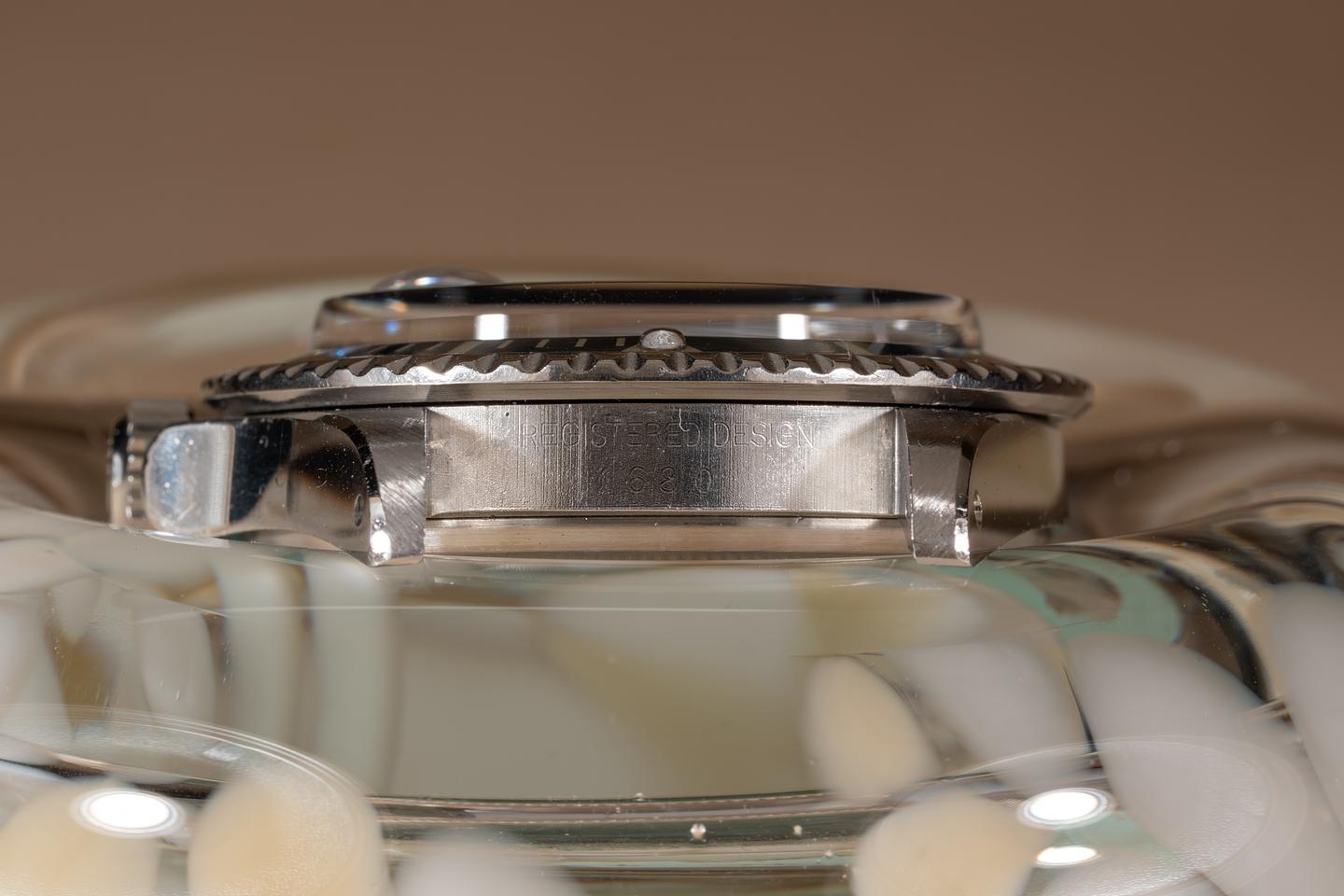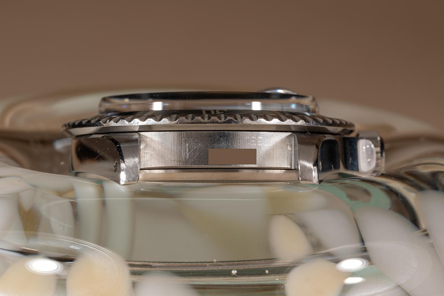 Case: The unpolished case is excellent showing wide, sharp, and prominent factory bevels. The bezel insert is also in excellent condition and has faded to a satin blue/teal hue and shows only very light wear from use.