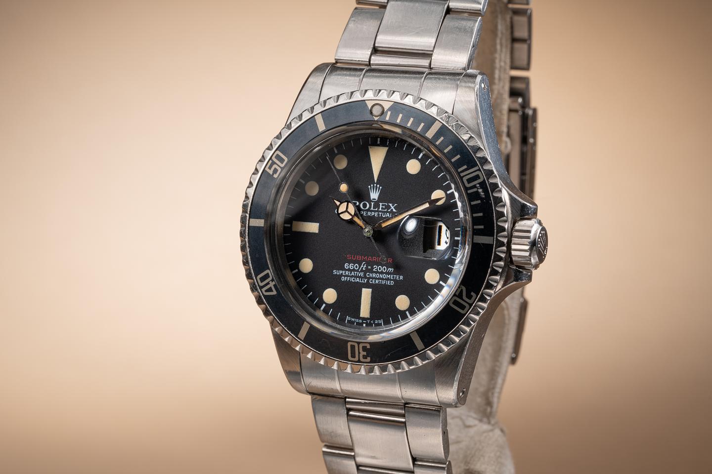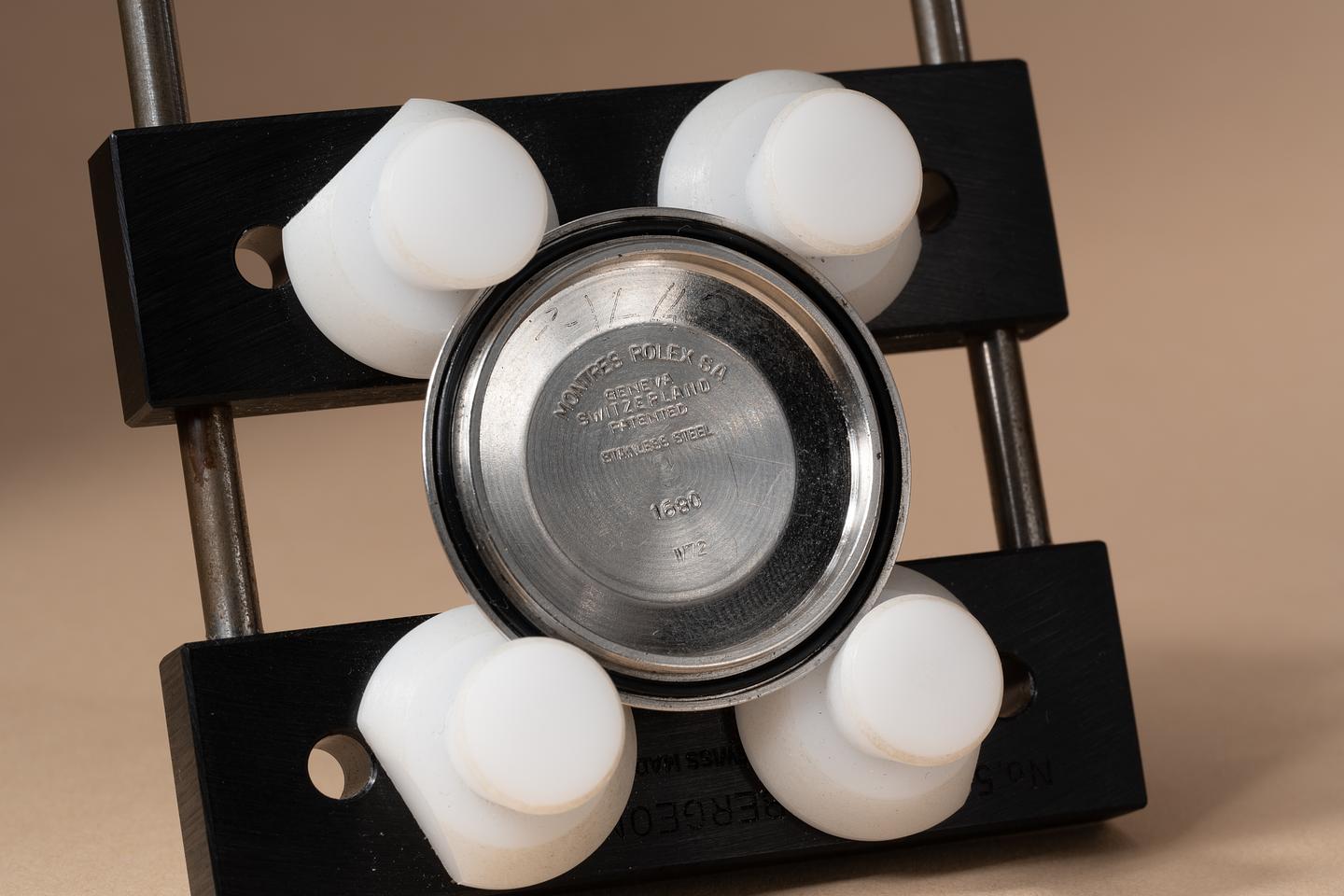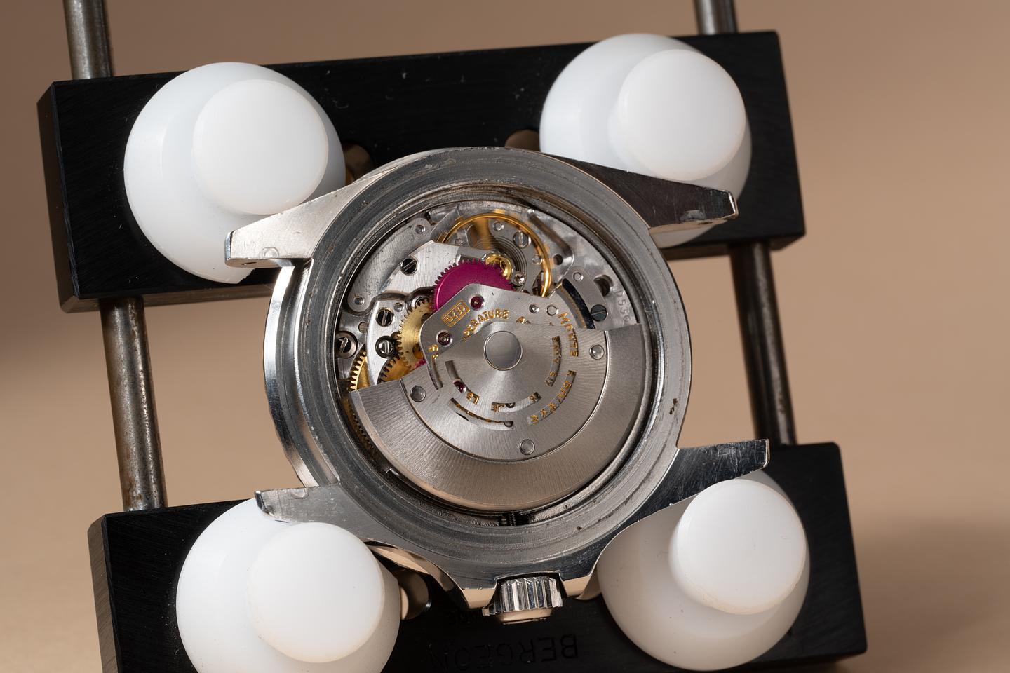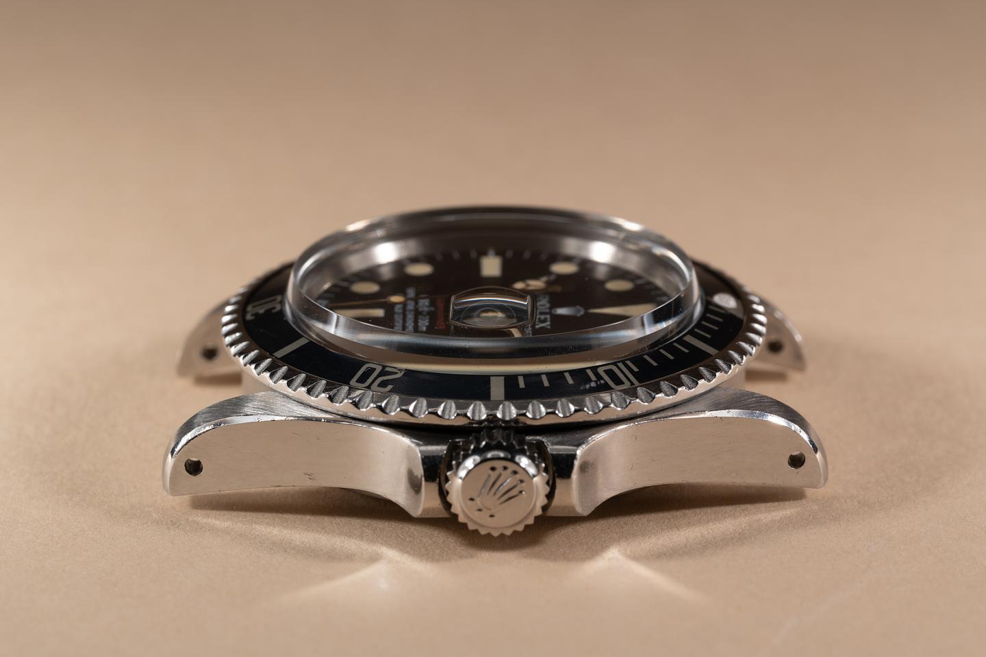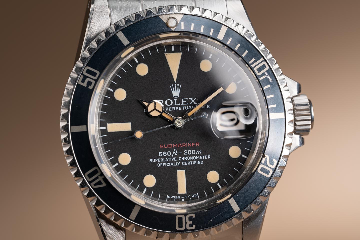Case: The unpolished case is excellent showing wide, sharp, and prominent factory bevels. The bezel insert is also in excellent condition and has faded to a satin blue/teal hue and shows only very light wear from use.